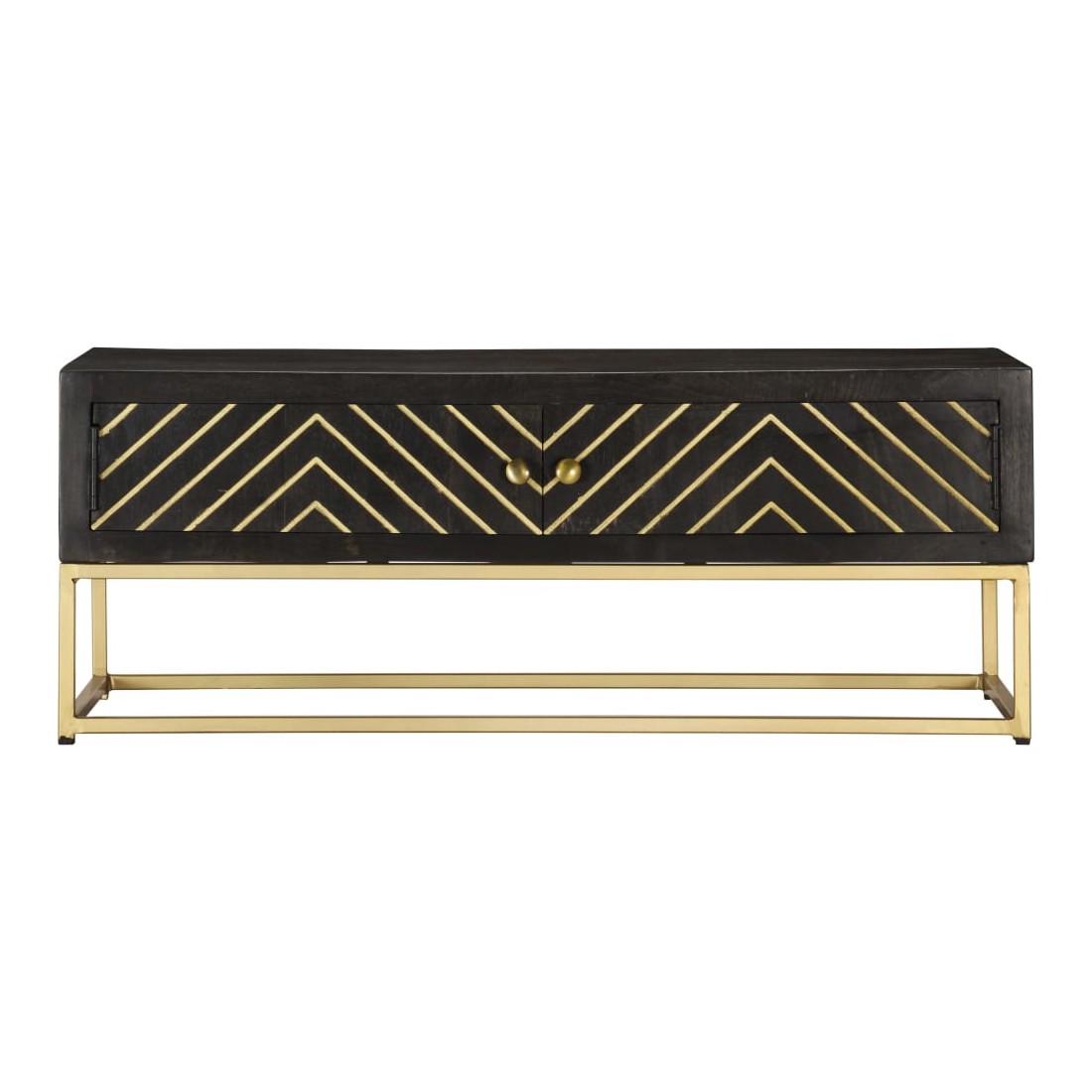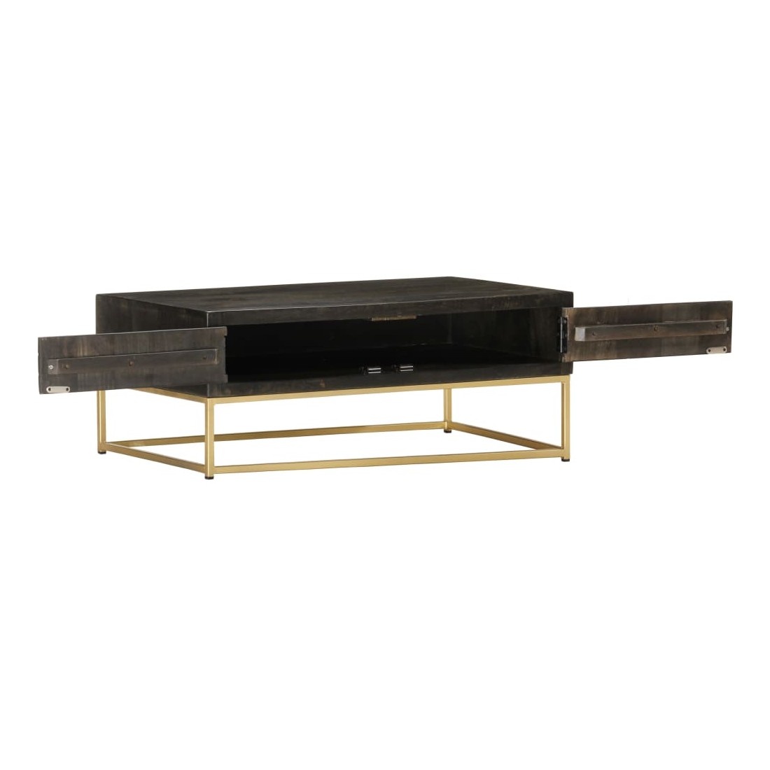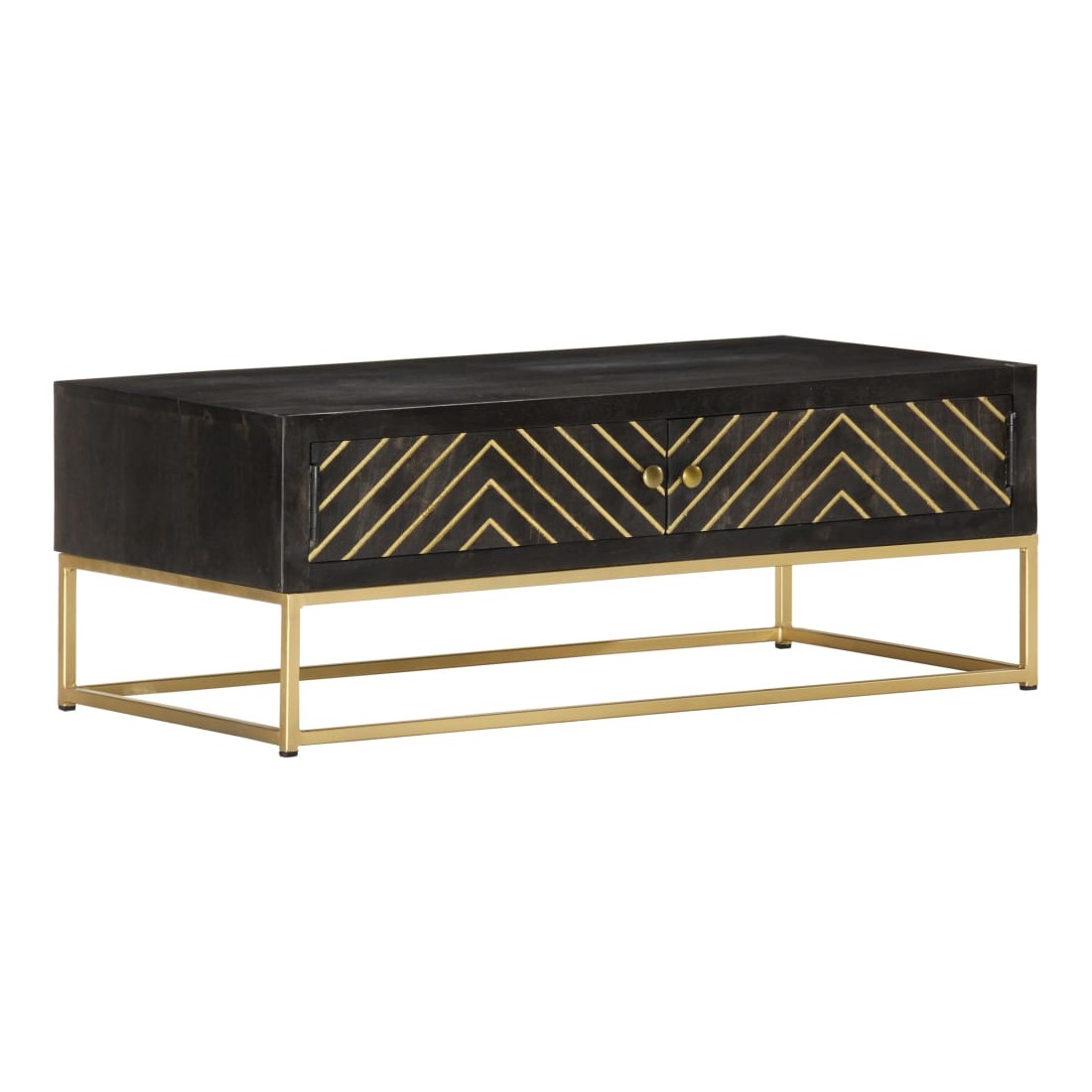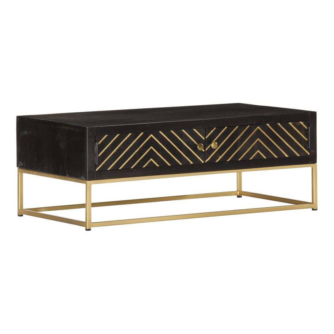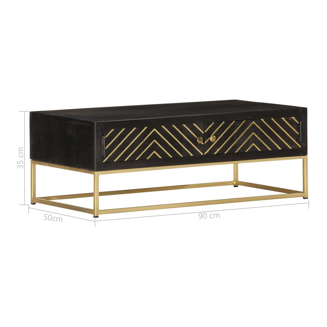 Table basse Noir et doré 90x50x35 cm Bois solide de manguier