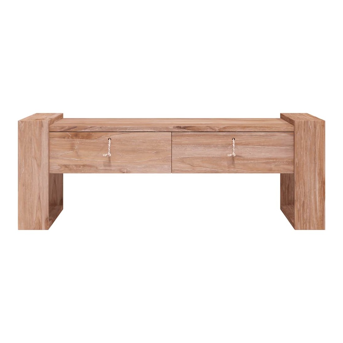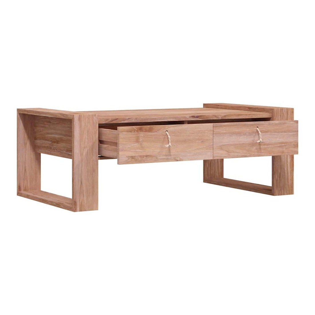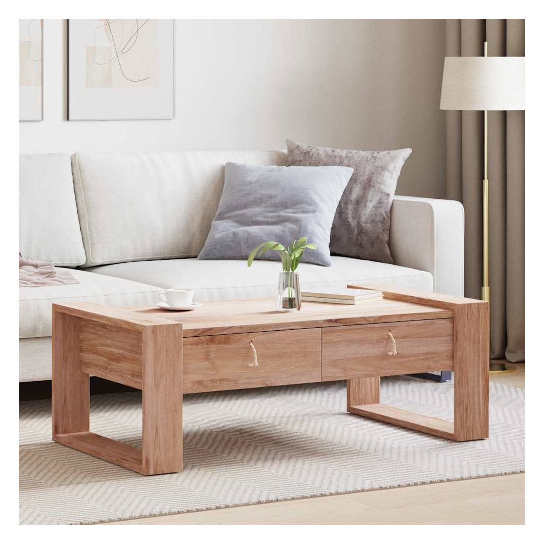 Cette table basse de style colonial fabriquée en bois de teck massif ajoutera une touche de charme rustique à votre intérieur. Elle peut également être utilisée comme une table d'appoint ou table d'extrémité. La table de canapé dispose d'un dessus de table en bois dur robuste, sur lequel vous pouvez placer des objets décoratifs comme des paniers de fruits ou des vases. Les 2 tiroirs offrent amplement d'espace pour garder toutes sortes de petits objets bien organisés et à portée de main. Cet article est facile à assembler.