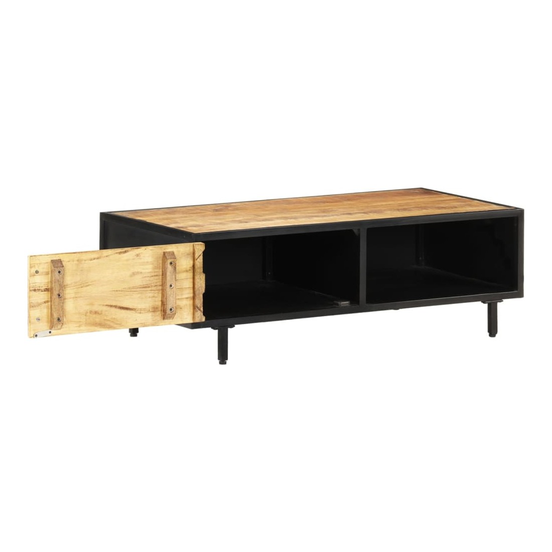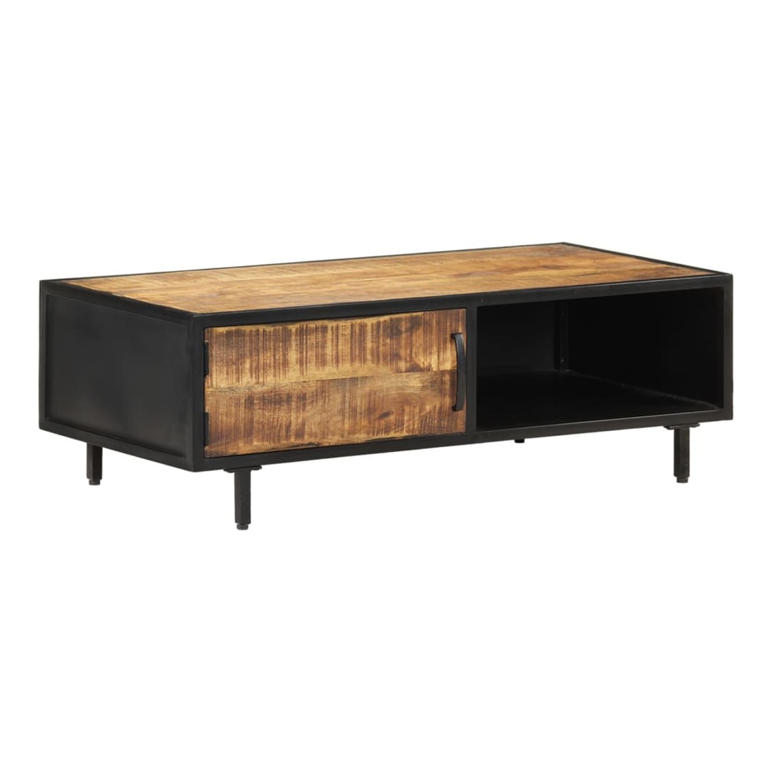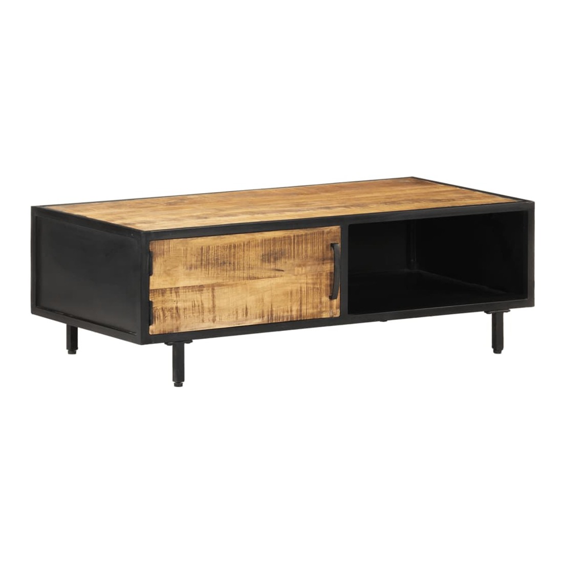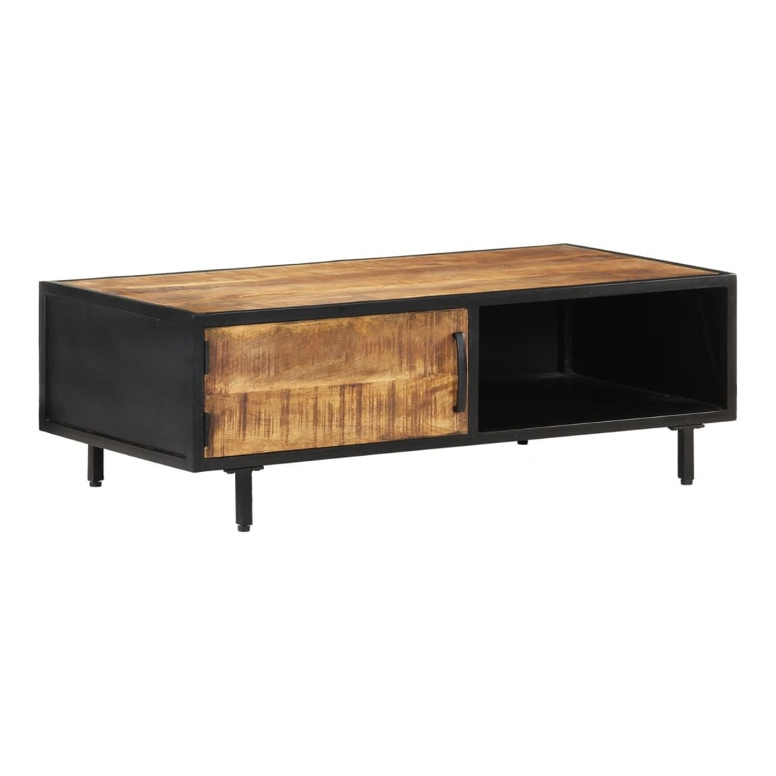 La table basse en bois ajoute un style industriel à votre espace de salon ! Le bout de canapé est fait de bois de manguier brut, un bois dur tropical avec la force de soutenir le poids. Il résiste également à l’usure du temps, ce qui le rend stable et durable. Le cadre en acier enduit de poudre ajoute également une stabilité supplémentaire. Cette armoire comprend 1 porte et 1 étagère offrant un vaste espace de rangement. De plus, le dessus en bois robuste est idéal pour exposer des objets décoratifs tels que des cadres photo, des plantes en pot, des vases, etc. Remarque importante : les couleurs et les grains peuvent varier d'une pièce à l'autre, rendant chaque pièce unique. La livraison est aléatoire, ce qui garantit l'exclusivité et l'individualité de votre produit.