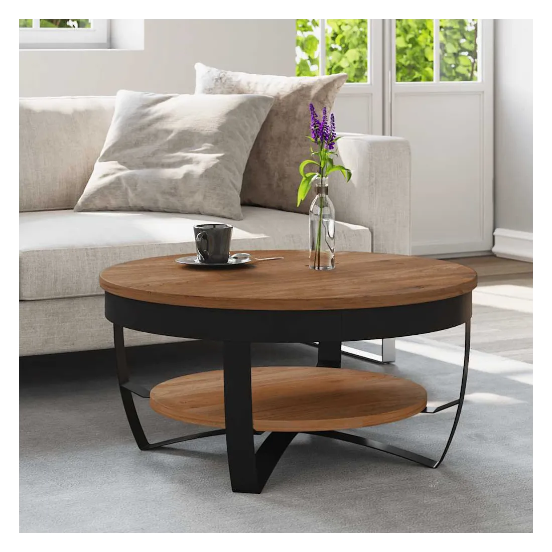 Cette table basse en bois de style industriel dégage un charme vintage et fera une addition intemporelle à votre maison. La table basse peut également être utilisée comme table d'appoint ou table de chevet. La table basse rétro est faite à la main en bois d'acacia massif qui est stable, durable et beau. Chaque étape du processus est réalisée avec le plus grand soin, que ce soit le polissage, la peinture ou le laquage. Le savoir-faire et les magnifiques veines du bois rendent chaque meuble unique et légèrement différent l'un de l'autre. La table basse dispose d'une étagère pour plus d'espace, tandis que sa base en acier fort enduit de poudre contribue à sa robustesse. Remarque importante : les couleurs varient d'un meuble à l'autre, rendant chacune de nos tables basses unique. La livrai