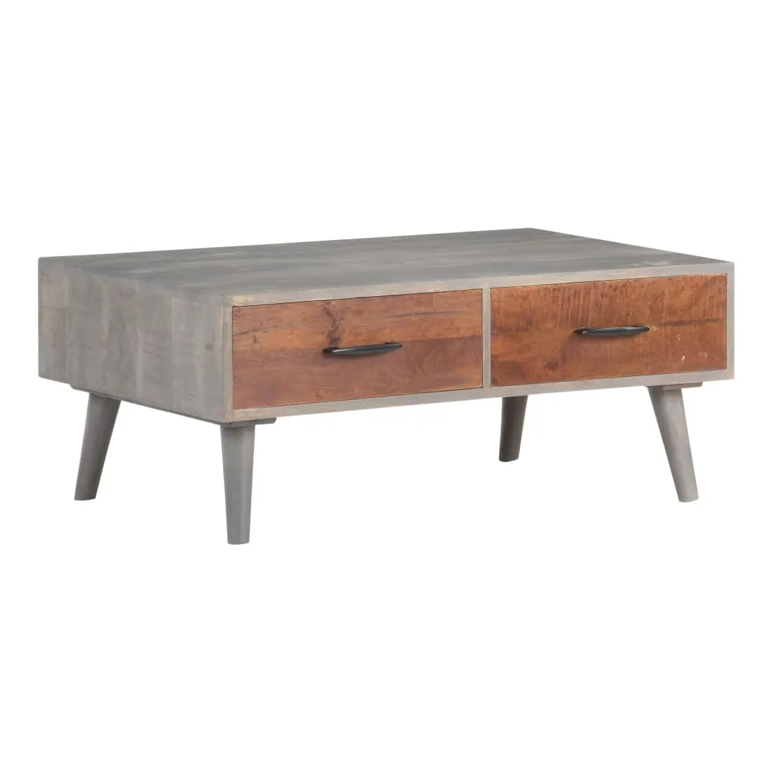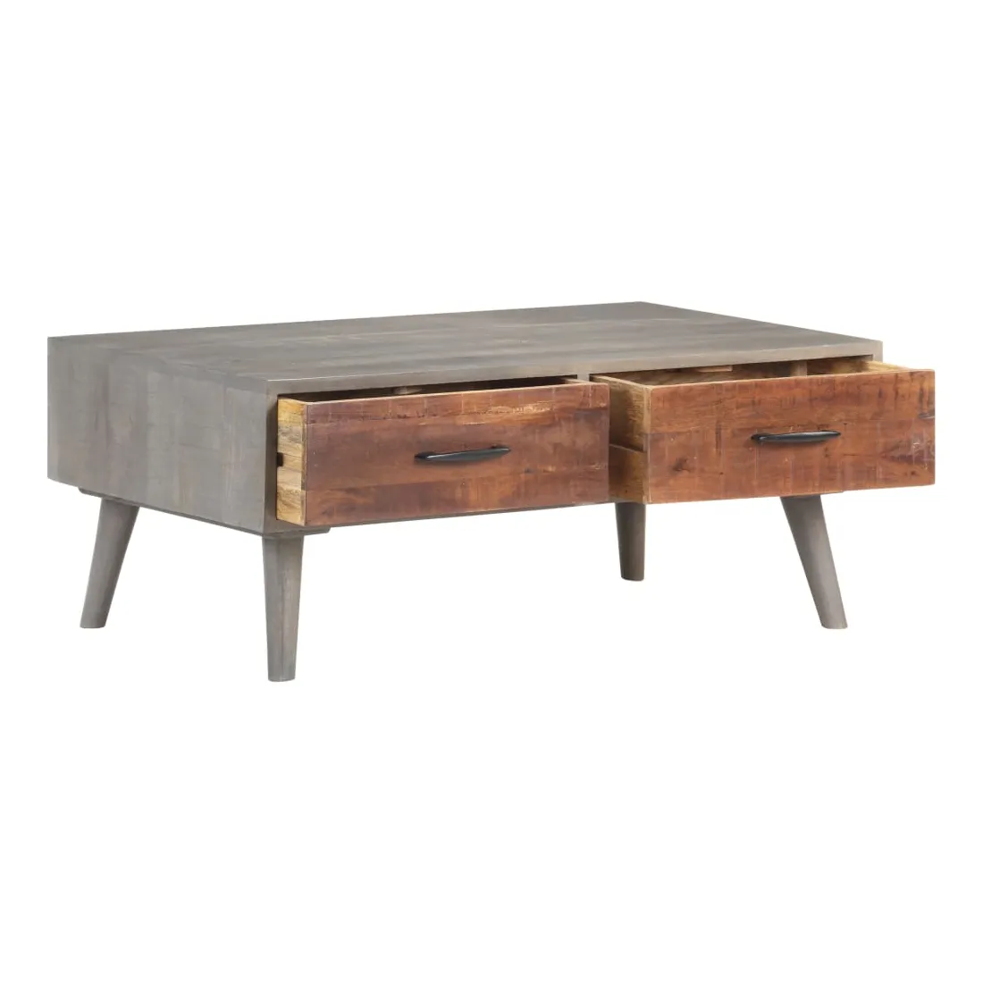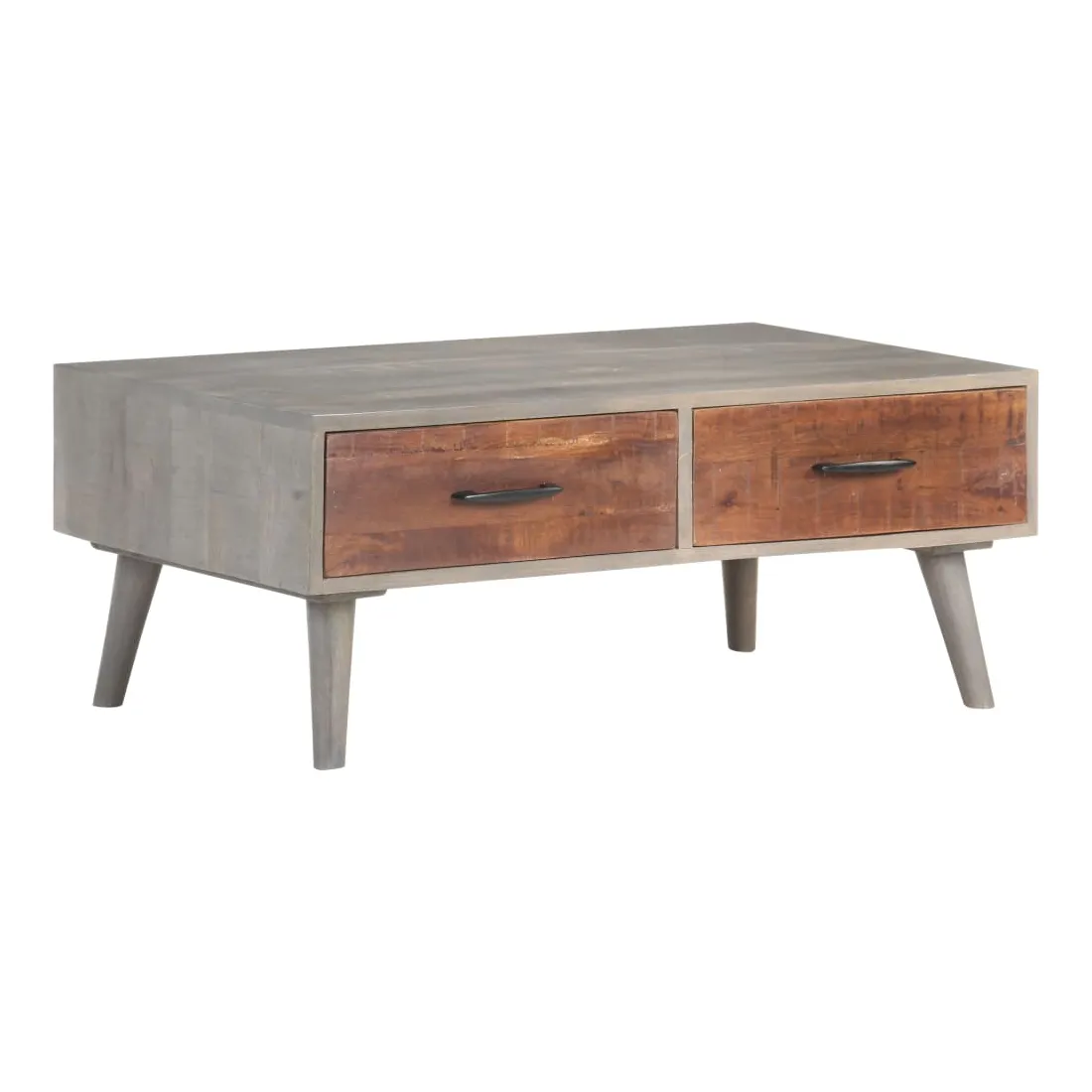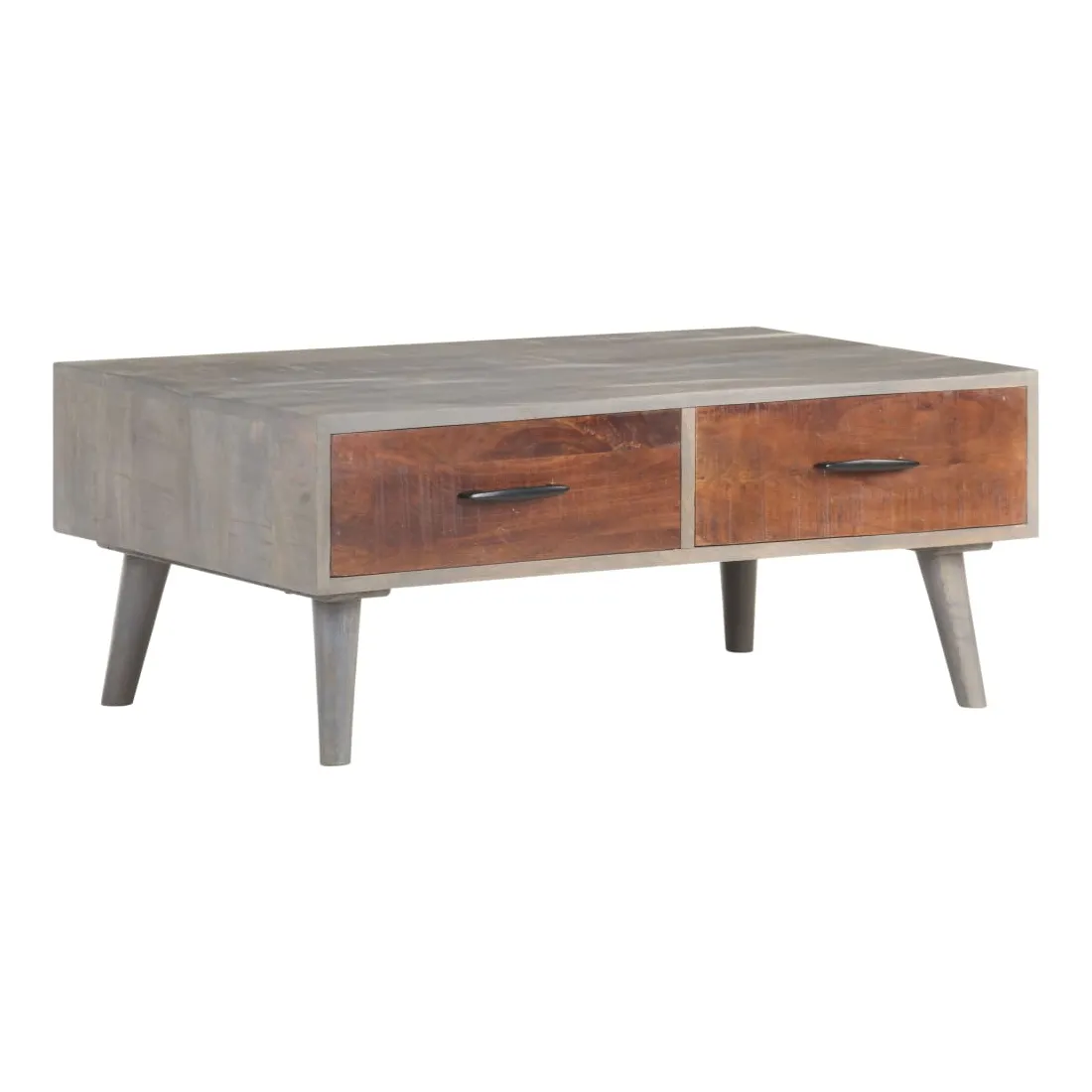 Cette table basse en bois de manguier brut massif au design pratique, est parfaite pour apporter une présence classique à votre espace de vie. Ce bout de canapé est en bois de manguier massif, un bois dur tropical. Il a la force de soutenir le poids et résiste également à l'usure du temps. De plus, le savoir-faire exquis et les beaux grains de bois rendent chaque pièce légèrement différente l'une de l'autre. Son dessus de table large et robuste est idéal pour placer des boissons, des vases, des bols à fruits ou des ornements. De plus, les 2 tiroirs offrent suffisamment d'espace pour ranger vos magazines, livres et autres petits articles essentiels et les maintenir bien organisés et à portée de main. Remarque importante : les couleurs varient d'une pièce à l'autre, rendant chaque pièce unique. La livraison est aléatoire, garantissant l'exclusivité et l'individualité de votre produit.