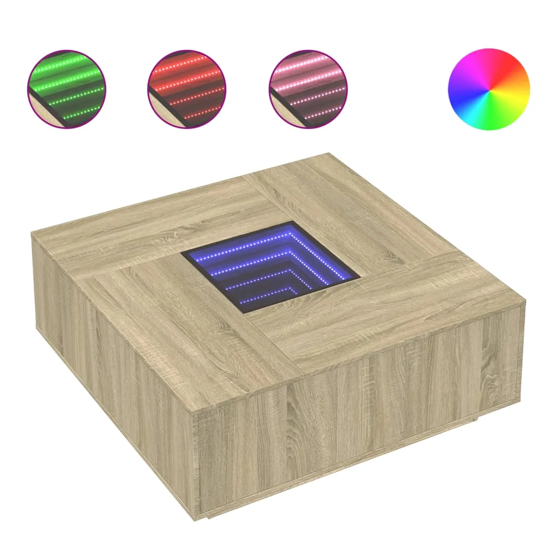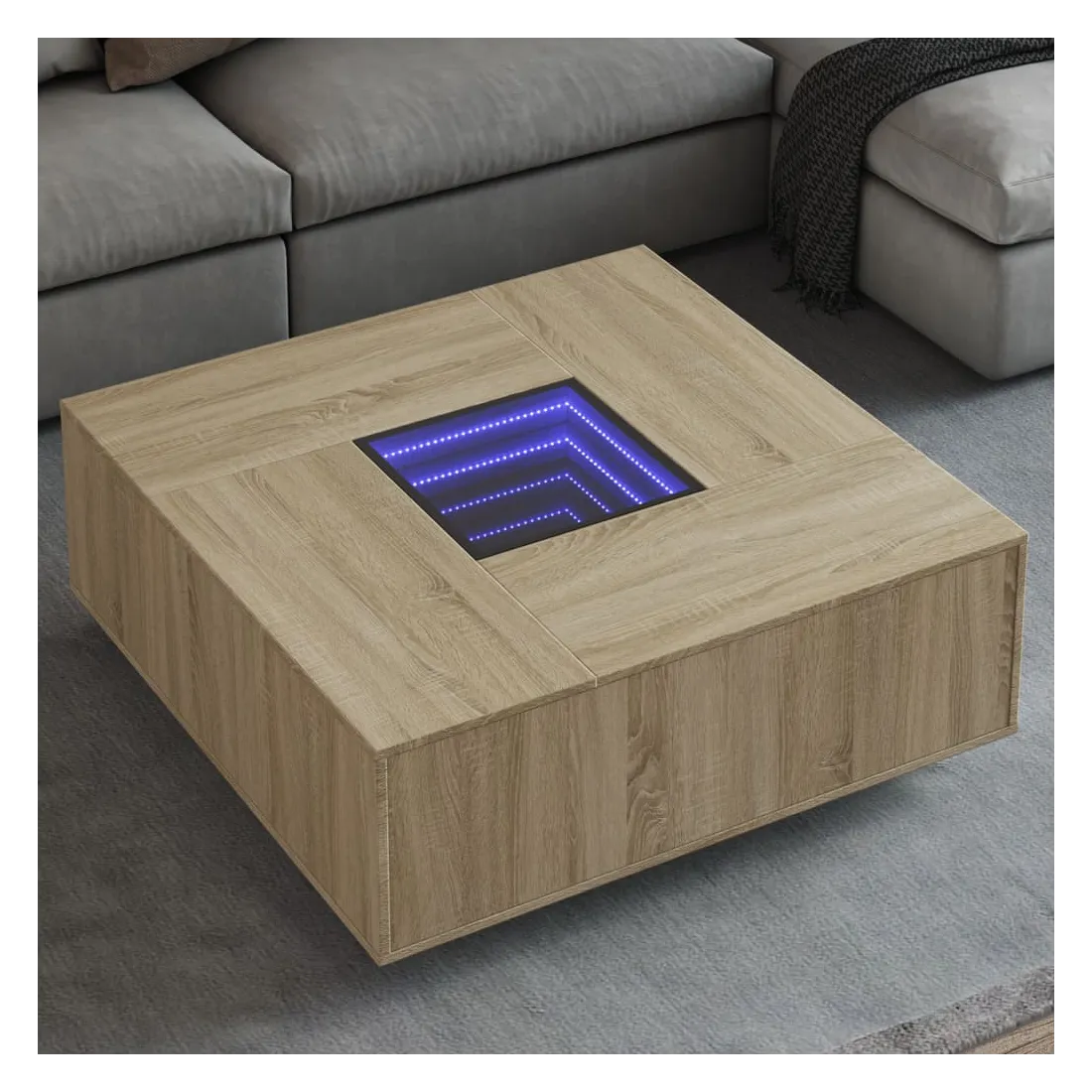 Cette table basse unique dotée d'un miroir à LED infini est adaptée à différents endroits. Matériau stable et durable : le bois d'ingénierie est un matériau durable et stable dont la surface lisse résiste à l'humidité, à la déformation et au fendillement, ce qui en fait un choix fiable pour une grande variété de projets.Lampes LED RVB pour une ambiance agréable : cette table est dotée de lampes LED qui peuvent être facilement réglées pour créer un spectacle lumineux personnalisé. Vous pouvez personnaliser les modes, les couleurs et la luminosité pour améliorer l'ambiance de votre espace intérieur.Dessus de table stable et robuste : le dessus de table robuste est idéal pour placer vos boissons ou tout autre objet nécessaire à portée de main.Multifonctionnelle : cette table basse a de multiples fonctions. Elle peut servir de table d'appoint, de table d'extrémité ou de table de chevet dans votre salon ou votre chambre à coucher, répondant ainsi à vos besoins spécifiques. Bon à savoir :Ce produit est doté d'un connecteur USB qui nécessite une source d'alimentation USB de 5V certifiée (non incluse).