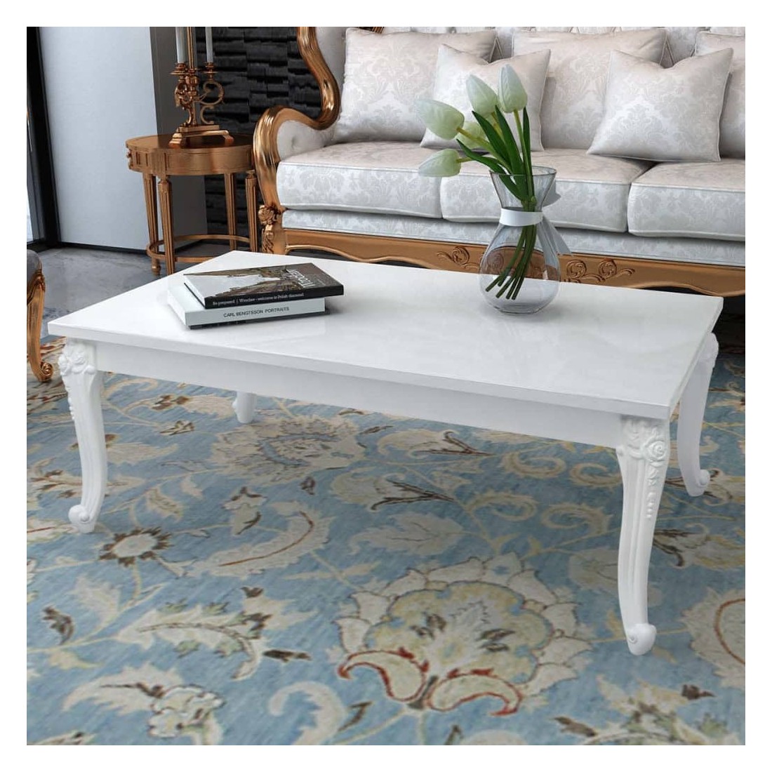 Cette table basse laquée sera un excellent ajout décoratif à l'intérieur de votre salon avec son design classique. Elle peut également être utilisée comme table d'extrémité ou table d'appoint. La table a été fabriquée en MDF (Medium Density Fibreboard). Elle présente quatre pieds en plastique, stables et durables, embellis avec un motif ornementé classique ressemblant à de la sculpture sur bois. La table basse laquée est également facile à nettoyer et à entretenir - un chiffon doux et humide suffit ! L'assemblage est facile.