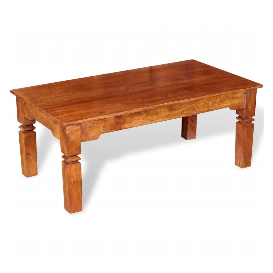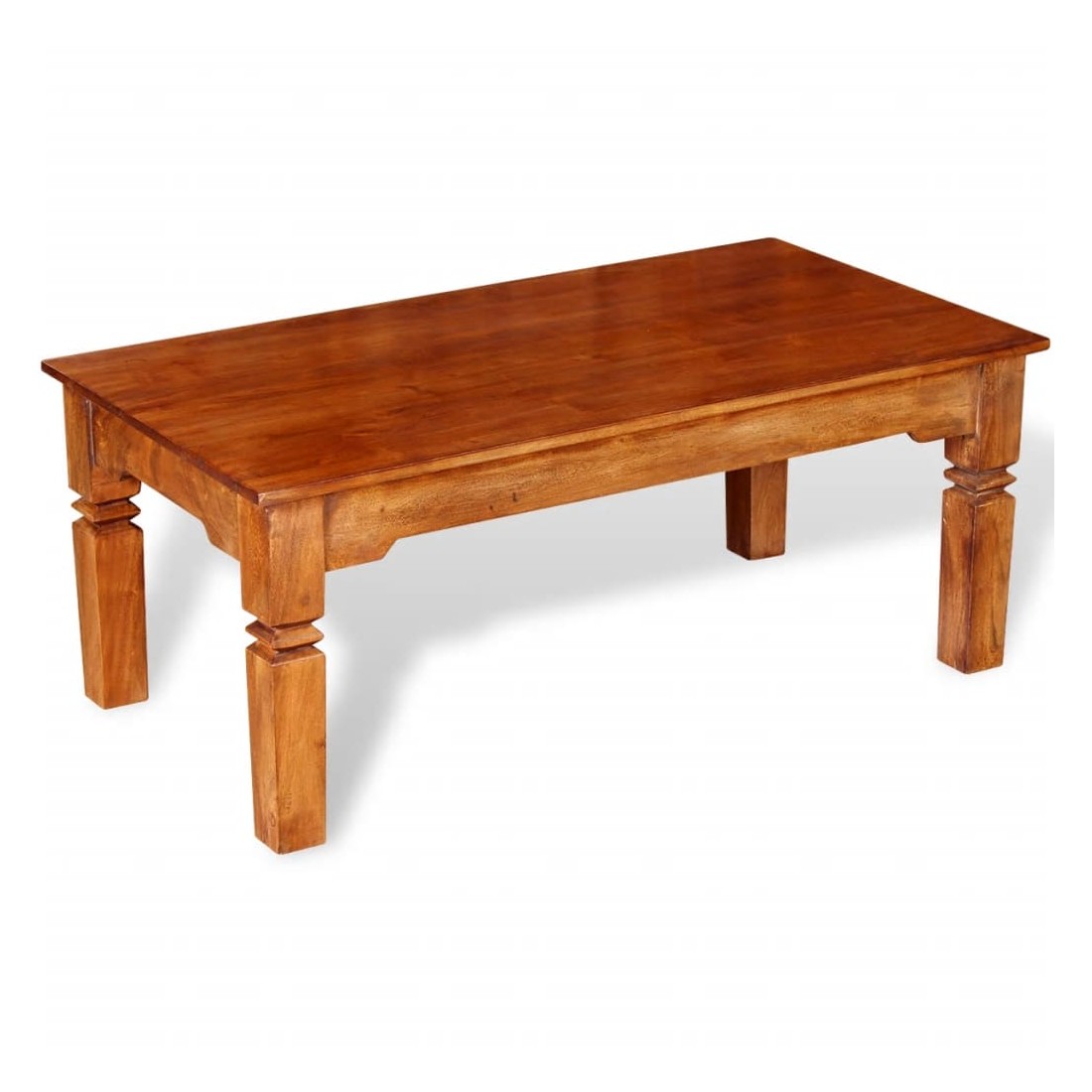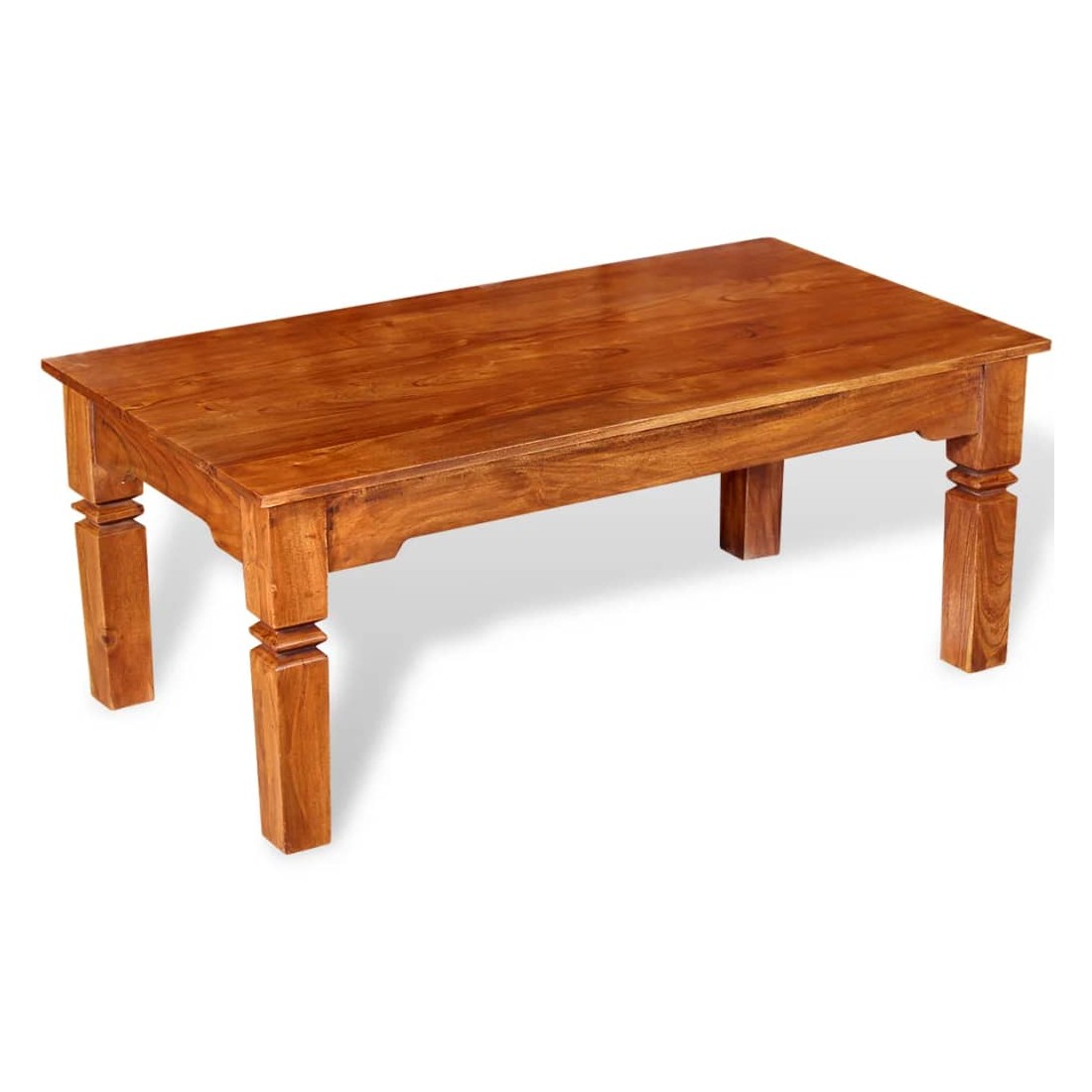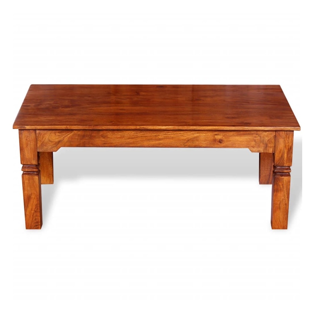Cette table basse en bois unique, fabriquée en bois massif avec une finition miel, sera un excellent ajout à votre pièce. Il peut également être utilisé comme table de canapé, table d'appoint, table d'appoint et table de salon. Le dessus de table solide offre une surface stable et sûre sur laquelle vous pouvez placer des boissons, une corbeille de fruits, un vase ou d'autres objets décoratifs. Les quatre pieds robustes s'ajoutent à la structure robuste. La table basse a été faite à la main à partir de bois d'acacia massif et possède les caractéristiques du palissandre et du bois de rose. L'artisanat raffiné et les magnifiques grains de bois rendent chaque meuble unique et légèrement différent de l'autre. Remarque importante : les couleurs varient d'un meuble à l'autre, rendant chacune