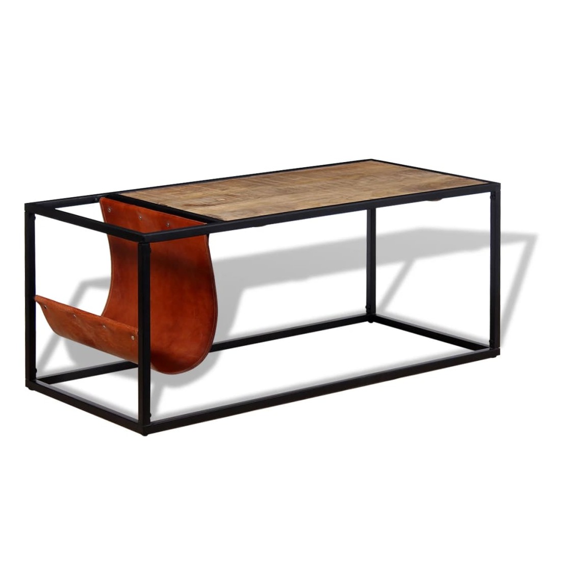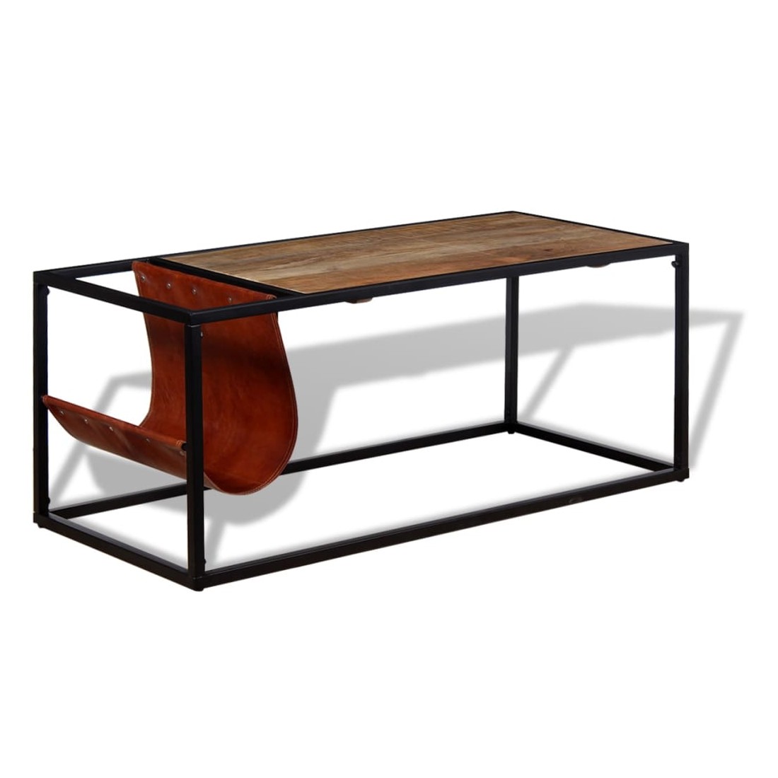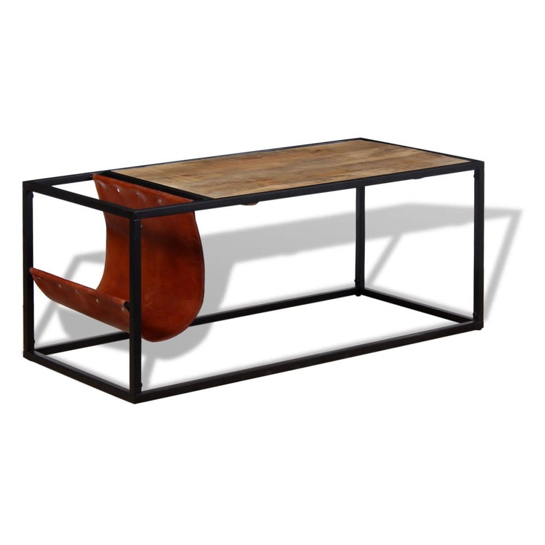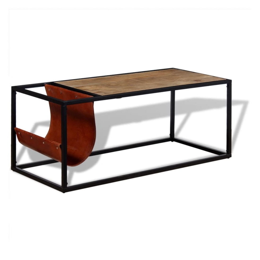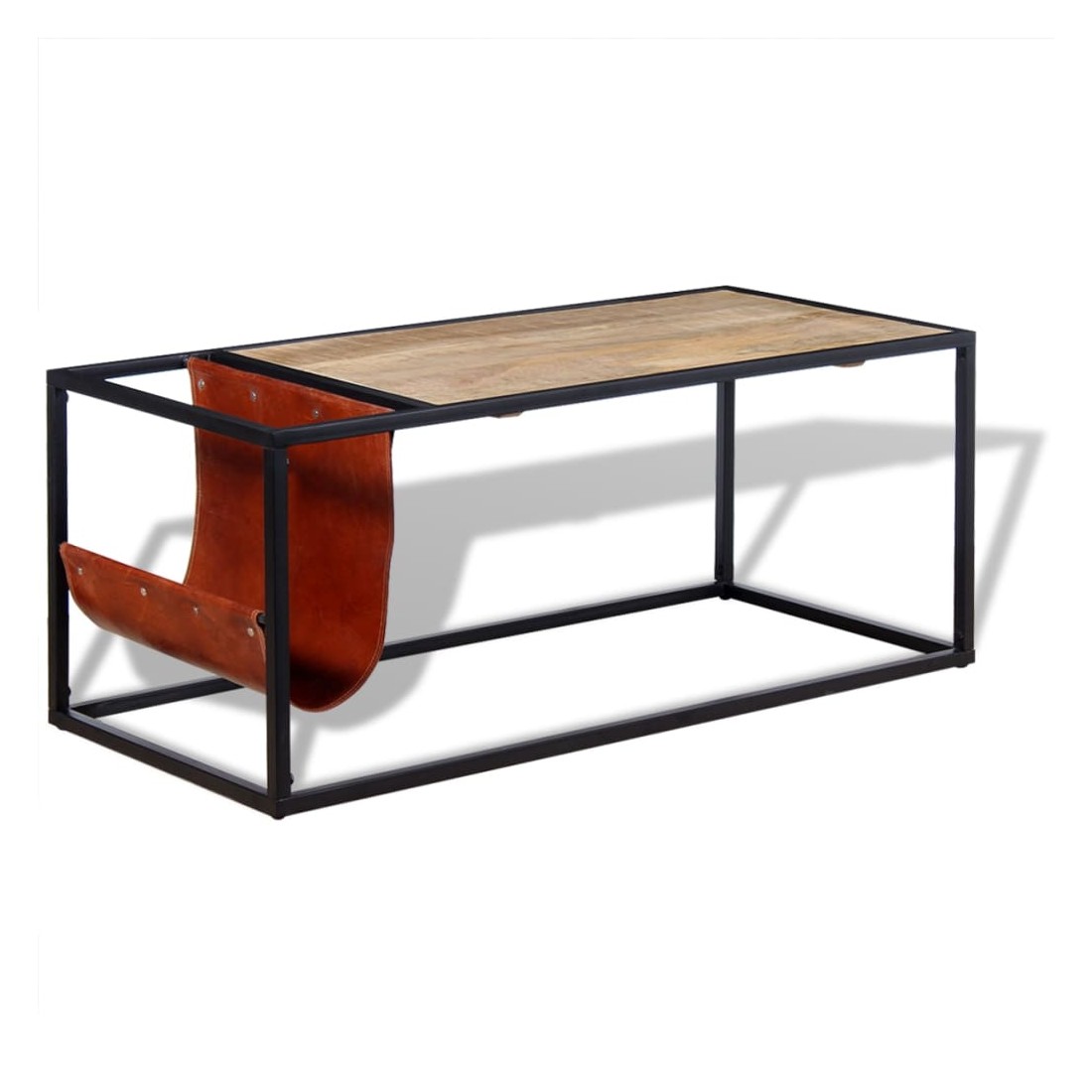 Cette table basse industrielle robuste est très pratique et dispose d'un grand espace de rangement. Cette table basse est faite de bois de manguier massif, ce qui signifie que ce meuble est robuste, stable et durable. Les grains visibles rendent chaque meuble unique et légèrement différent du suivant. La structure en acier enduit de poudre s'ajoute à sa robustesse et à son charme industriel. La table est faite à la main et l'artisanat ajoute à son style rétro spectaculaire. Chaque étape du processus est réalisée avec le plus grand soin, qu'il s'agisse du polissage ou du laquage. En outre, il dispose d'un porte-revues souple et flexible, en cuir de chèvre véritable. Le support est non seulement un élément de design élégant, mais aussi un espace pratique pour stocker des magazines et des journaux. Remarque importante : les couleurs varient d'un meuble à l'autre, rendant chacune de nos tables basses unique. La livraison est aléatoire, ce qui garantit l'exclusivité et l'individualité de votre produit.