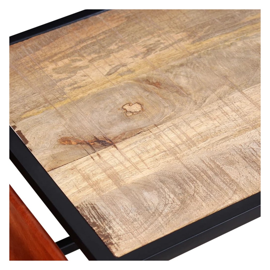 - Matériau : dessus en bois de manguier massif + structure en acier enduit de poudre