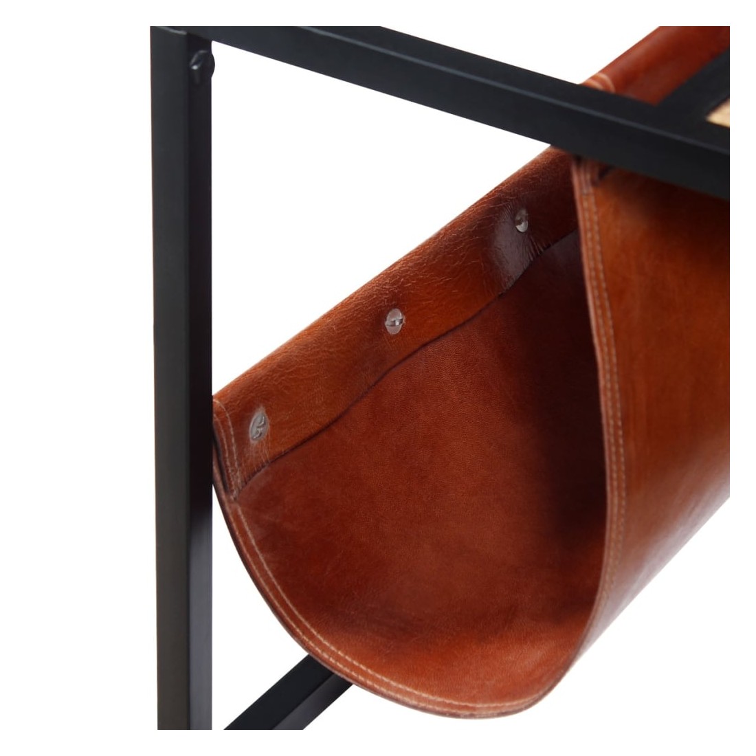 - Avec un véritable porte-revues en cuir de chèvre
