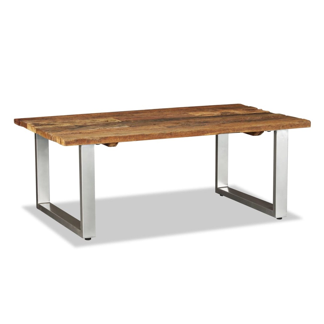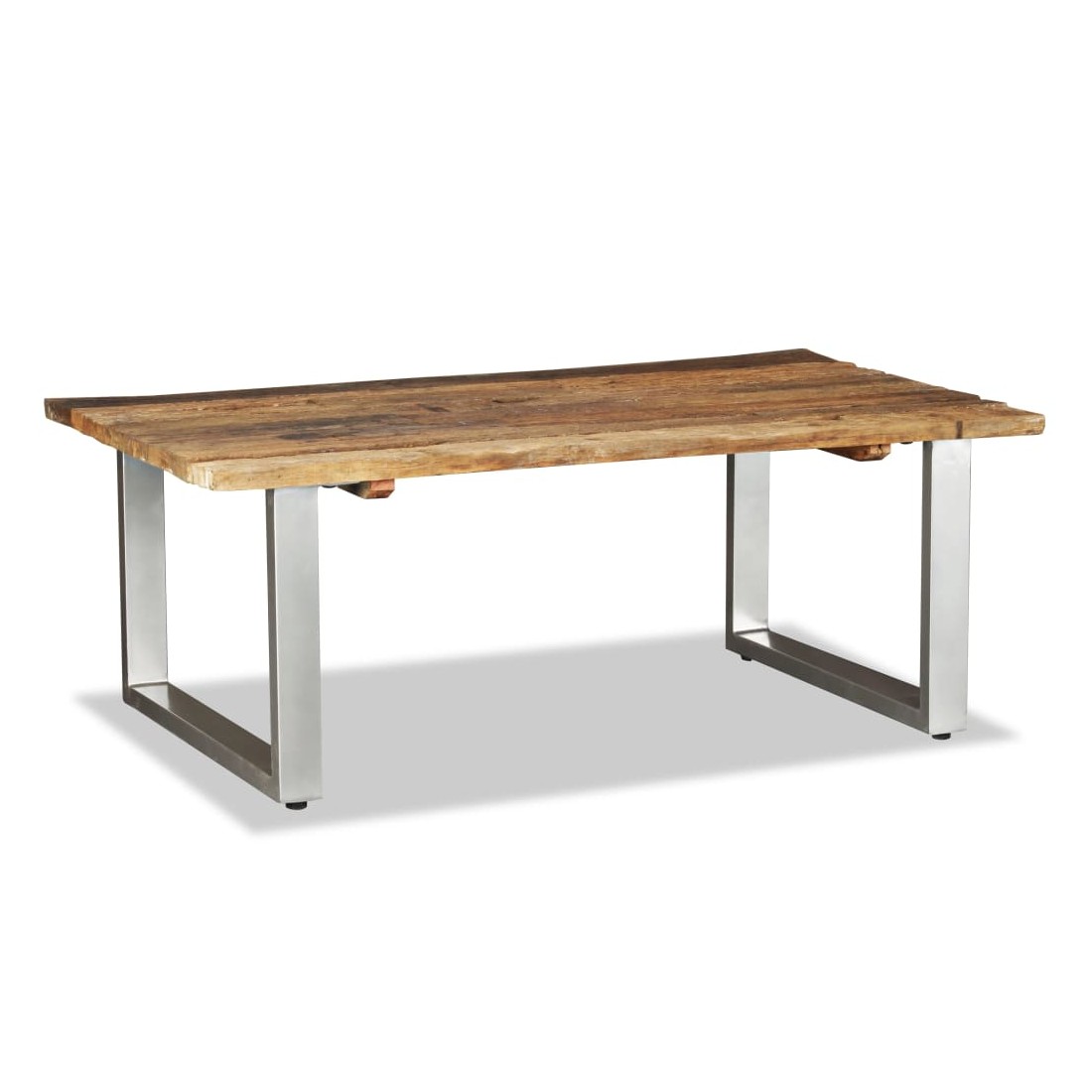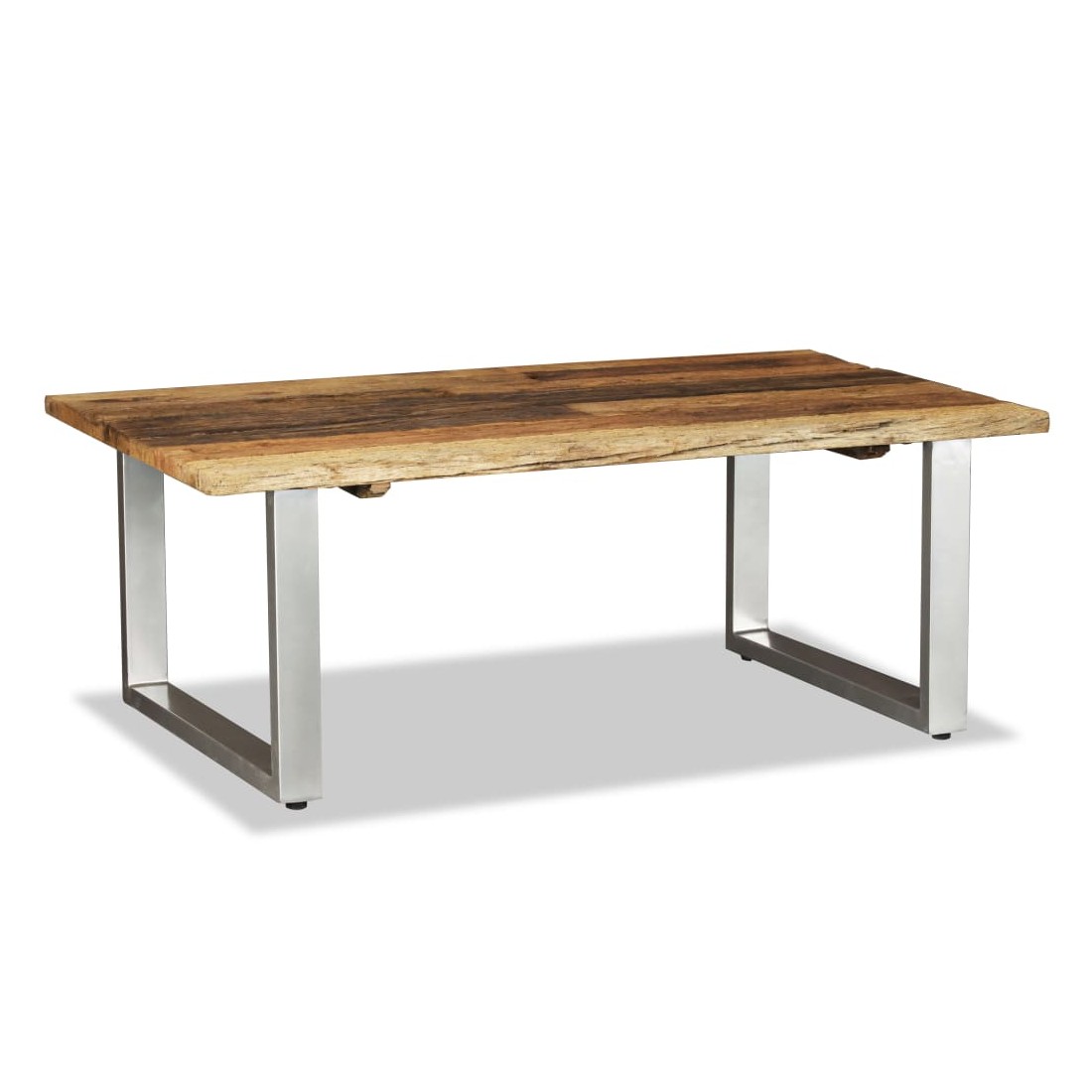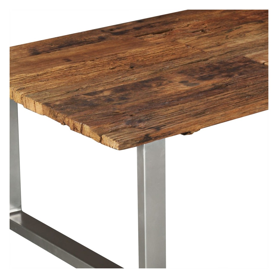 - Matériau : bois de récupération massif + pieds en fer forgé