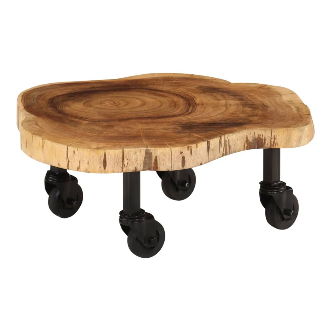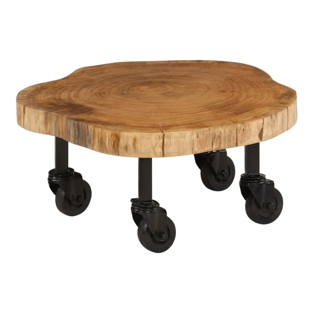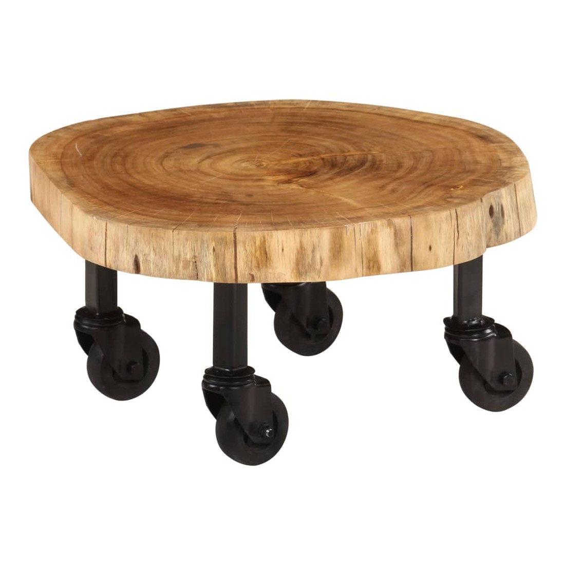 Cette table basse en bois d'acacia massif ajoutera une touche de charme rustique à votre décoration intérieure. Cette table basse est faite de bois d’acacia massif de haute qualité, un bois dur tropical résistant aux intempéries et durable. Chaque étape du processus de fabrication est réalisée avec le plus grand soin, que ce soit le polissage, la peinture ou le laquage. Le savoir-faire et les beaux grains de bois rendent chaque meuble unique et légèrement différent l'un de l'autre. Le dessus de table robuste vous offre un espace pour poser des collations ou petites objets décoratifs. Conçu avec 4 roulettes flexibles, elle peut être déplacé facilement dans la maison. Notre table est facile à assembler. Remarque importante : chaque article est unique et présente des variations de couleur