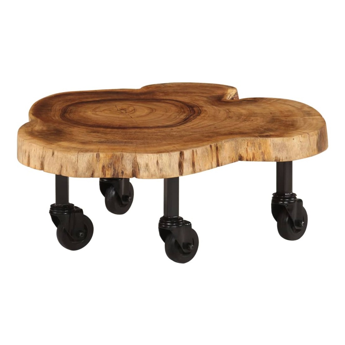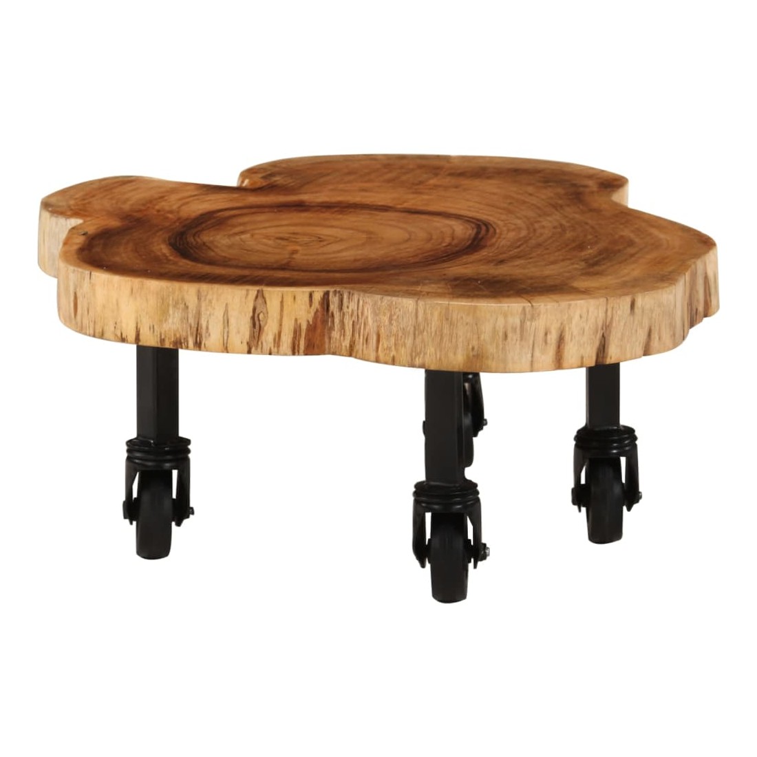 Cette table basse en bois d'acacia massif ajoutera une touche de charme rustique à votre décoration intérieure. Cette table basse est faite de bois d’acacia massif de haute qualité, un bois dur tropical résistant aux intempéries et durable. Chaque étape du processus de fabrication est réalisée avec le plus grand soin, que ce soit le polissage, la peinture ou le laquage. Le savoir-faire et les beaux grains de bois rendent chaque meuble unique et légèrement différent l'un de l'autre. Le dessus de table robuste vous offre un espace pour poser des collations ou petites objets décoratifs. Conçu avec 4 roulettes flexibles, elle peut être déplacé facilement dans la maison. Notre table est facile à assembler. Remarque importante : chaque article est unique et présente des variations de couleurs, de grains et de formes. La livraison est aléatoire, ce qui garantit l'exclusivité et l'individualité de votre produit.