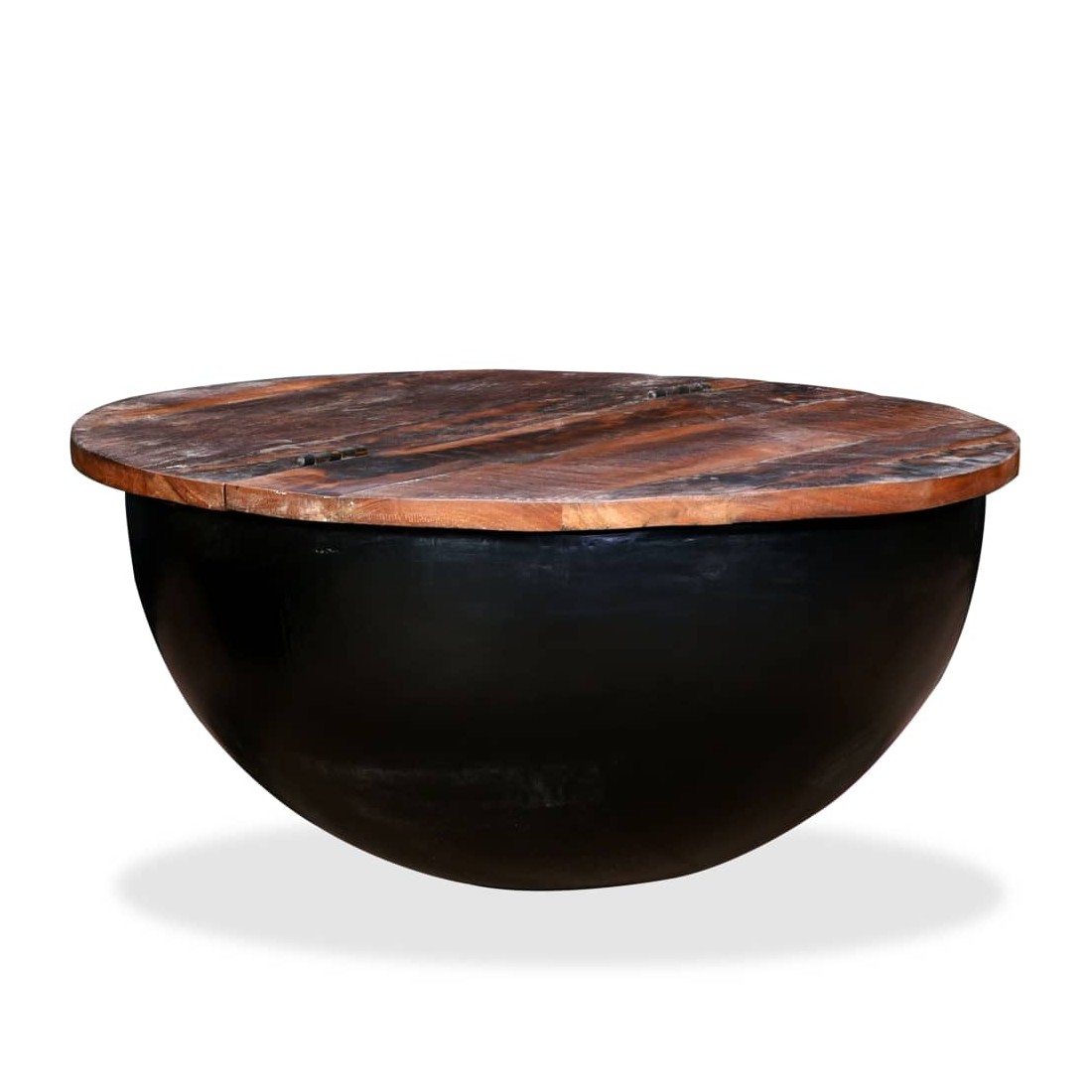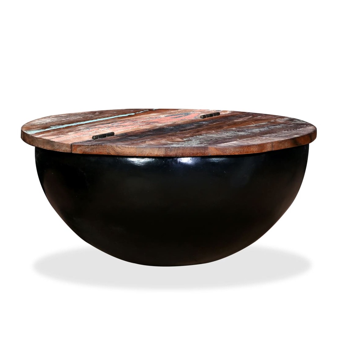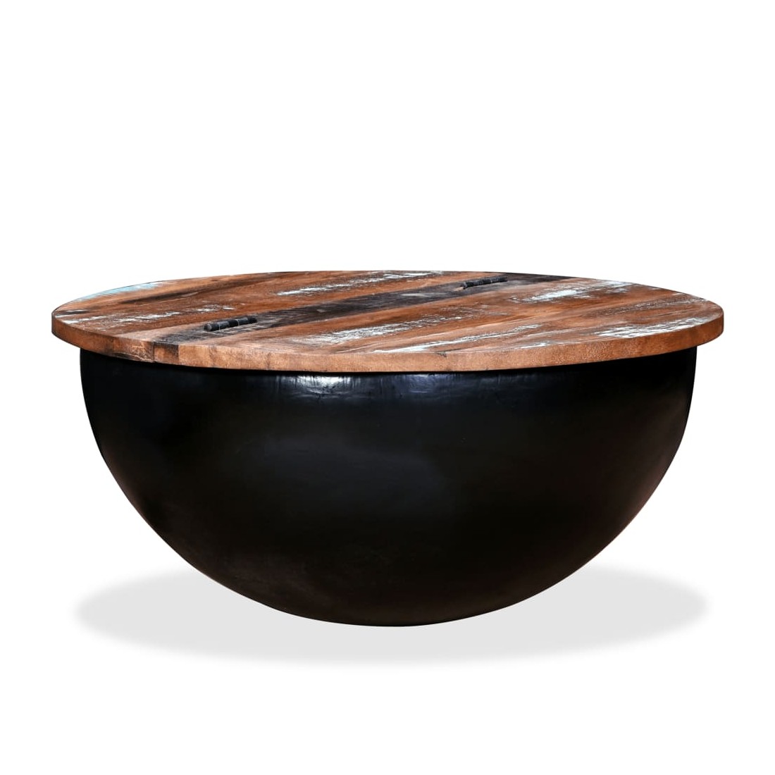 Table basse Bois de récupération massif Noir Forme de bol