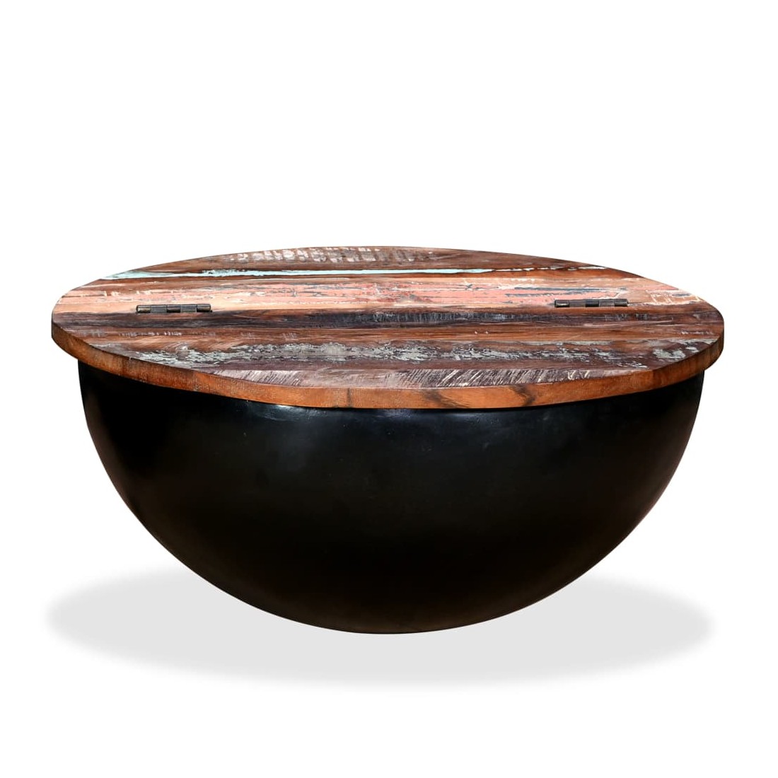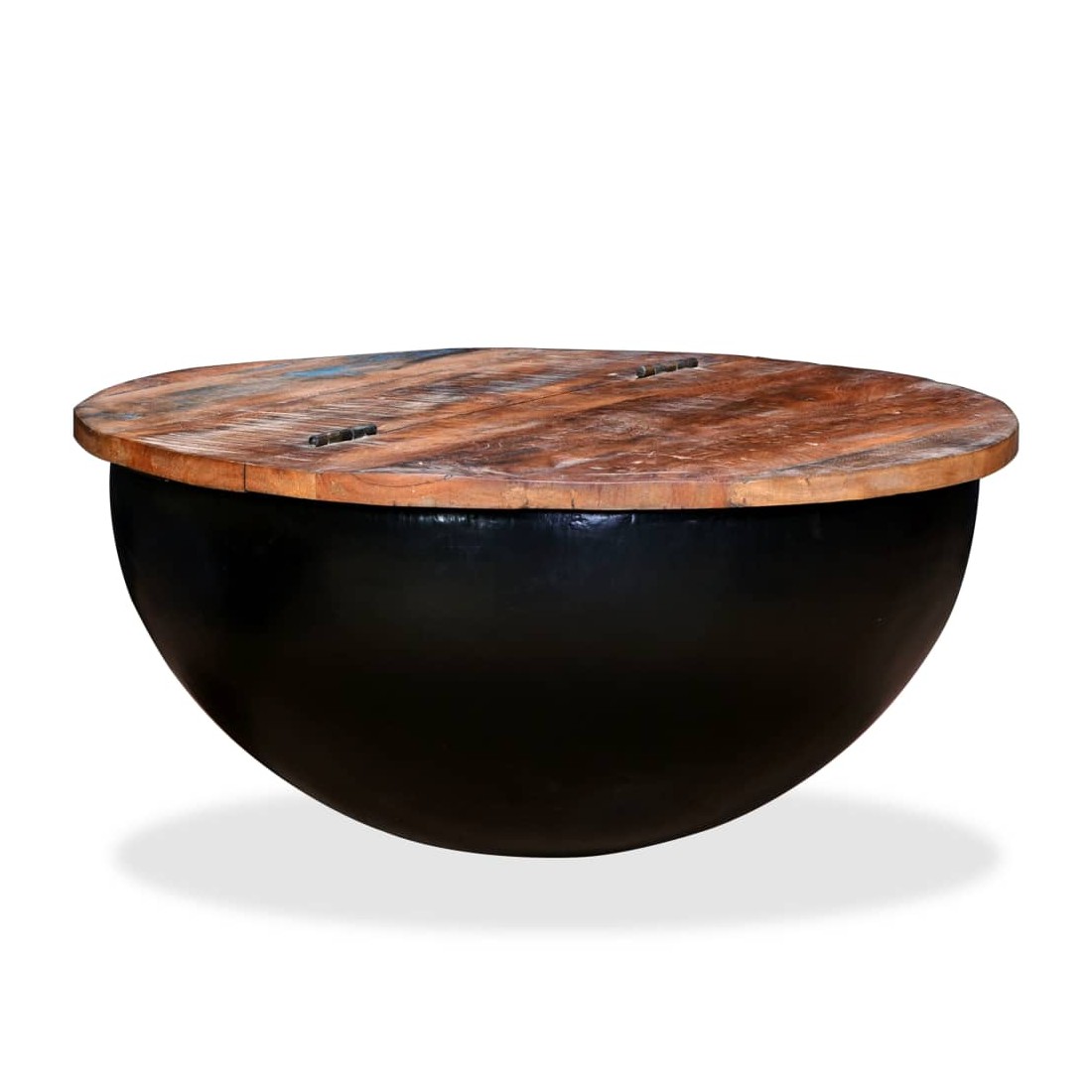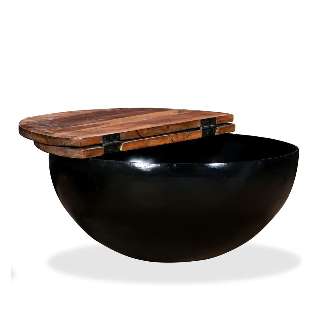 Table basse Bois de récupération massif Noir Forme de bol