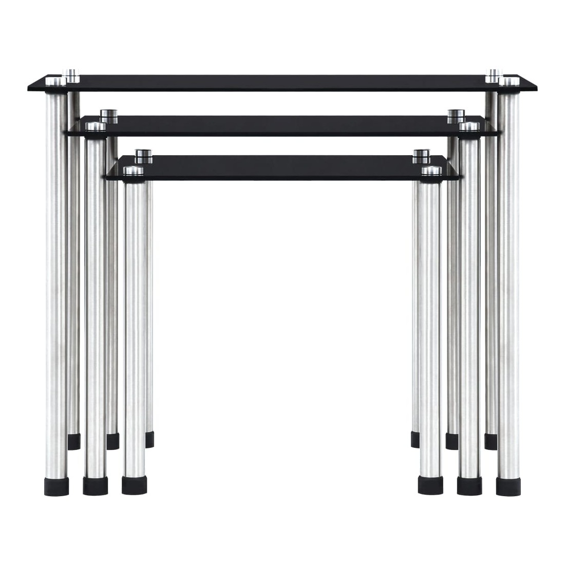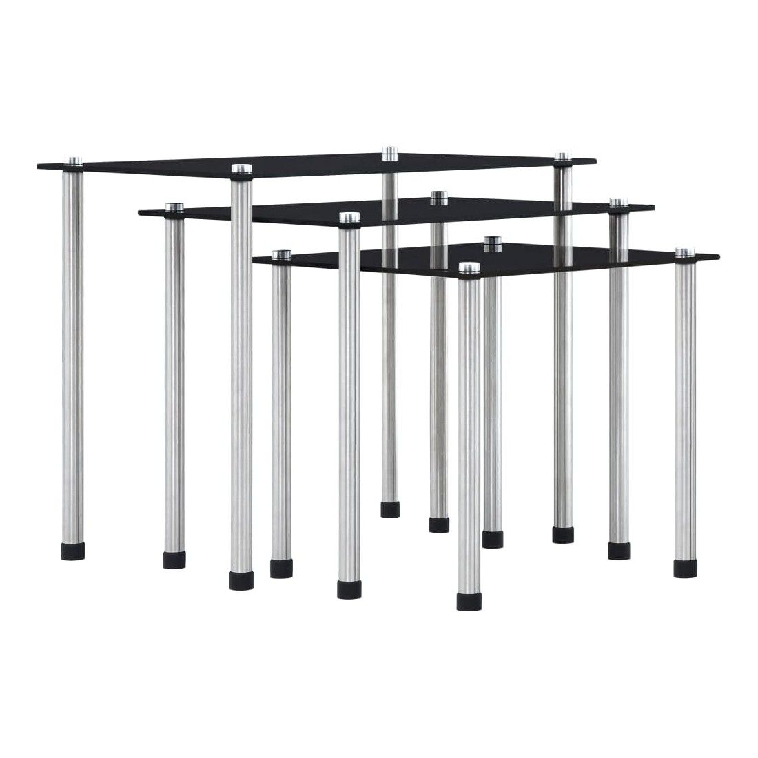 Tables gigognes 3 pcs Noir Verre trempé