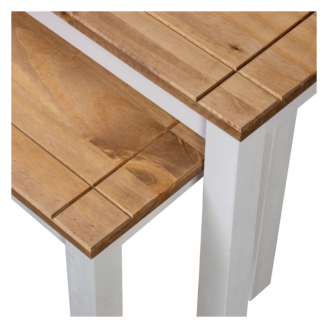 Tables gigognes 2pcs Blanc Bois pin massif Assortiment Panama