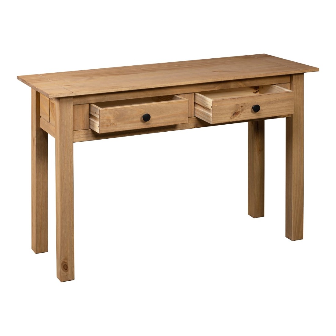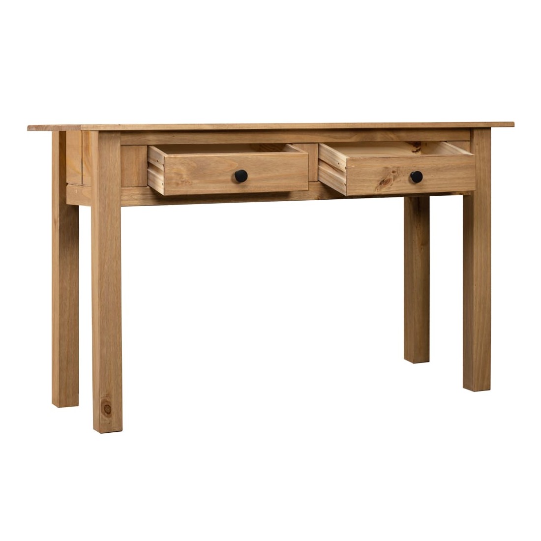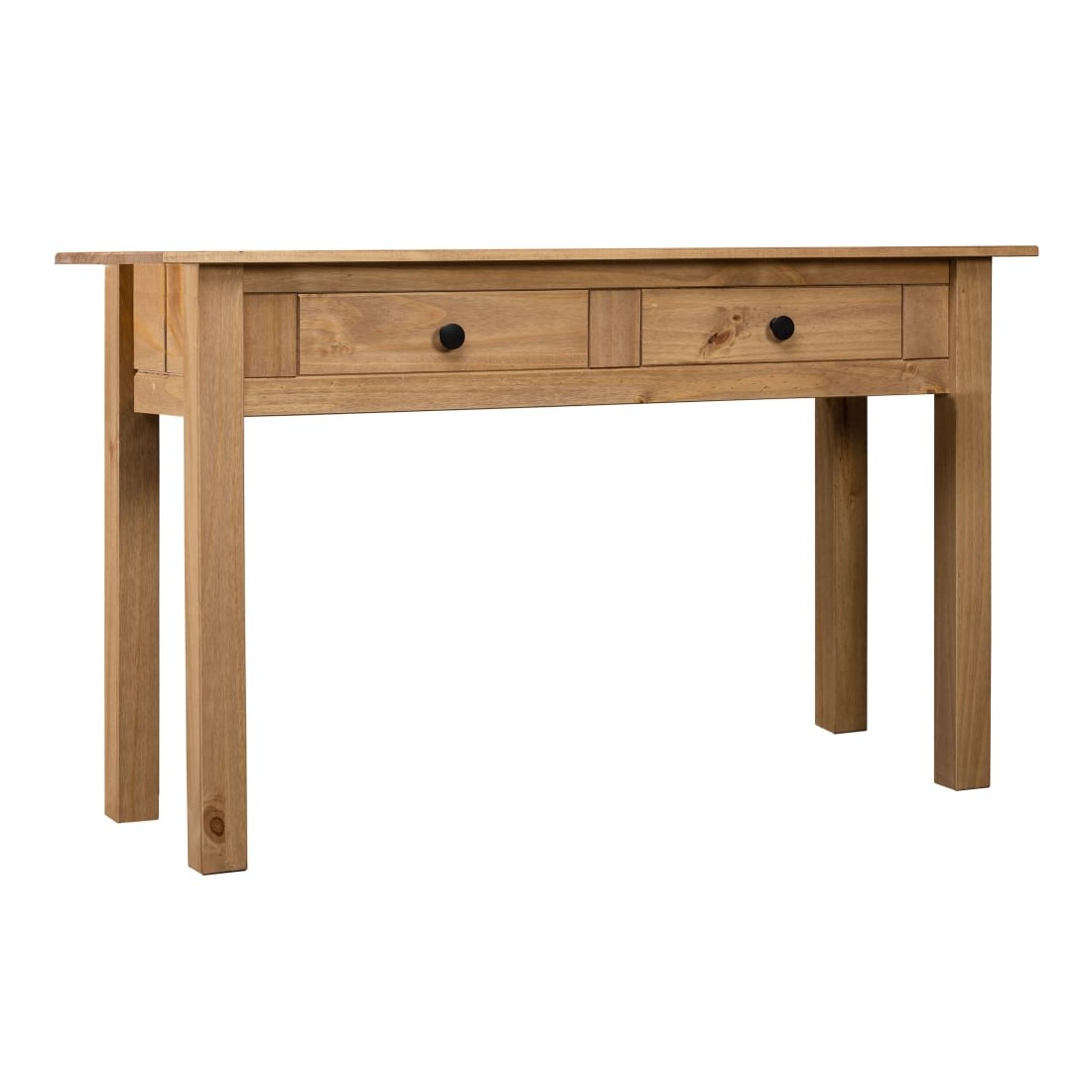 Cette table console en bois est simple mais élégante. Elle ajoutera une touche rustique à la décoration de votre salon. Fabriquée de manière experte à partir de bois de pin massif, la table console est très robuste et durable. Grâce à son design compact, vous êtes sûr de trouver une place pour notre table console presque n’importe où dans votre maison. Le dessus robuste est parfait pour exposer des objets décoratifs, des cadres photo et des plantes en pot. Les 2 tiroirs offrent un espace supplémentaire pour ranger de petits objets. Elle peut également être utilisée comme table latérale, table d'appoint, buffet, etc. Ce produit est facile à assembler.