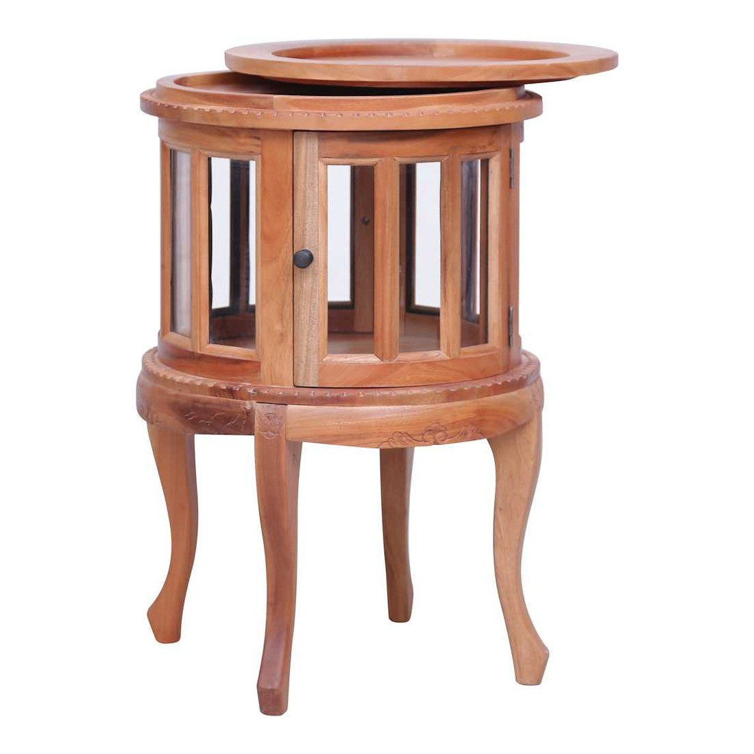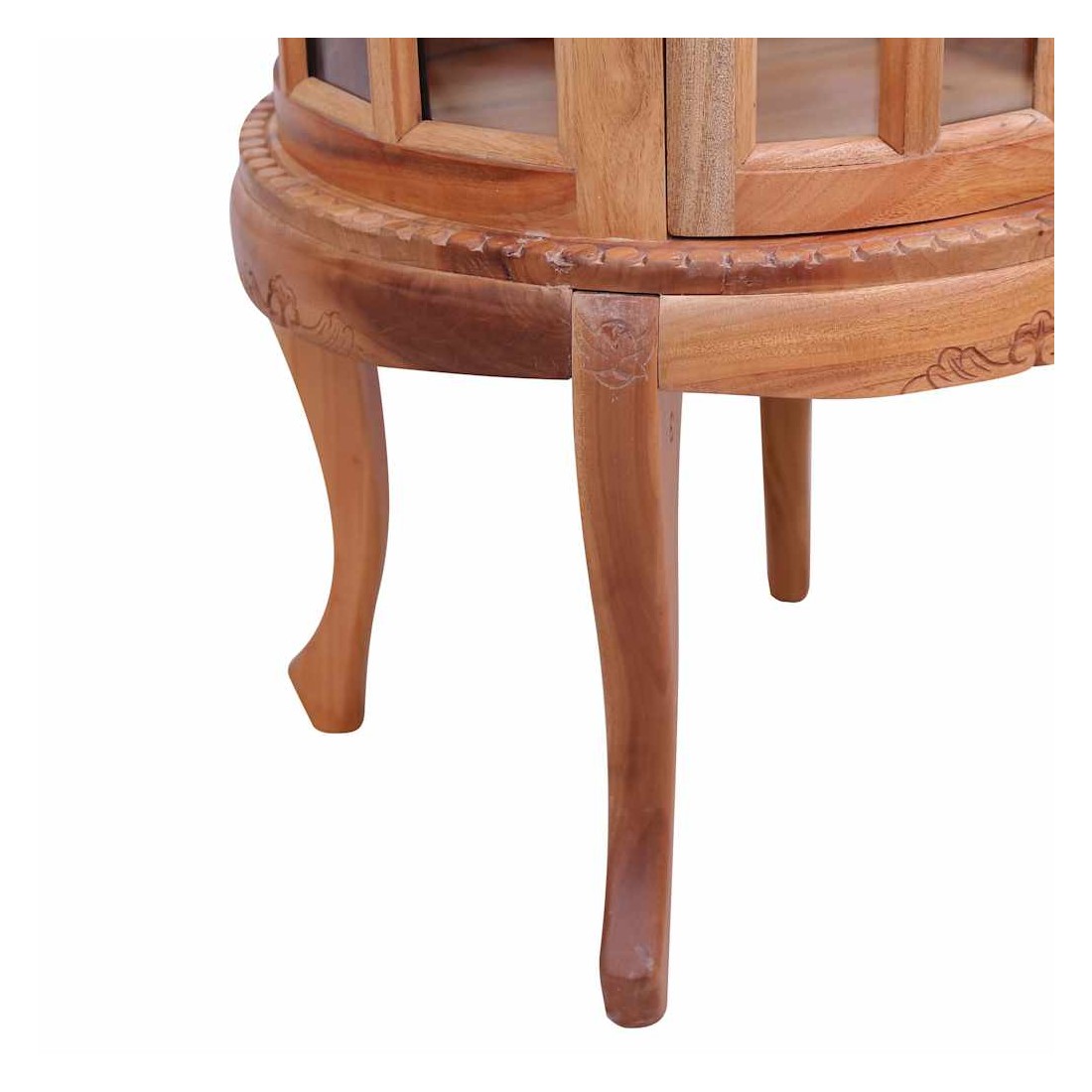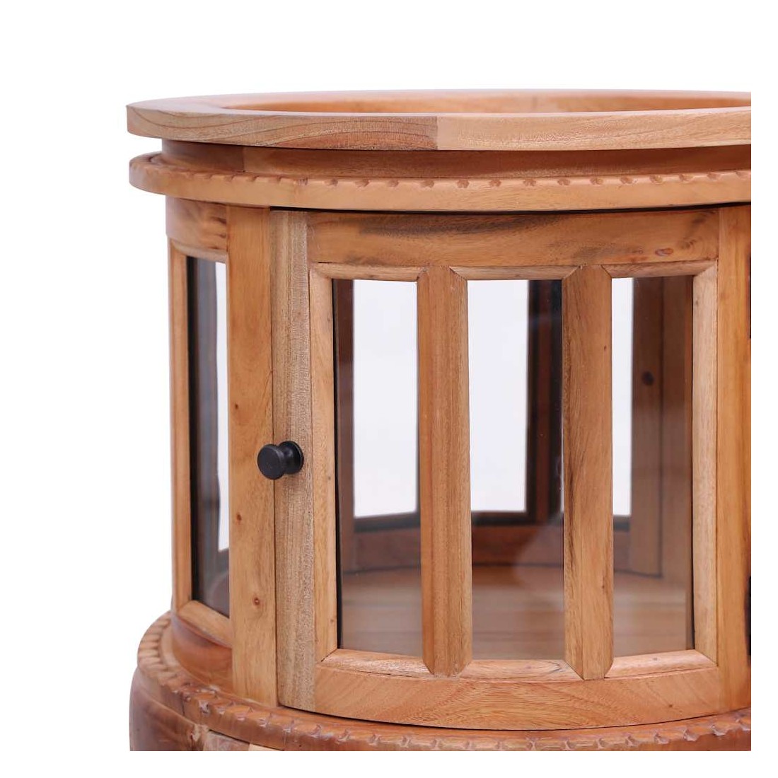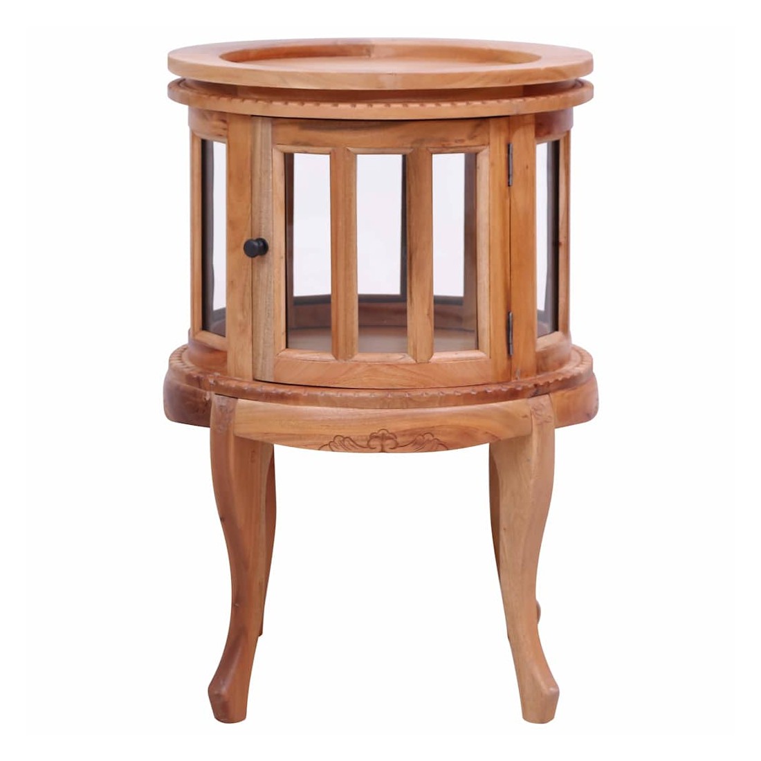 Apportez le luxe d'un design inspiré par un encensoir dans votre intérieur avec notre élégante armoire de vitrine ! Notre armoire latérale apportera une touche pratique et décorative à votre intérieur. Fabriqué en bois d'acajou massif avec une finition brune classique et du verre, ce meuble à vitrine en bois massif est extrêmement durable et robuste. L'acajou est un bois dur tropical qui se distingue par sa beauté, sa durabilité et sa couleur. La table de canapé offre un espace de rangement avec 1 grand compartiment. De plus, le dessus de table robuste est idéal pour afficher des objets décoratifs, des cadres photo, des plantes en pot, ainsi que divers autres objets. Il est facile d'essuyer avec un chiffon humide. Le meuble latéral est facile à assembler.