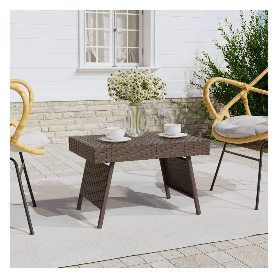 Vous êtes à la recherche d'une table pour garder vos articles essentiels ? Cette table d'appoint pliable est un choix parfait, à la fois pratique et beau ! Matériau durable : la résine tressée, également connue sous le nom de rotin poly, résiste aux intempéries et est facile à nettoyer. Elle reste belle à l'extérieur pendant une longue période. Elle est plus économique que d'autres matériaux, tout en offrant une excellente qualité, une commodité et un aspect esthétique.Cadre en acier enduit de poudre : le cadre en acier enduit de poudre de la table basse assure robustesse et stabilité.Design pliable : la table d'appoint peut être pliée lorsqu'elle n'est pas utilisée pour économiser de l'espace.Large application : vous pouvez non seulement combiner cette table unique avec vos meubles de jardin, mais aussi l'utiliser à l'intérieur. Bon à savoir :Pour faciliter au maximum le montage, chaque produit est livré avec des instructions. Remarque :Pour que vos meubles d'extérieur restent beaux, nous vous recommandons de les protéger avec une housse imperméable.