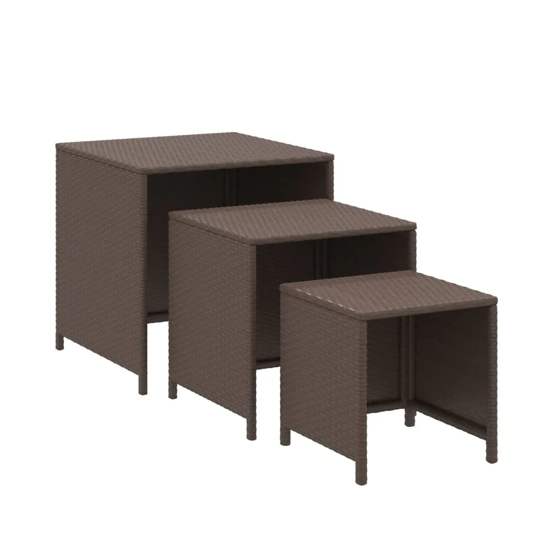 Tables gigognes 3 pcs marron résine tressée