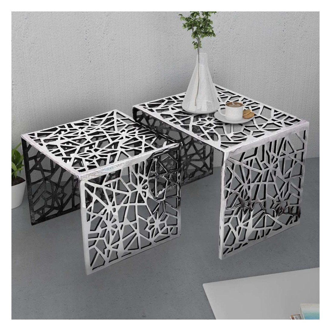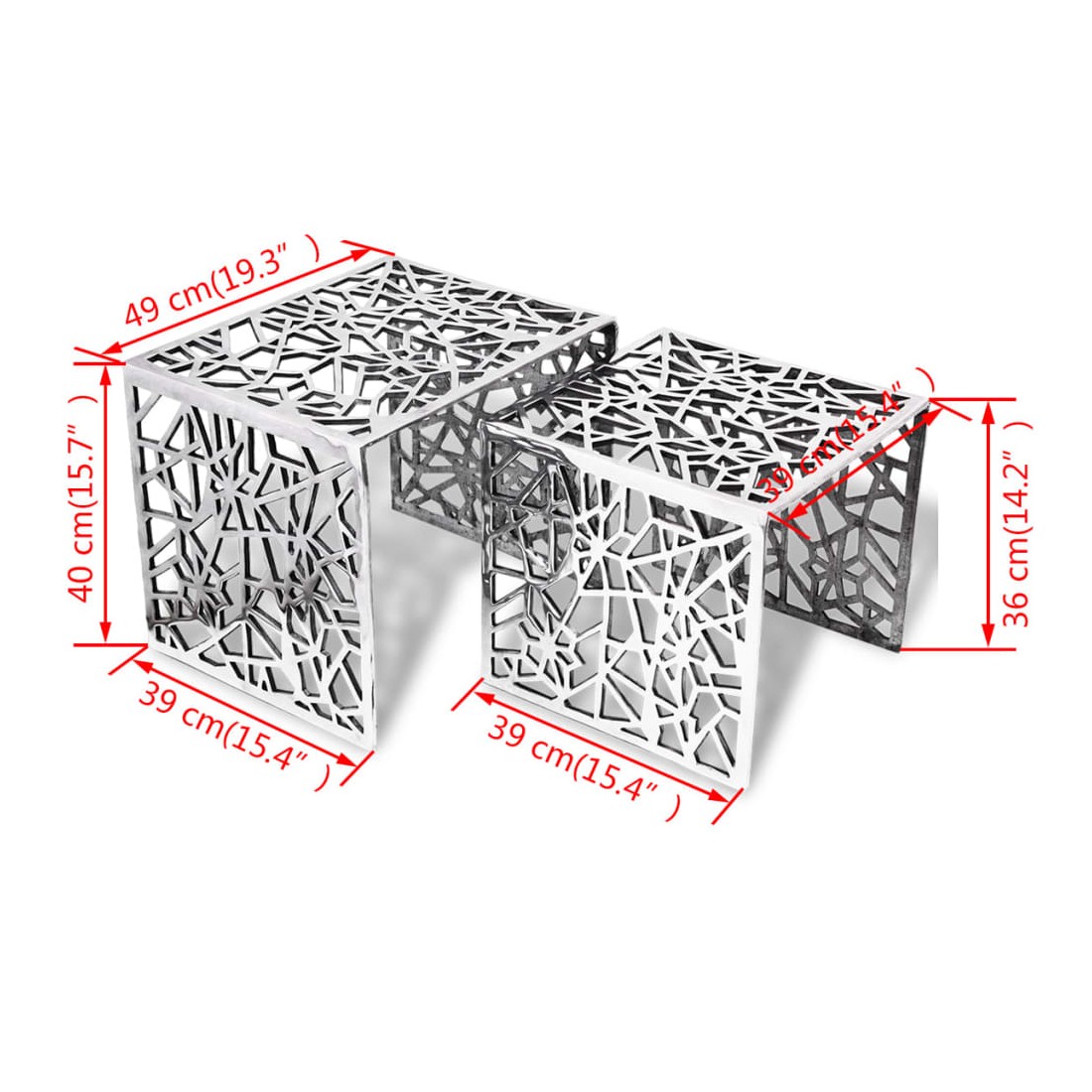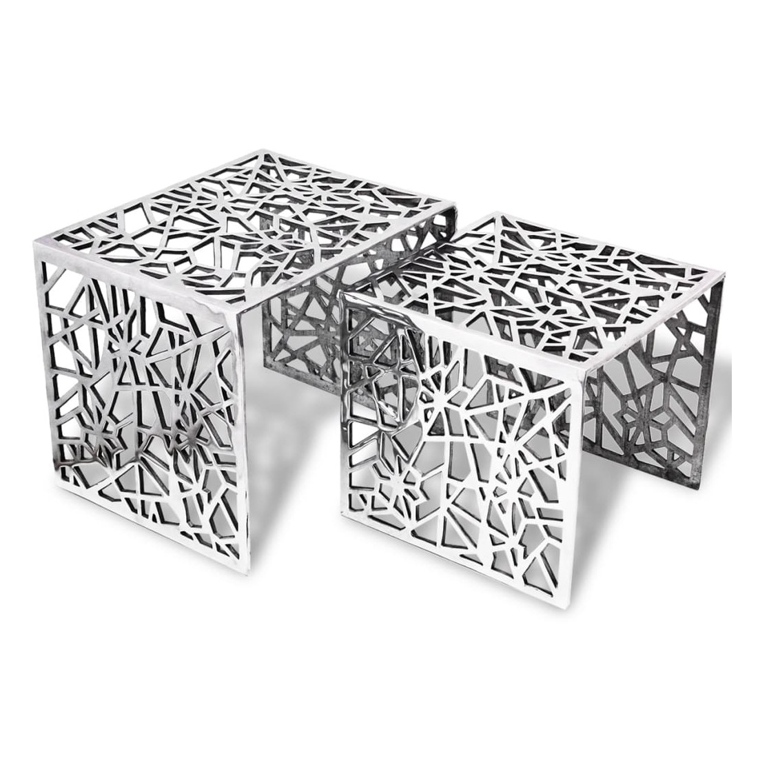 Cet ensemble de tables basses contemporain est un accessoire intemporel dans votre maison. Elles peuvent également être utilisées comme tables auxiliaires, supports de lampe / plante / téléphones, etc. Fabriquées en aluminium de haute qualité, ces tables basses sont légères et durables et faciles à déplacer. Puisqu'elles sont des tables d'appoint, elles ne prendront pas trop d'espace lorsqu'elles ne sont pas utilisées. La livraison comprend 2 tables d'appoint.
