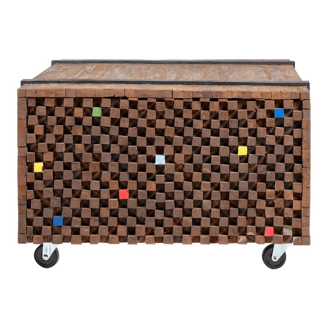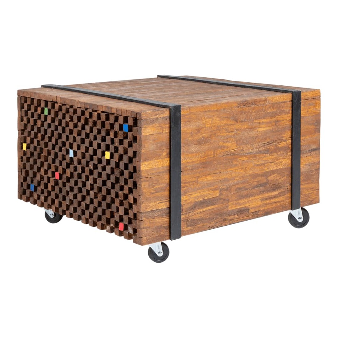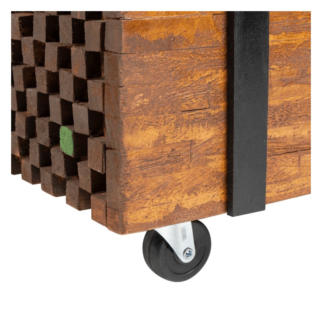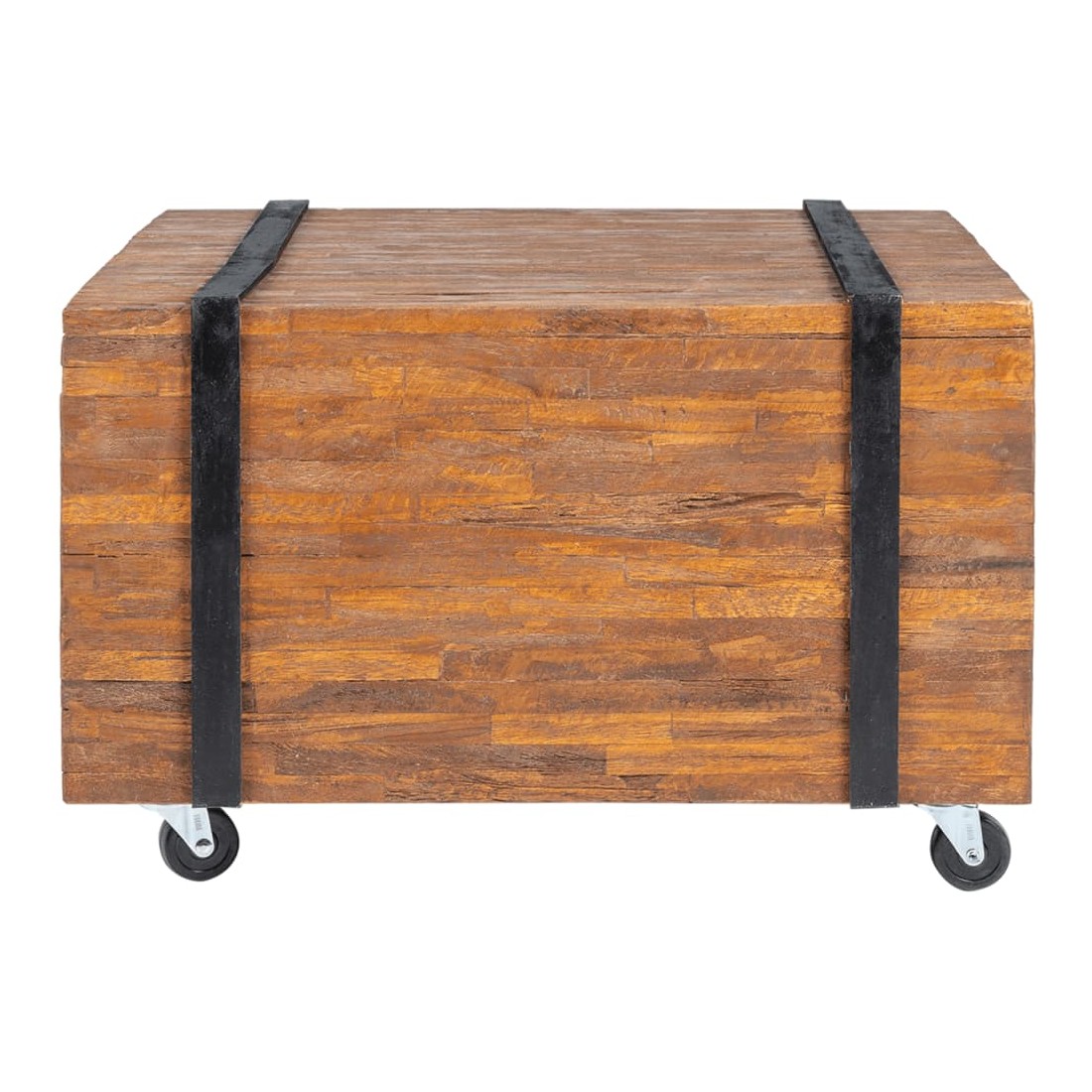 Cette table d'appoint de style industriel fera un accessoire unique à votre décor. Elle peut également être utilisée comme une table basse, une table d'extrémité, etc. Cette table durable et belle est faite de bois dur de teck pour ressembler à une pile de poutres maintenues ensemble par une paire de ceintures noires. La table d'appoint est idéale pour placer des boissons, des vases, des plantes en pot, des paniers de fruits et d'autres articles décoratifs. La finition naturelle rend la table facile à nettoyer. Grâce à ses quatre roues, cette table rustique est très facile à déplacer. Bon à savoir :Les couleurs et les grains varient selon les pièces de meubles, ce qui rend chaque pièce unique. La livraison est aléatoire.