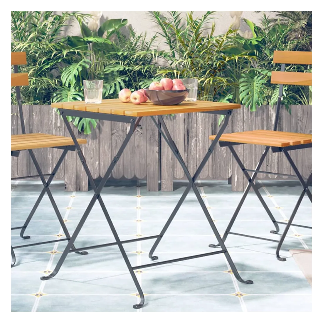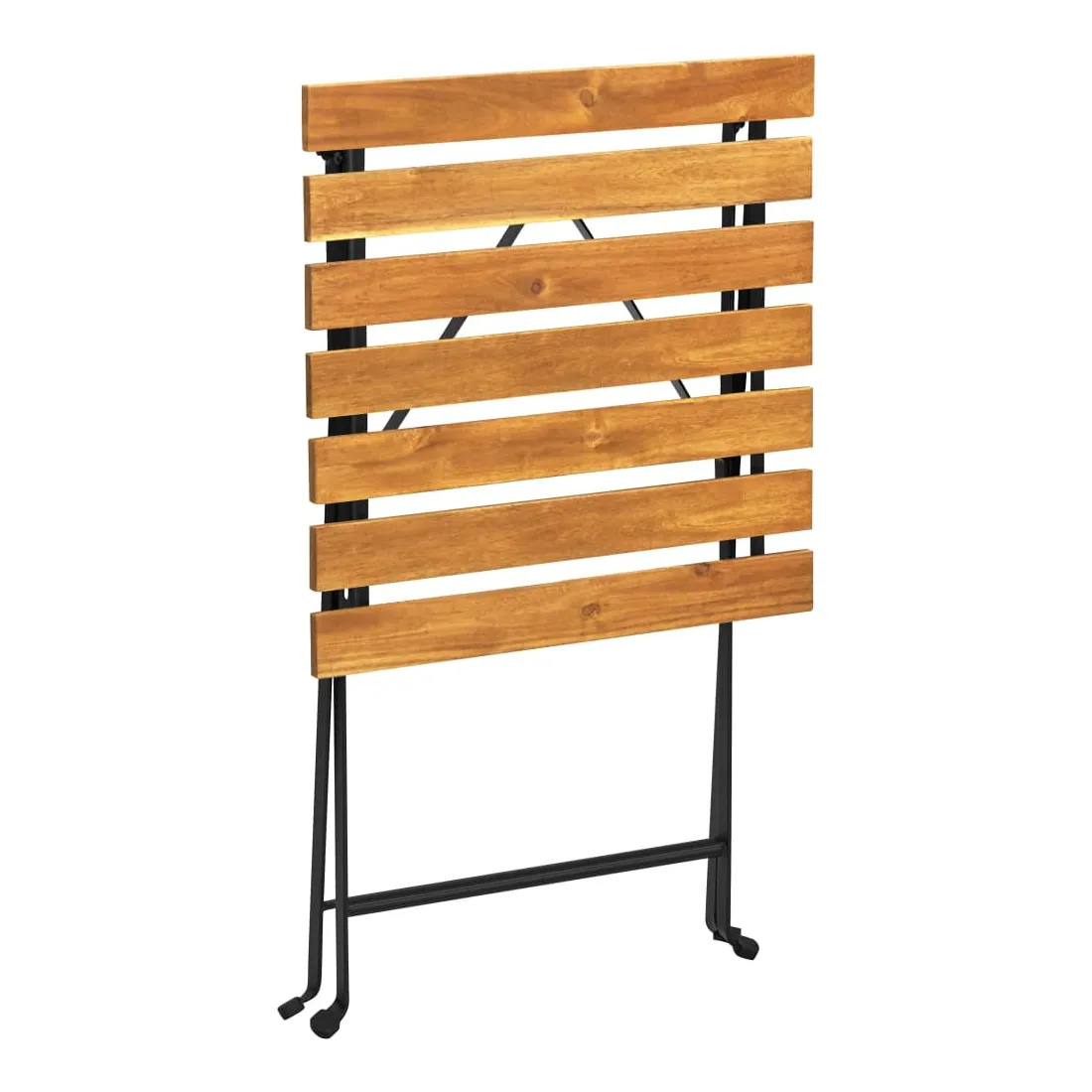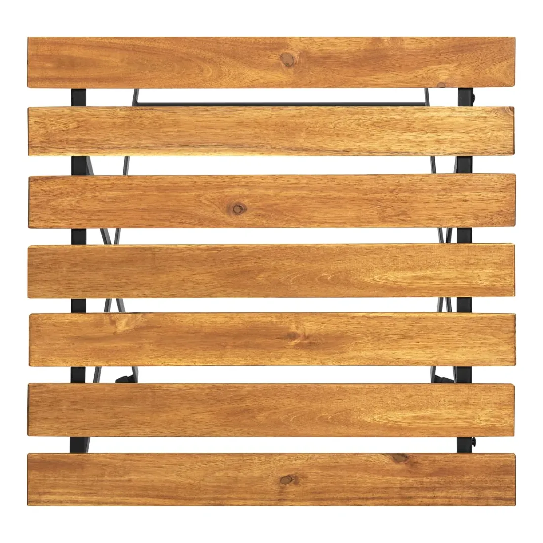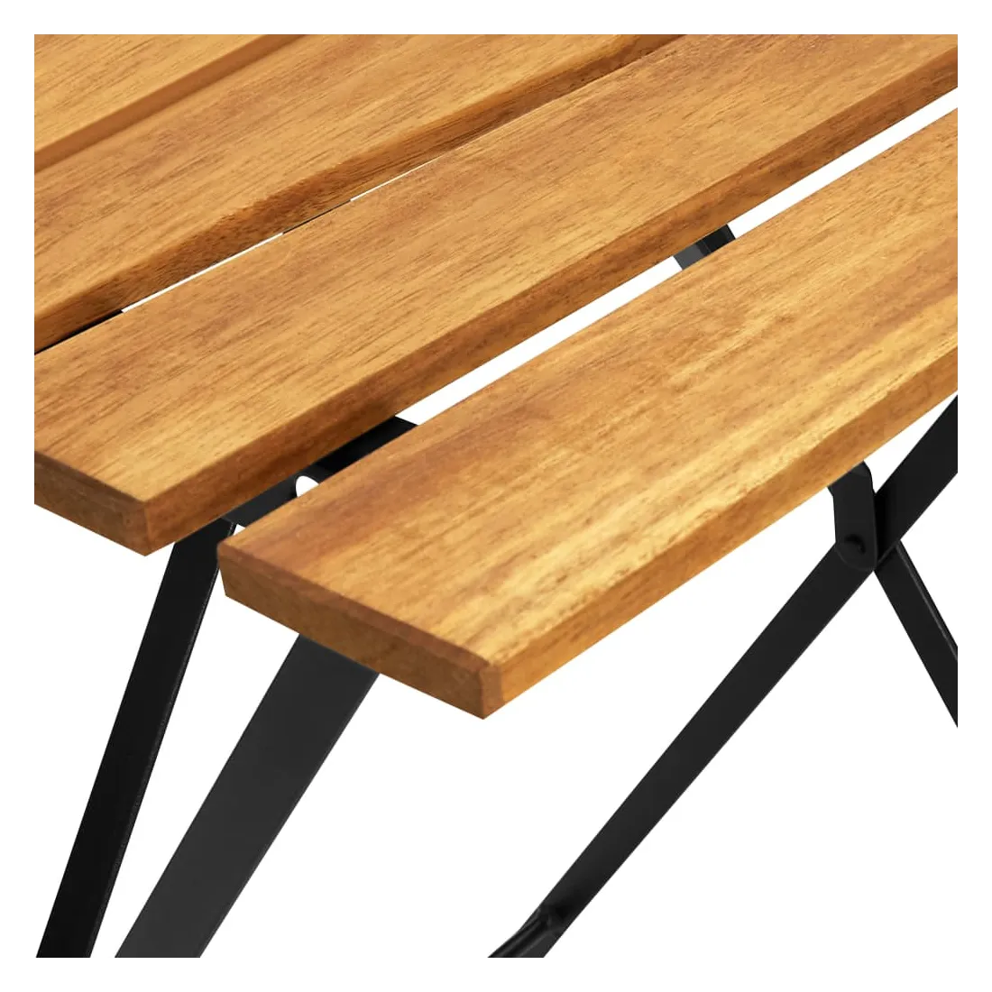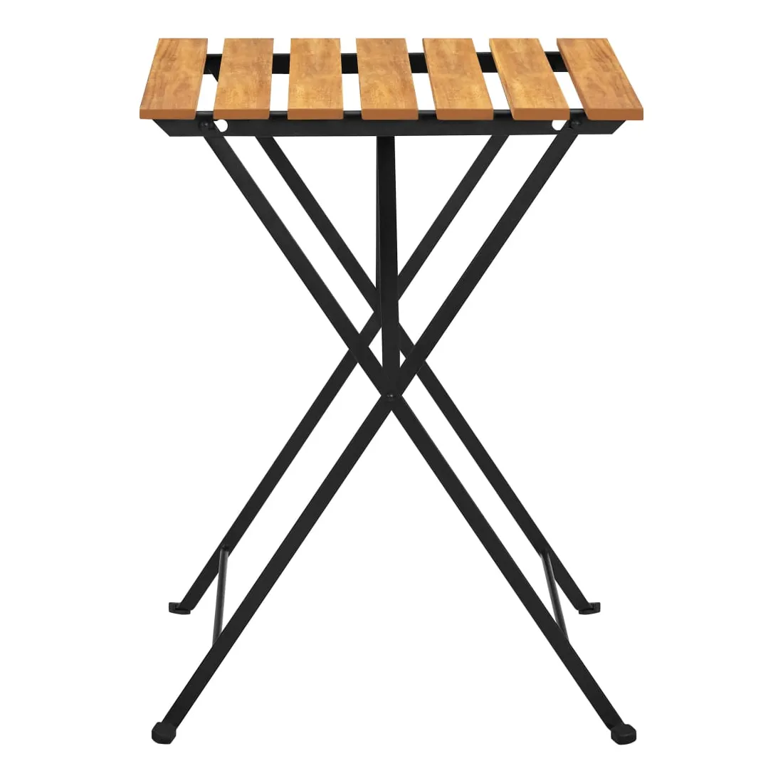 Profitez du thé de l'après-midi ou discutez simplement avec vos amis ou votre famille dans votre espace extérieur sur cette table de bistro en bois ! Cette table d'extérieur est en bois d'acacia massif, un bois dur aux grains denses. Cette table de jardin magnifiquement conçue est stable, durable et accrocheuse. De plus, le savoir-faire exquis et les riches grains de bois rendent chaque pièce légèrement différente l'une de l'autre. Les pieds en acier ajoutent à sa robustesse. De plus, un dessus de table facile à nettoyer est idéal pour placer des boissons, de la nourriture, etc. Vous pouvez plier la table pour gagner de la place lorsqu'elle n'est pas utilisée.