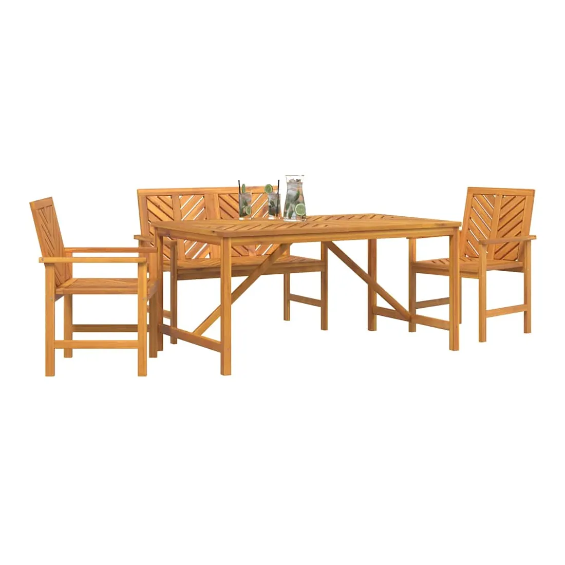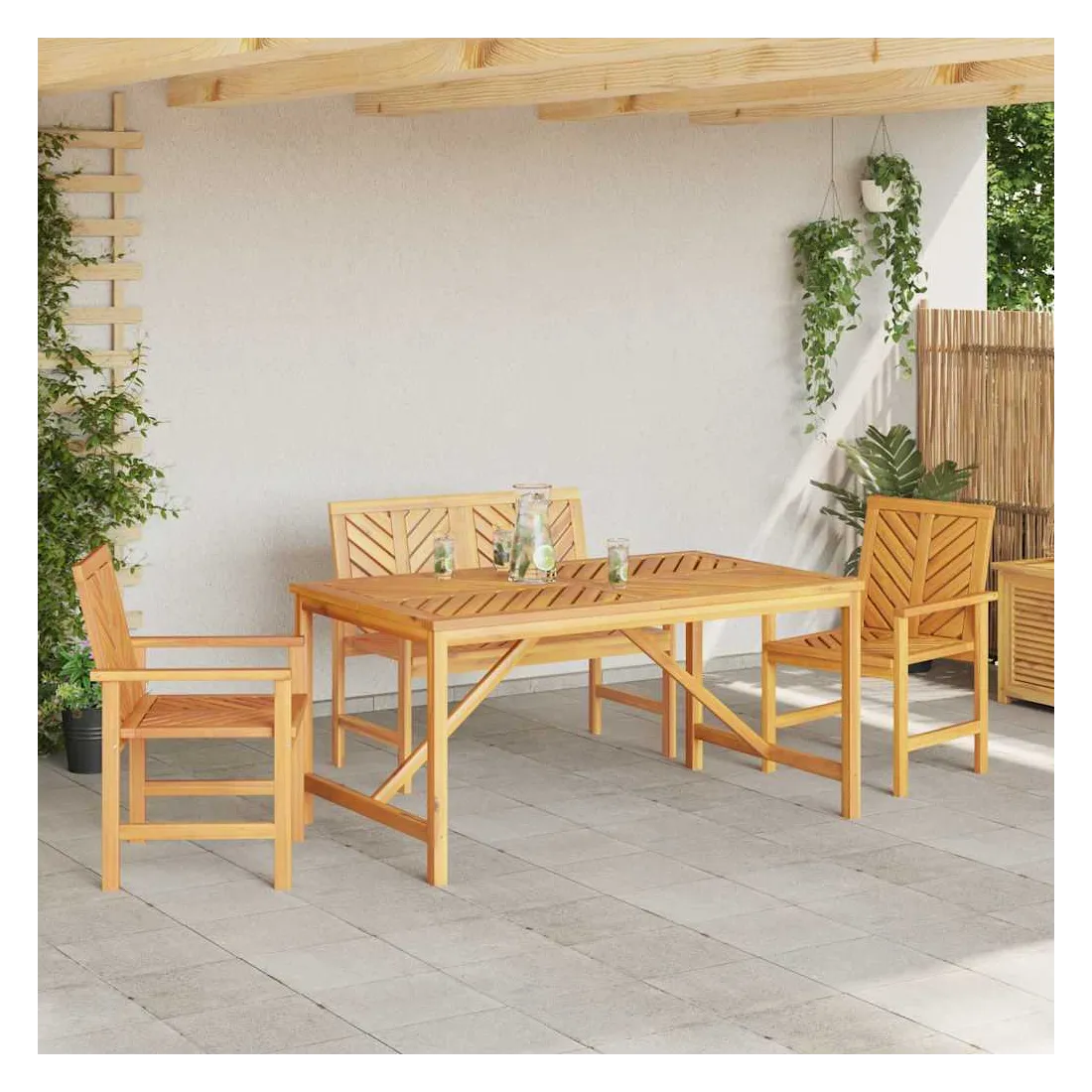 Ce set de repas de jardin moderne est un super choix pour manger dehors. Avec ses lignes simples et son style épuré, il crée une ambiance chic et classe dans votre jardin ou sur votre terrasse. Parfait pour rassembler la famille et les amis, il embellit tous les espaces extérieurs. Matériaux : Fabriqué en bois d'acacia massif, ce set a un look chaleureux et élégant grâce à son beau grain naturel. Ce bois est choisi pour sa solidité et son allure, s'intégrant parfaitement dans n'importe quel jardin. Composants inclus : Ce set est composé d'une table robuste et de chaises assorties, parfaites pour manger dehors. Chaque chaise a des pieds en acacia massif, avec accoudoirs et sièges, tous unis par une même couleur et matériau pour un look harmonieux. Caractéristiques : La forme rectangulaire classique s'adapte à toutes sortes d'aménagements extérieurs, offrant un grand espace pour partager des repas. La finition huilée protège contre l'humidité pour une longue durée de vie et peu d'entretien. Utilisations recommandées : Destiné uniquement à l'extérieur, ce set est idéal pour les jardins, terrasses et patios. Organisez-y des repas ou des brunchs décontractés grâce à sa capacité généreuse. Entretien et maintenance : Pour le garder en bon état, essuyez régulièrement avec un chiffon sec. Évitez de l'exposer aux intempéries quand vous ne l’utilisez pas. Une housse de protection par mauvais temps peut prolonger sa durée de vie.