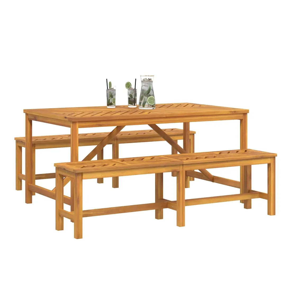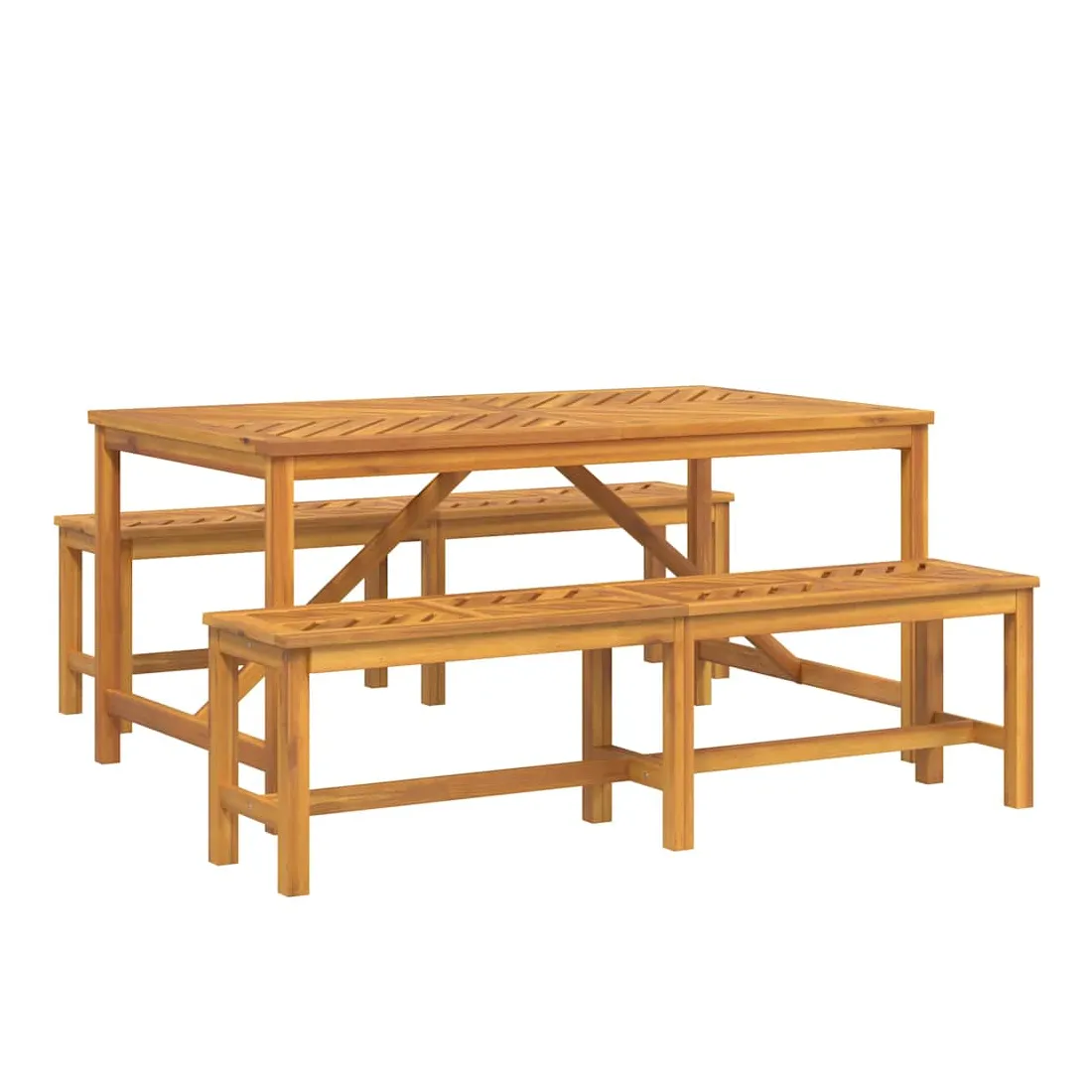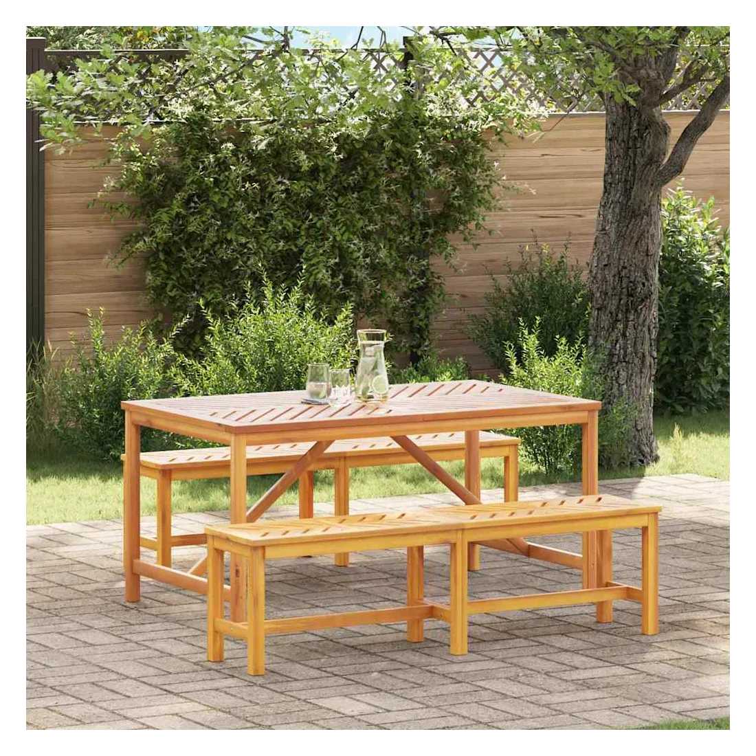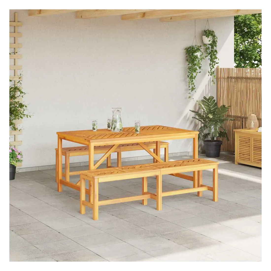 Ce set de repas de jardin moderne est un super choix pour manger dehors. Avec ses lignes simples et son style épuré, il crée une ambiance chic et classe dans votre jardin ou sur votre terrasse. Parfait pour rassembler la famille et les amis, il embellit tous les espaces extérieurs. Matériaux : Fabriqué en bois d'acacia massif, ce set a un look chaleureux et élégant grâce à son beau grain naturel. Ce bois est choisi pour sa solidité et son allure, s'intégrant parfaitement dans n'importe quel jardin. Composants inclus : Ce set est composé d'une table robuste et de chaises assorties, parfaites pour manger dehors. Chaque chaise a des pieds en acacia massif, avec accoudoirs et sièges, tous unis par une même couleur et matériau pour un look harmonieux. Caractéristiques : La forme rectangulaire classique s'adapte à toutes sortes d'aménagements extérieurs, offrant un grand espace pour partager des repas. La finition huilée protège contre l'humidité pour une longue durée de vie et peu d'entretien. Utilisations recommandées : Destiné uniquement à l'extérieur, ce set est idéal pour les jardins, terrasses et patios. Organisez-y des repas ou des brunchs décontractés grâce à sa capacité généreuse. Entretien et maintenance : Pour le garder en bon état, essuyez régulièrement avec un chiffon sec. Évitez de l'exposer aux intempéries quand vous ne l’utilisez pas. Une housse de protection par mauvais temps peut prolonger sa durée de vie.