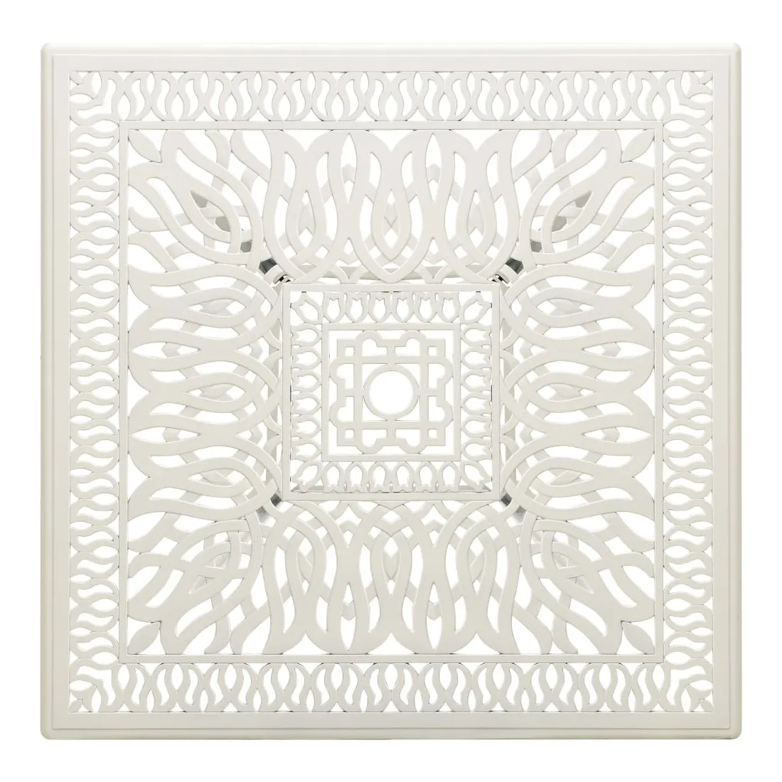 Profitez d’un agréable thé ou d’une tasse de café en plein air sur cette table de jardin avec votre famille et vos amis ! Cette table à thé est fabriquée en aluminium coulé ce qui la rend stable, solide et idéale pour une utilisation quotidienne à l'extérieur. Le dessus de table présente de beaux motifs et permet de placer des boissons, de la nourriture et d’autres essentiels. Les quatre pieds séparés vous apportent une expérience utilisateur fiable pour sa stabilité. De plus, cette table de patio a un trou de parasol qui peut parfaitement accueillir votre parasol pour vous protéger du soleil ou de la pluie.