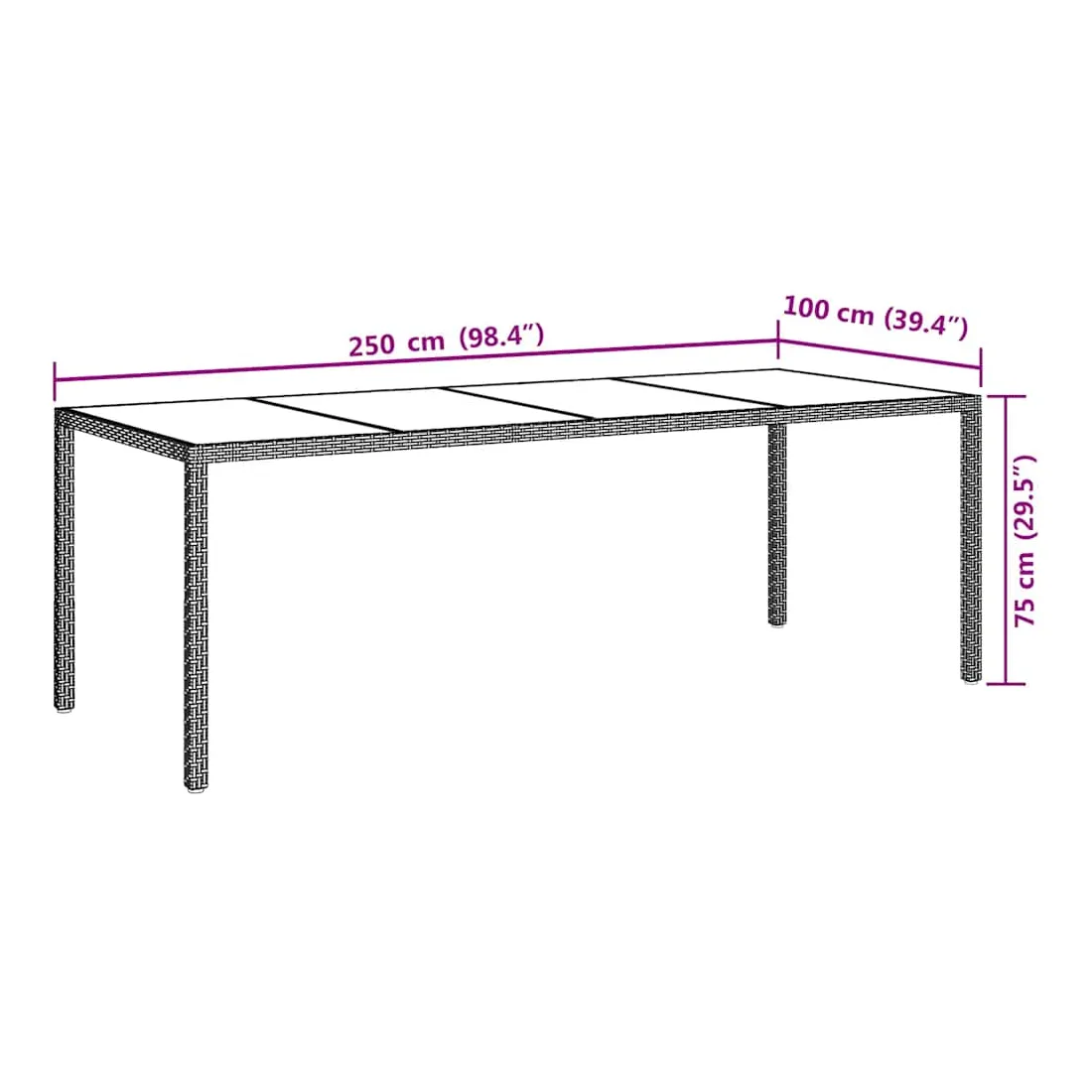 - Dimensions : 250 x 100 x 75 cm (L x l x H)