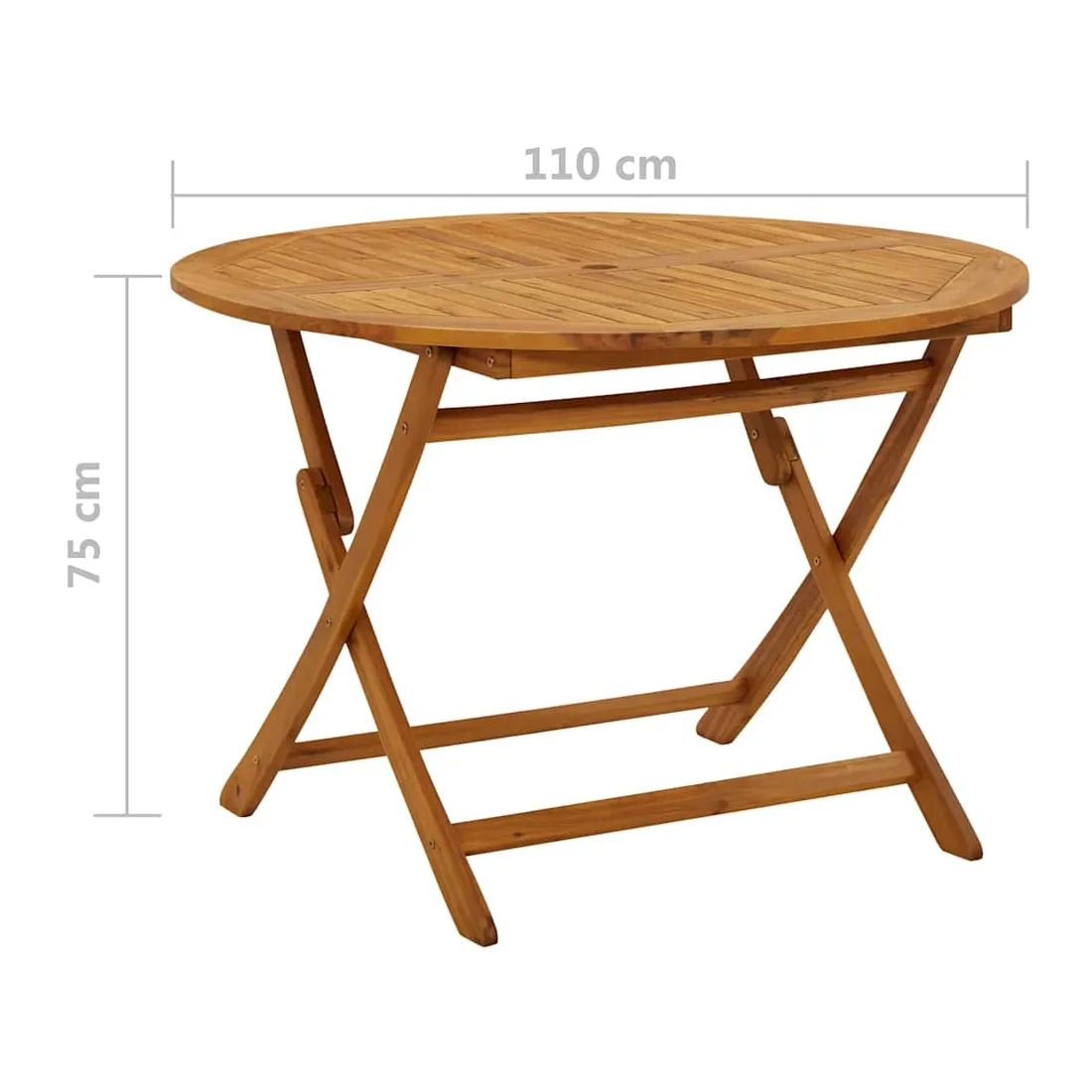Vous cherchez quelque chose de plus raffiné et accrocheur pour votre espace extérieur ? Cette table en bois est un choix optimal pour vous ! Cette table est fabriquée en bois d'acacia massif avec une finition à l'huile naturelle, ce qui la rend résistante aux intempéries et durable. Chaque étape du processus est réalisée avec le plus grand soin, qu'il s'agisse de polissage ou de laquage. Le dessus de table robuste avec la conception à lattes est facile à nettoyer. Lorsqu'elle n’est pas utilisée, vous pouvez la replier facilement. Remarque : afin de prolonger la durée de vie des meubles d'extérieur, nous vous recommandons de les protéger avec une housse imperméable.