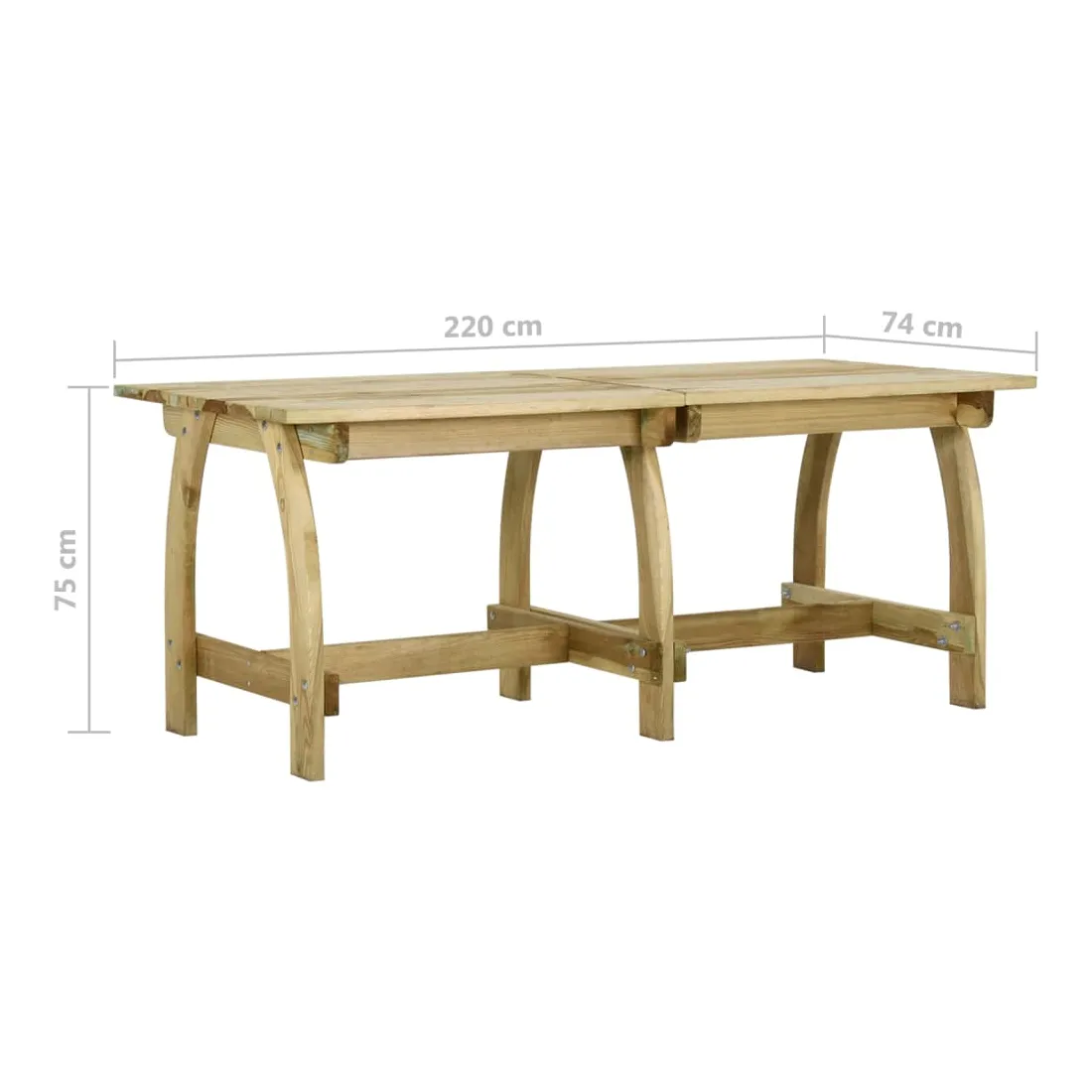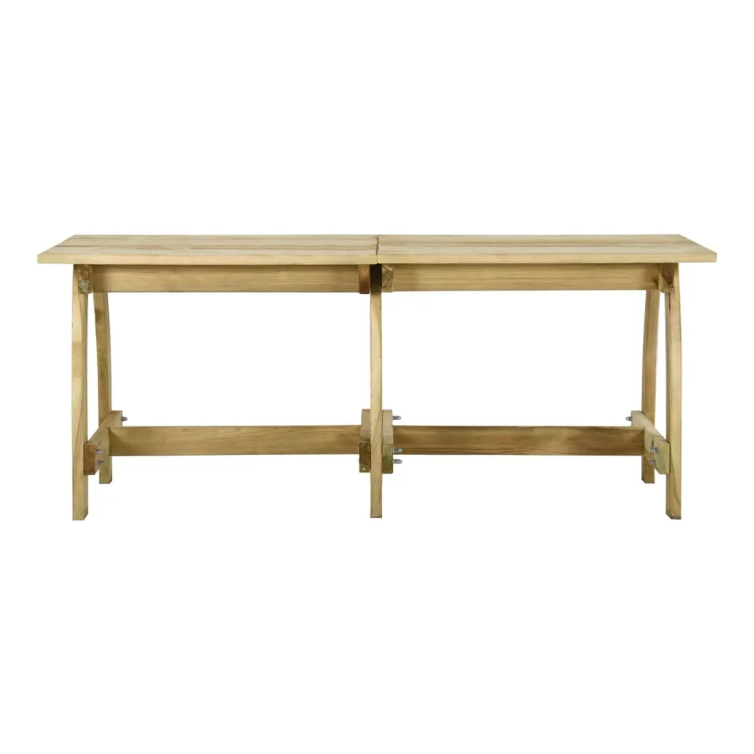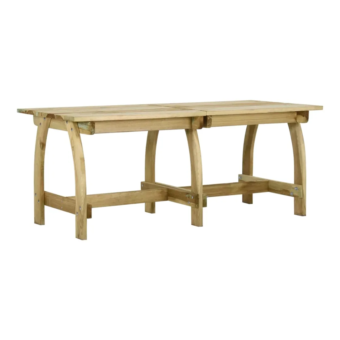Avec un design élégant mais pratique, cette table de jardin en bois sublimera votre espace de vie extérieur ! Fabriqué en bois de pin imprégné de vert, cette table d'extérieur en bois est très solide, durable et résistant à la corrosion. Cette table de patio est un choix idéal pour les moments de détente dans un jardin de maison de campagne romantique ou près d'un étang de jardin idyllique pour dîner en famille et entre amis. Veuillez noter que le bois est un produit naturel et peut présenter des imperfections. Remarque : afin de prolonger la durée de vie des meubles d'extérieur, nous vous recommandons de les protéger avec une housse imperméable.