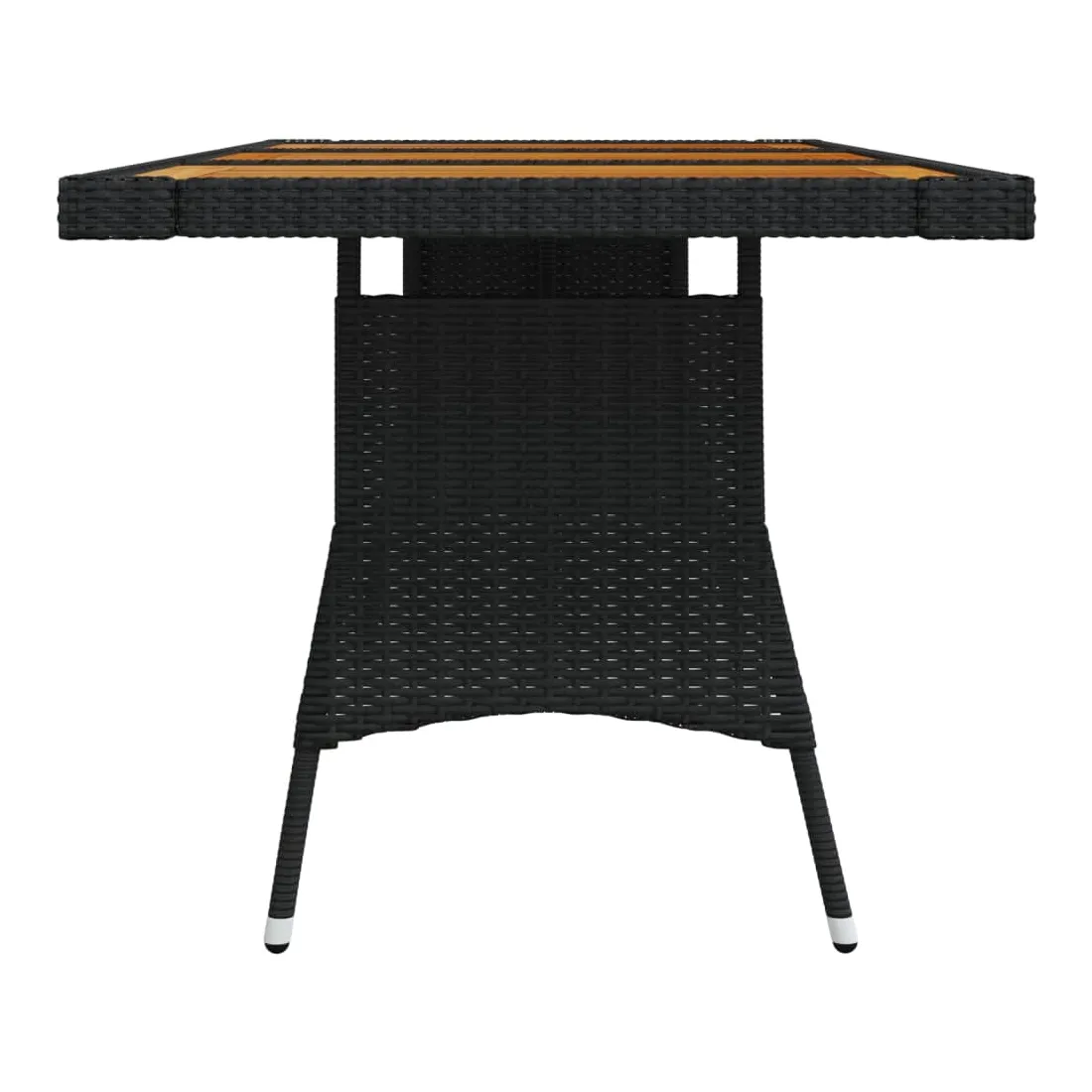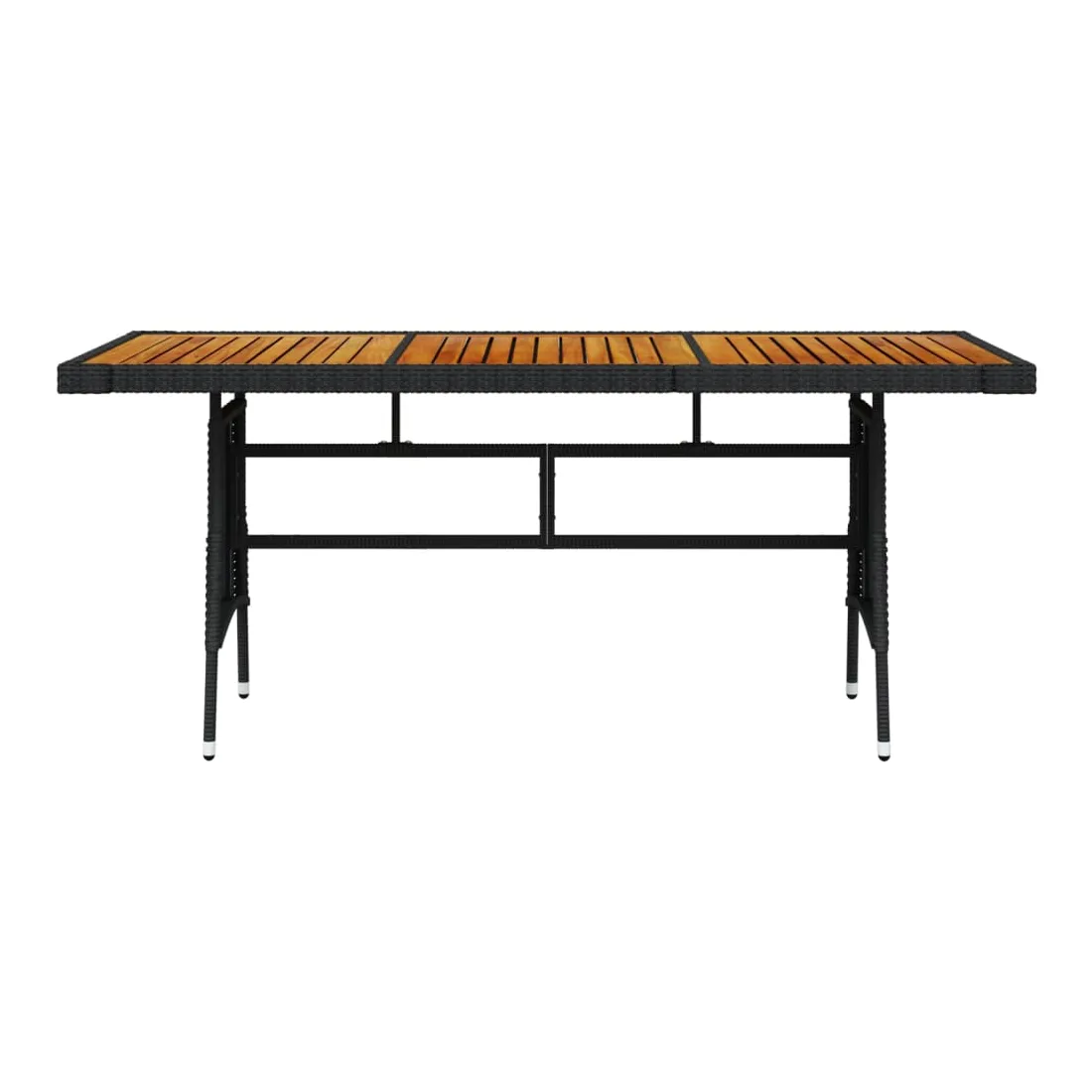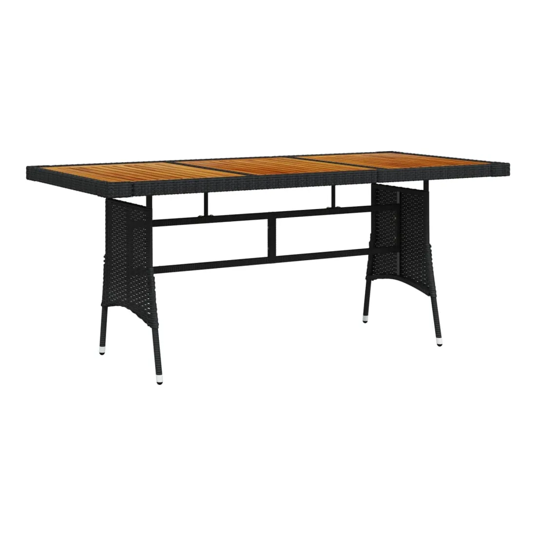 Renouvelez votre coin repas avec cette table de jardin ! Elle ajoute un charme élégant et rustique à votre espace de vie extérieur. Vous pouvez profiter du repas sous les étoiles ou au soleil avec cette table à manger. La table de patio est dotée d'un dessus en bois d'acacia massif et d'un cadre en acier enduit de poudre, ce qui la rend robuste et durable. La table d'extérieur est recouverte de résine tressée, ce qui la rend résistante aux intempéries. Grâce à la construction légère en résine tressée, vous pouvez la déplacer facilement. Remarque : afin de prolonger la durée de vie des meubles d'extérieur, nous vous recommandons de les protéger avec une housse imperméable.