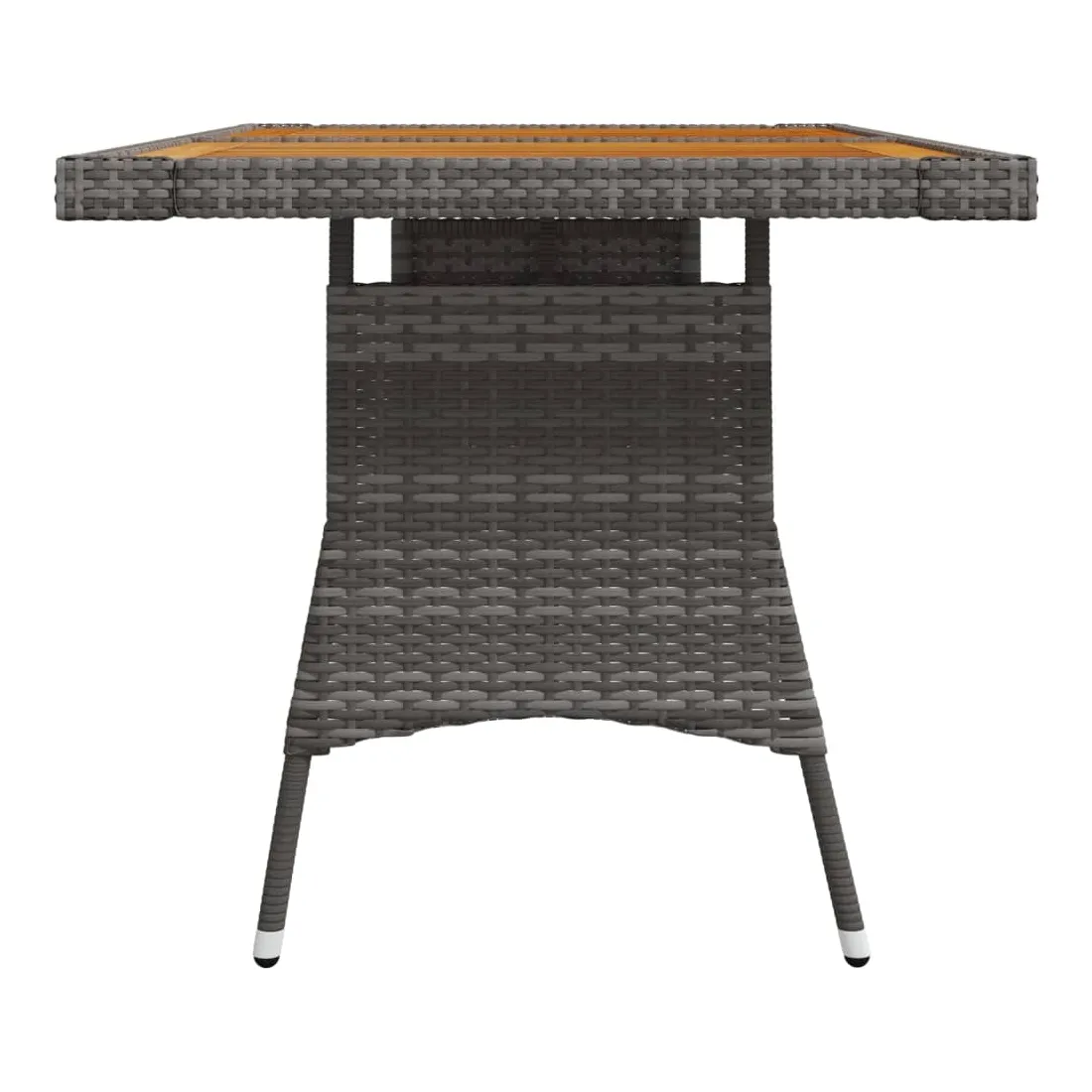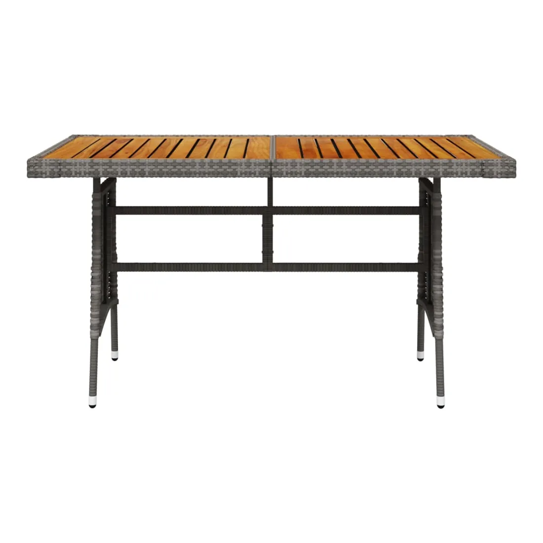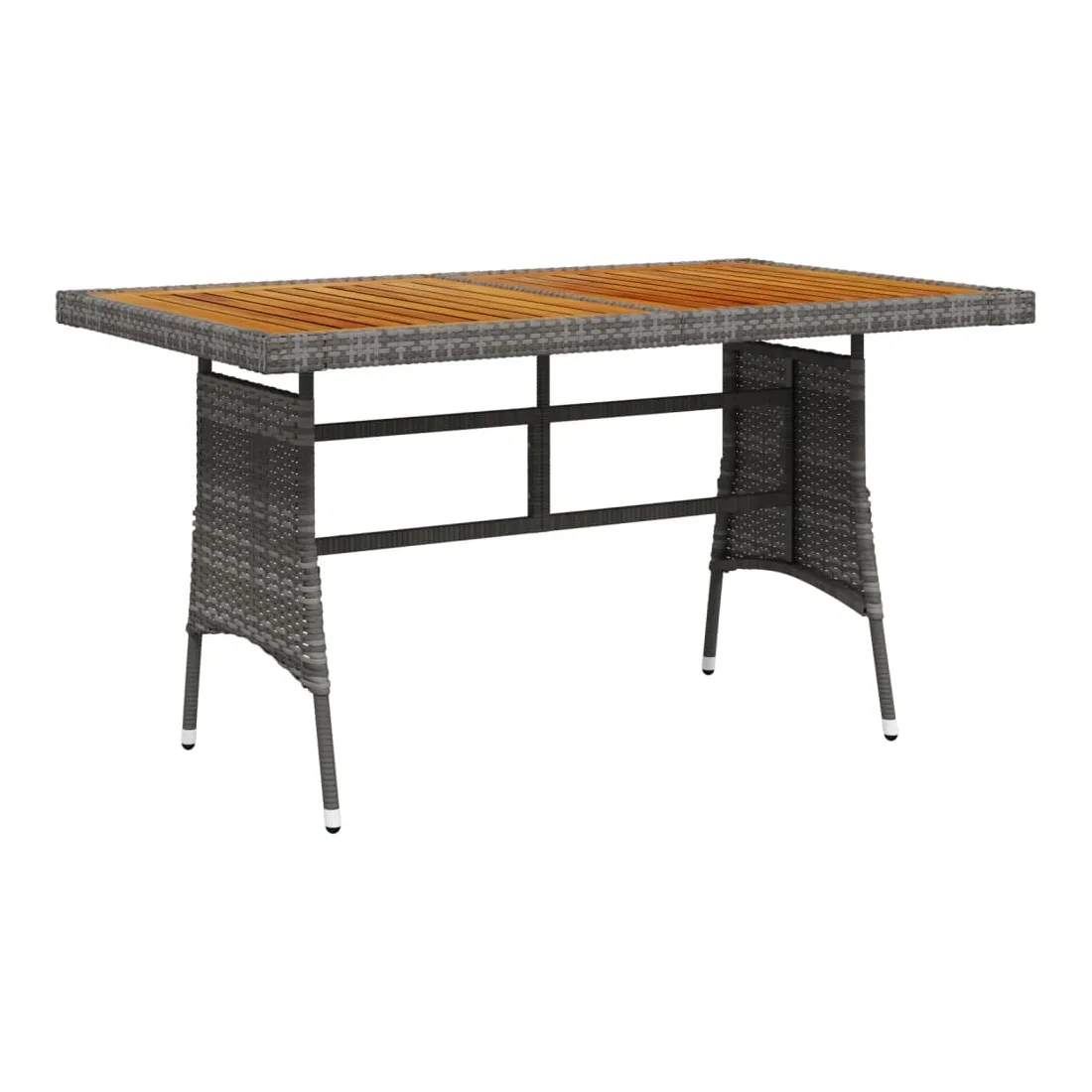Renouvelez votre coin repas avec cette table de jardin ! Elle ajoute un charme élégant et rustique à votre espace de vie extérieur. Vous pouvez profiter du repas sous les étoiles ou au soleil avec cette table à manger. La table de patio est dotée d'un dessus en bois d'acacia massif et d'un cadre en acier enduit de poudre, ce qui la rend robuste et durable. La table d'extérieur est recouverte de résine tressée, ce qui la rend résistante aux intempéries. Grâce à la construction légère en résine tressée, vous pouvez la déplacer facilement. Remarque : afin de prolonger la durée de vie des meubles d'extérieur, nous vous recommandons de les protéger avec une housse imperméable.