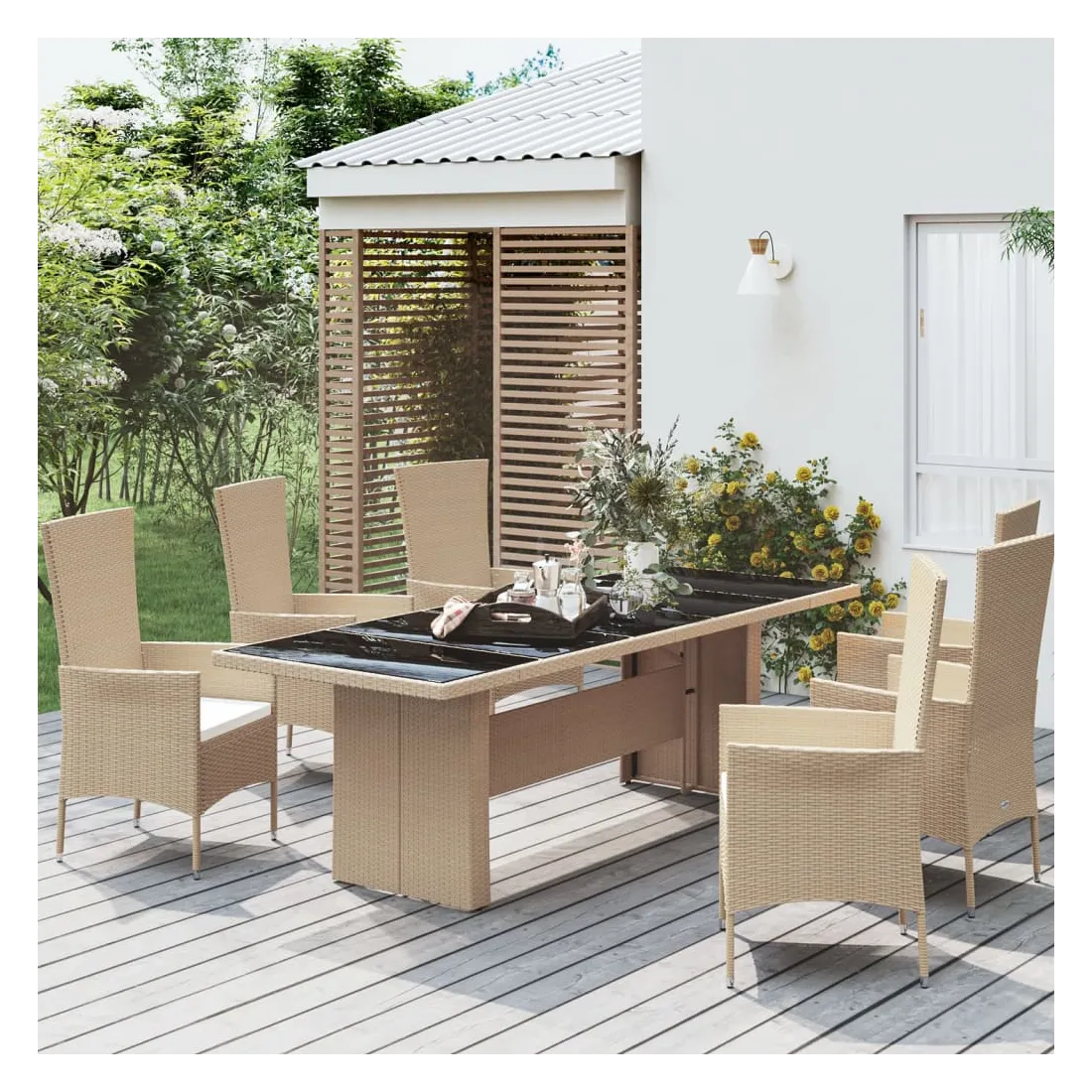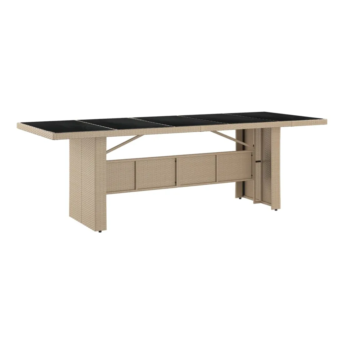 Cette table de jardin avec dessus en verre, conçue avec des lignes épurées et simples, est un excellent choix pour votre jardin, terrasse et tout autre espace extérieur. Matériau durable : la résine tressée, également connue sous le nom de rotin poly, résiste aux intempéries et est facile à nettoyer. Elle reste belle à l'extérieur pendant une longue période. Elle est plus économique que d'autres matériaux, tout en offrant une excellente qualité, une commodité et un aspect esthétique.Cadre stable : l'acier est un matériau exceptionnellement dur et résistant. Il offre robustesse et stabilité pour la table de jardin.Dessus de table pratique : le dessus de table en verre trempé est parfait pour placer ou afficher vos divers objets essentiels. De plus, il est facile à nettoyer et à entretenir.Conception résistante à l'eau : fabriquée dans un matériau résistant à l'eau, cette table peut résister à l'humidité et à la pluie. Bon à savoir :Pour faciliter au maximum le montage, chaque produit est livré avec des instructions. Remarque :Pour que vos meubles d'extérieur restent beaux, nous vous recommandons de les protéger avec une housse imperméable.