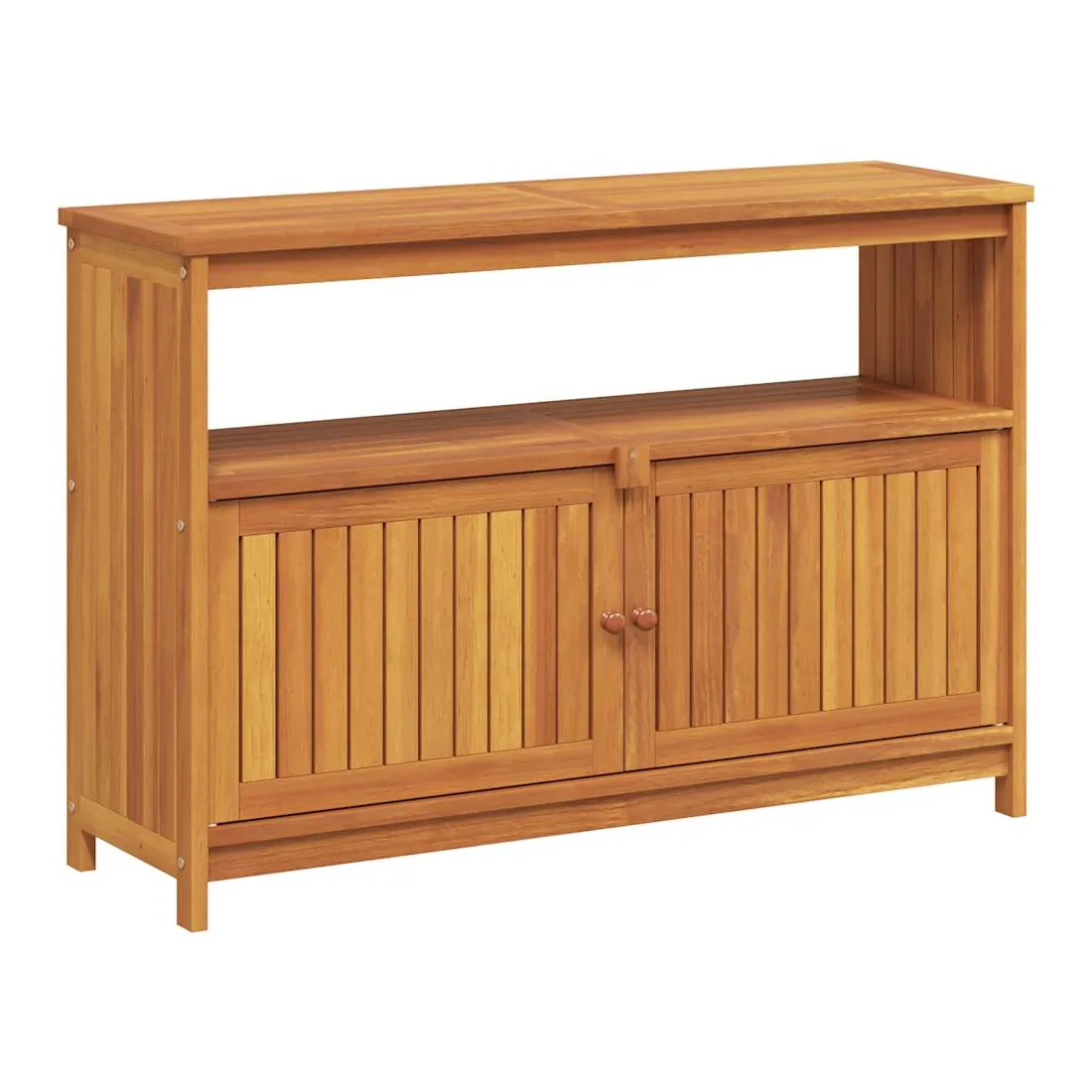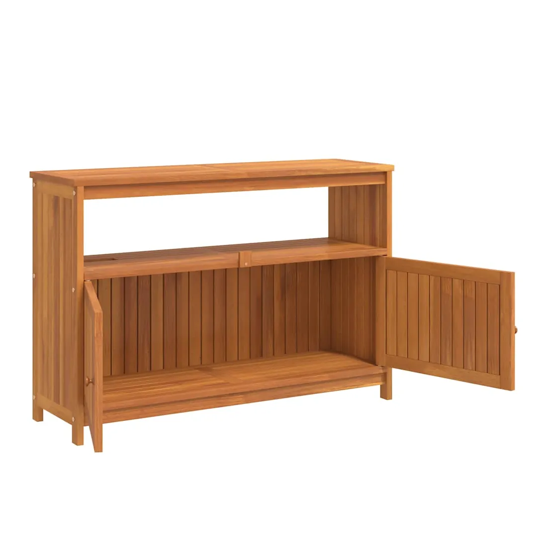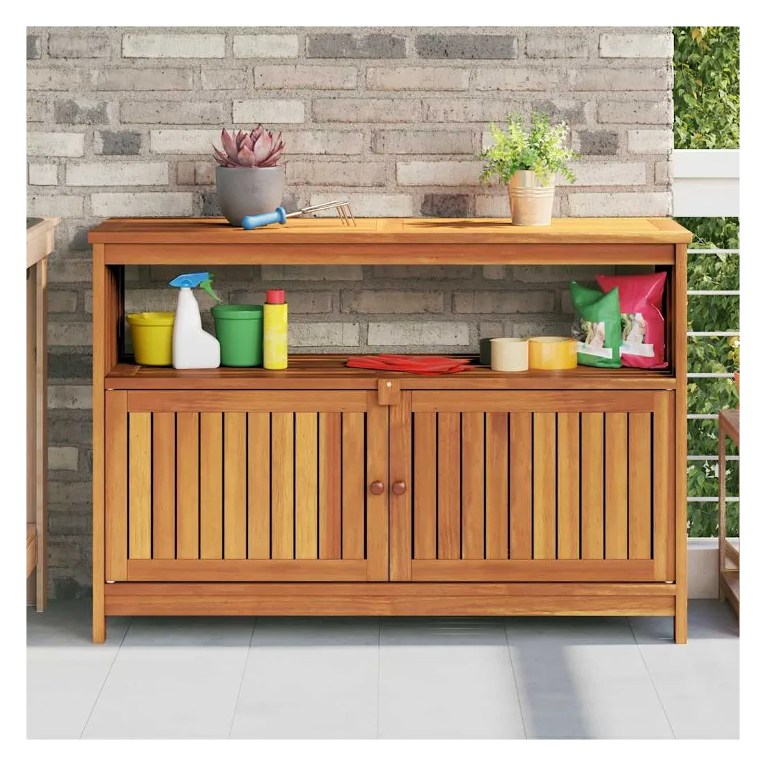 Cette table console de jardin en bois est conçue pour ajouter un style rustique unique à votre espace intérieur et extérieur. Matériau durable : le bois d'acacia massif est un matériau naturel magnifique. Le bois d'acacia un bois dur tropical, qui est dense, robuste et durable.Cadre stable : le cadre en bois de la table console assure robustesse et stabilité.Grand espace de rangement : la table d'extérieur est dotée d'une étagère et d'un compartiment avec des portes, offrant un grand espace de rangement pour garder vos différents articles essentiels quotidiens bien organisés et facilement accessibles.Portes pratiques : protégez vos objets essentiels de la poussière en les cachant derrière les portes de la table de jardin. Attention :Pour éviter qu'il ne soit renversé, ce produit doit être utilisé avec le dispositif de fixation au mur fourni. Bon à savoir :Pour que vos meubles d'extérieur restent beaux, nous vous recommandons de les protéger avec une housse imperméable.