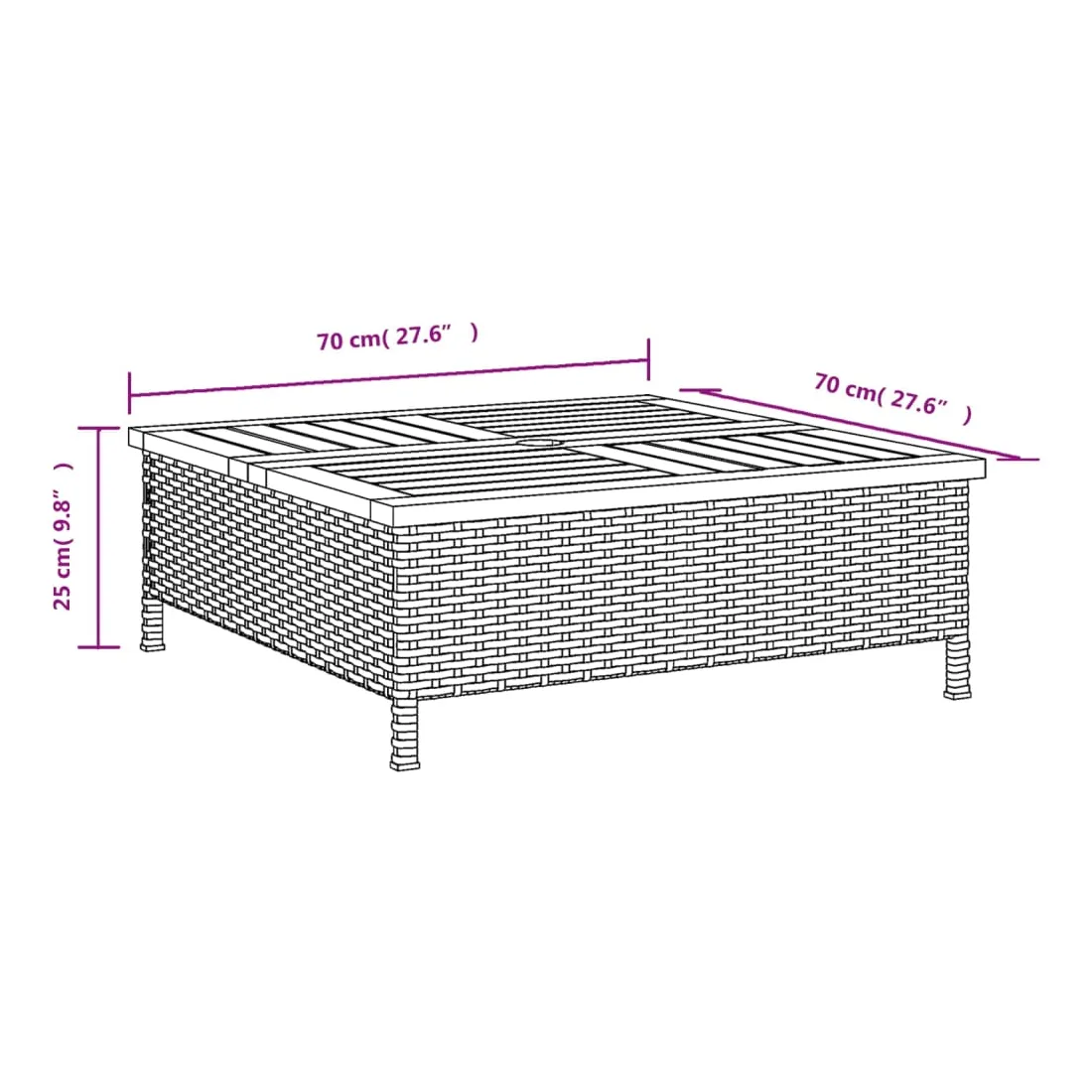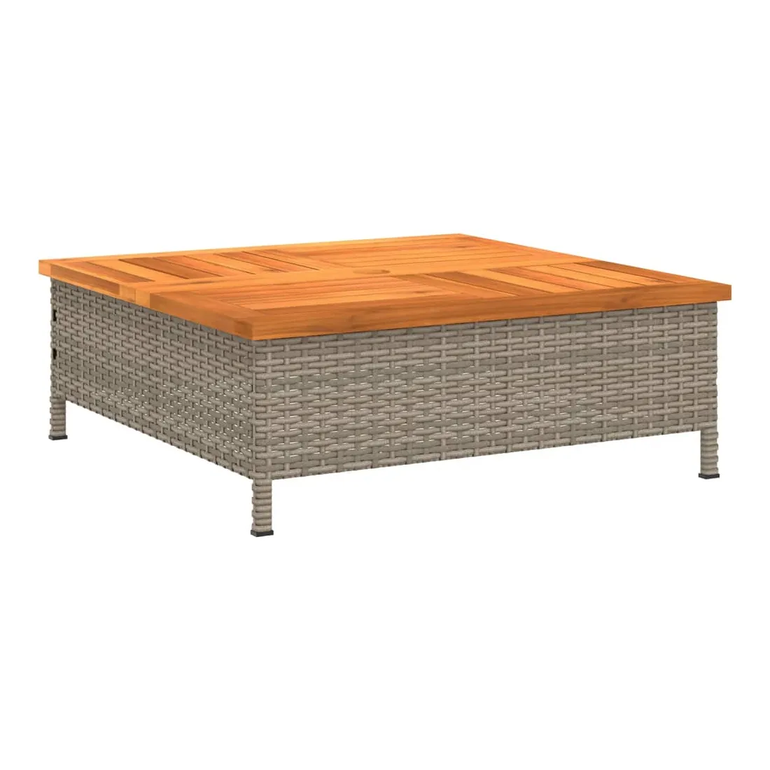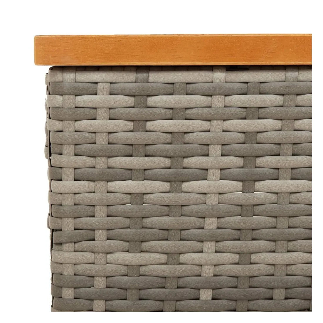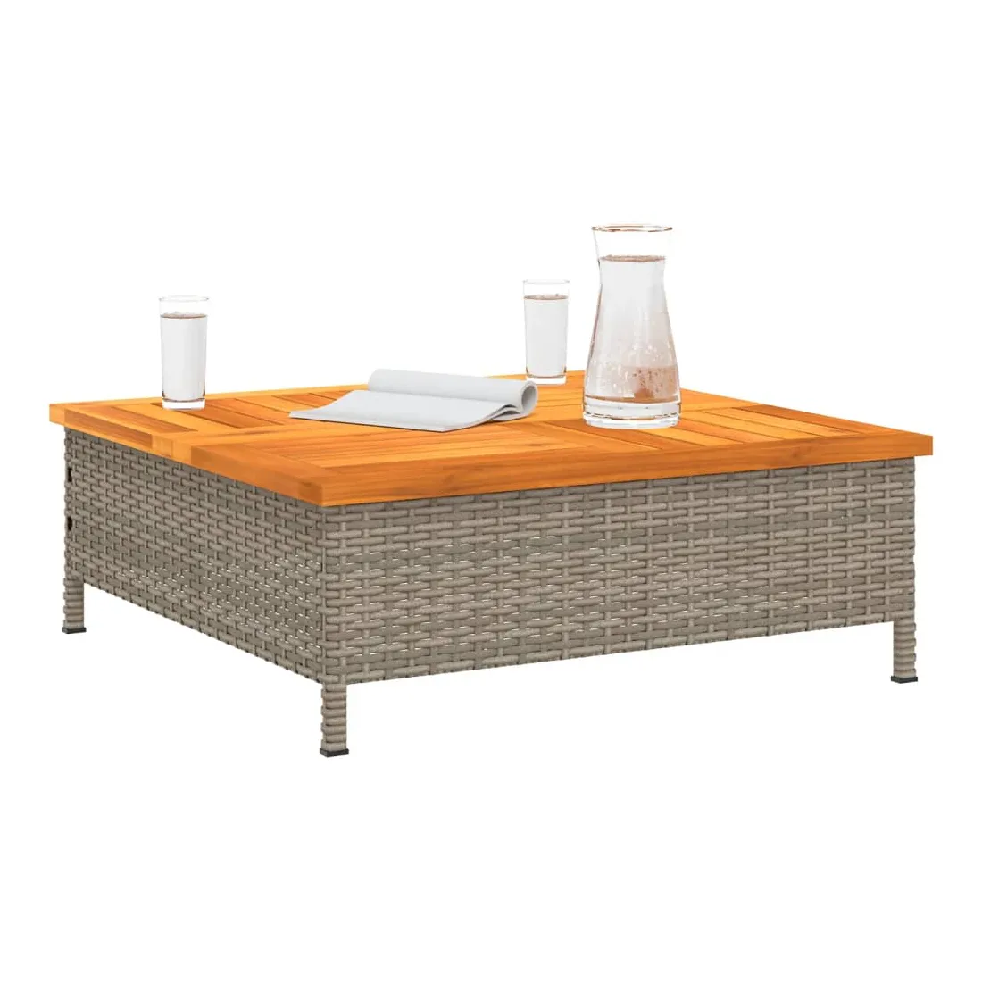 Rassemblez-vous autour de cette table de jardin pour savourer une tasse de café ou discuter avec votre famille et vos amis dans le jardin, dans la cour ou sur la terrasse ! Matériau durable : la résine tressée, également connue sous le nom de poly rotin, est un matériau synthétique solide et nécessitant peu d'entretien qui ressemble au rotin naturel. Il est léger, facile à nettoyer et couramment utilisé pour les meubles d'extérieur en raison de sa durabilité et de ses propriétés de résistance aux intempéries.Trou pour parasol pratique : le dessus de table est doté d'un trou pour parasol, ce qui vous permet de fixer facilement un parasol pour créer un coin ombragé.Dessus stable et facile à nettoyer : cette table de jardin a un dessus en bois d'acacia robuste, durable et facile à nettoyer avec un chiffon humide.Cadre robuste et stable : le cadre en acier enduit de poudre assure la solidité et la stabilité du meuble de jardin pour une utilisation quotidienne à l'extérieur. Bon à savoir :Pour que vos meubles d'extérieur restent beaux, nous vous recommandons de les protéger avec une housse imperméable.