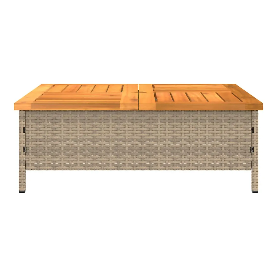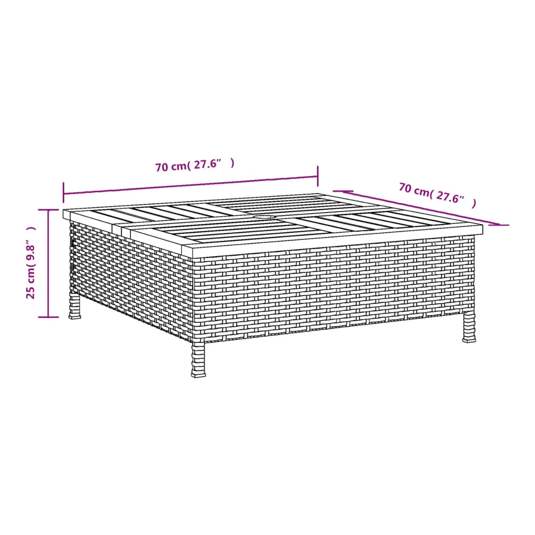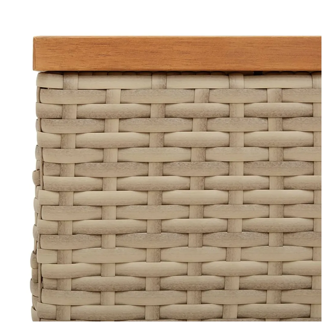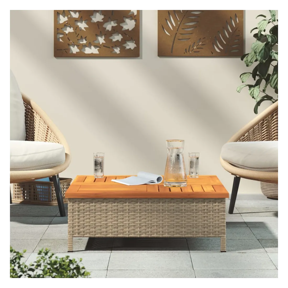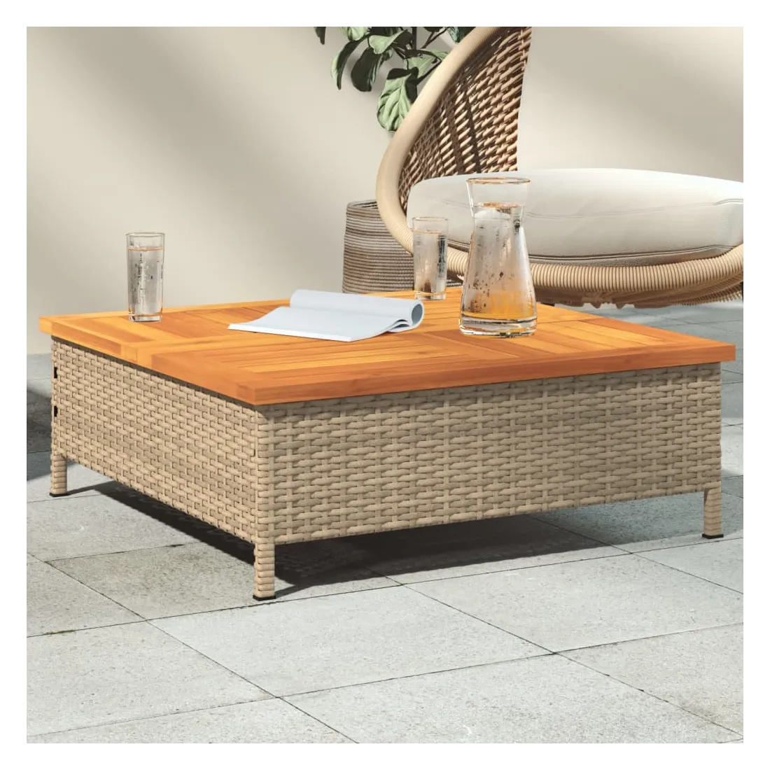 Rassemblez-vous autour de cette table de jardin pour savourer une tasse de café ou discuter avec votre famille et vos amis dans le jardin, dans la cour ou sur la terrasse ! Matériau durable : la résine tressée, également connue sous le nom de poly rotin, est un matériau synthétique solide et nécessitant peu d'entretien qui ressemble au rotin naturel. Il est léger, facile à nettoyer et couramment utilisé pour les meubles d'extérieur en raison de sa durabilité et de ses propriétés de résistance aux intempéries.Trou pour parasol pratique : le dessus de table est doté d'un trou pour parasol, ce qui vous permet de fixer facilement un parasol pour créer un coin ombragé.Dessus stable et facile à nettoyer : cette table de jardin a un dessus en bois d'acacia robuste, durable et facile à nettoyer avec un chiffon humide.Cadre robuste et stable : le cadre en acier enduit de poudre assure la solidité et la stabilité du meuble de jardin pour une utilisation quotidienne à l'extérieur. Bon à savoir :Pour que vos meubles d'extérieur restent beaux, nous vous recommandons de les protéger avec une housse imperméable.