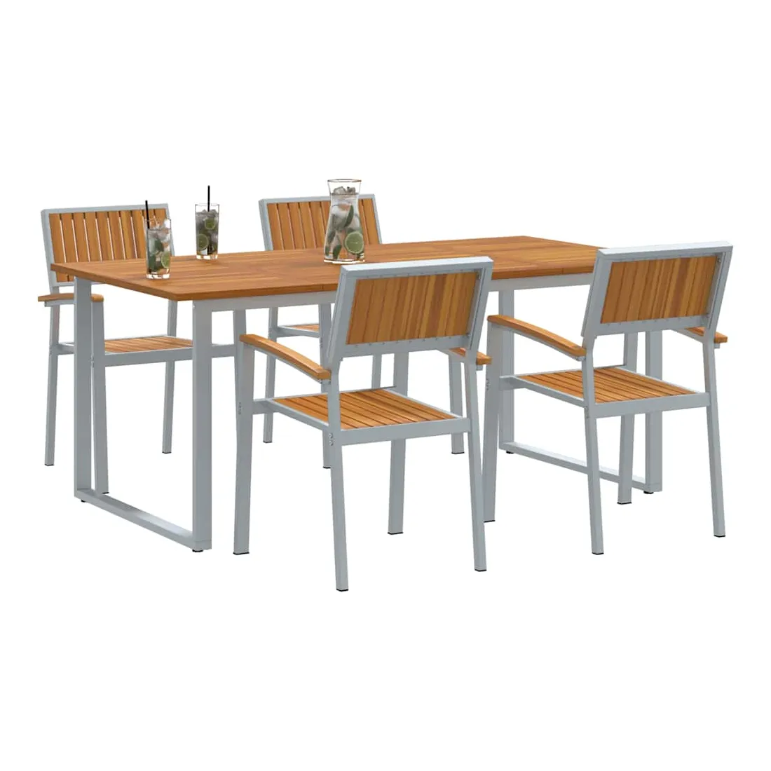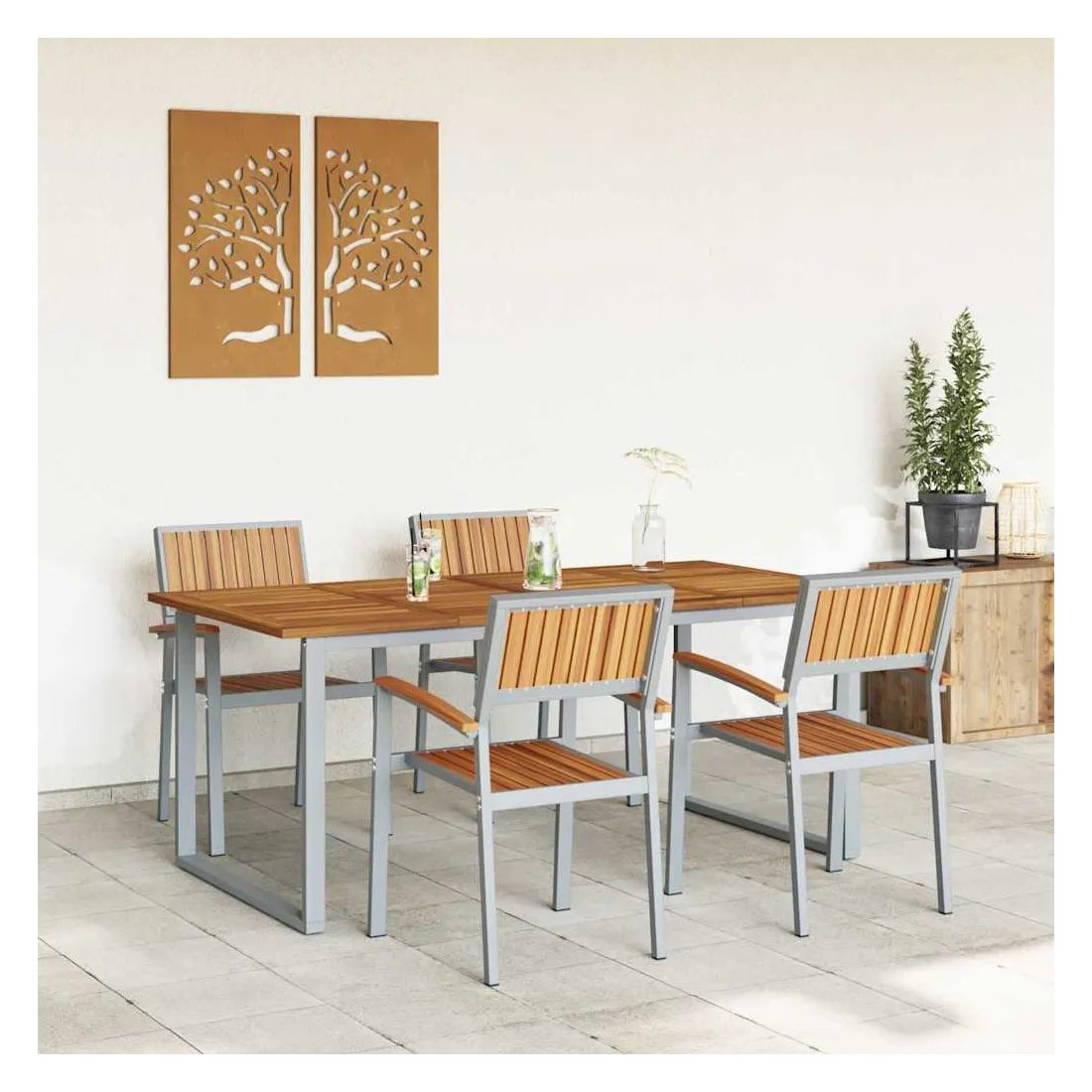 Cet ensemble moderne de salle à manger de jardin est fait pour les espaces extérieurs actuels, offrant une solution à la fois stylée et pratique pour vos repas en plein air. Avec ses lignes épurées et sa simplicité, il se fond facilement dans presque tous les cadres extérieurs, vous permettant de profiter de bons repas et de moments entre amis. La finition en bois d'acacia et la forme géométrique ajoutent un côté naturel et chic qui embellit votre ambiance extérieure. Matériaux de qualité : Cet ensemble est fait de bois d'acacia massif, connu pour sa belle texture et son côté naturel. Le cadre en acier robuste assure une résistance aux intempéries, garantissant durabilité et allure sous le soleil comme sous la pluie, idéal pour les repas en extérieur toute l'année. Composants inclus : Comprend des accoudoirs et dossiers en bois d'acacia solide, plus une grande table rectangulaire. Le bois d'acacia apporte confort et longévité, parfait pour partager des repas en famille et des soirées en extérieur. Style et fonction : Le design moderne avec ses lignes épurées et peu de fioritures donne une impression accueillante mais discrète. Il s'adapte aisément à différents styles de déco, apportant une touche moderne à vos jardins ou terrasses. Utilisations recommandées : Idéal pour jardins et terrasses, cet ensemble est parfait pour toutes vos activités extérieures, des petits rassemblements aux grandes fêtes. Sa taille généreuse permet d’accueillir plusieurs invités avec de bons plats. Entretien facile : Pour garder votre ensemble au top, un petit coup de chiffon sec pour la poussière suffit. Sa résistance à l'usure permet un entretien simple et un plaisir qui dure.
