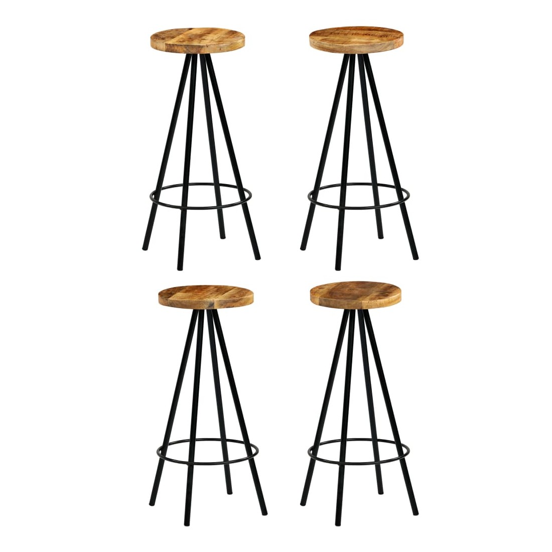 Cet ensemble de tabourets de bar rustique a un style industriel et sera un excellent supplément à la décoration de votre cuisine ou salle à manger ! Avec des sièges en bois de manguier massif et des cadres en acier robuste, l'ensemble de tabourets de bar est robuste et durable. Les repose-pieds contribuent au confort d'assise de l'ensemble ainsi qu'à son aspect industriel. Chaque étape du processus de construction est réalisée avec le plus grand soin, que ce soit le polissage, la peinture ou le laquage. L'assemblage est facile. La livraison inclut 4 chaises de bar. Remarque importante : la couleur et les grains de bois peuvent varier d'une pièce à l'autre, ce qui rend chaque article unique et légèrement différent l'un de l'autre ; la livraison est aléatoire.