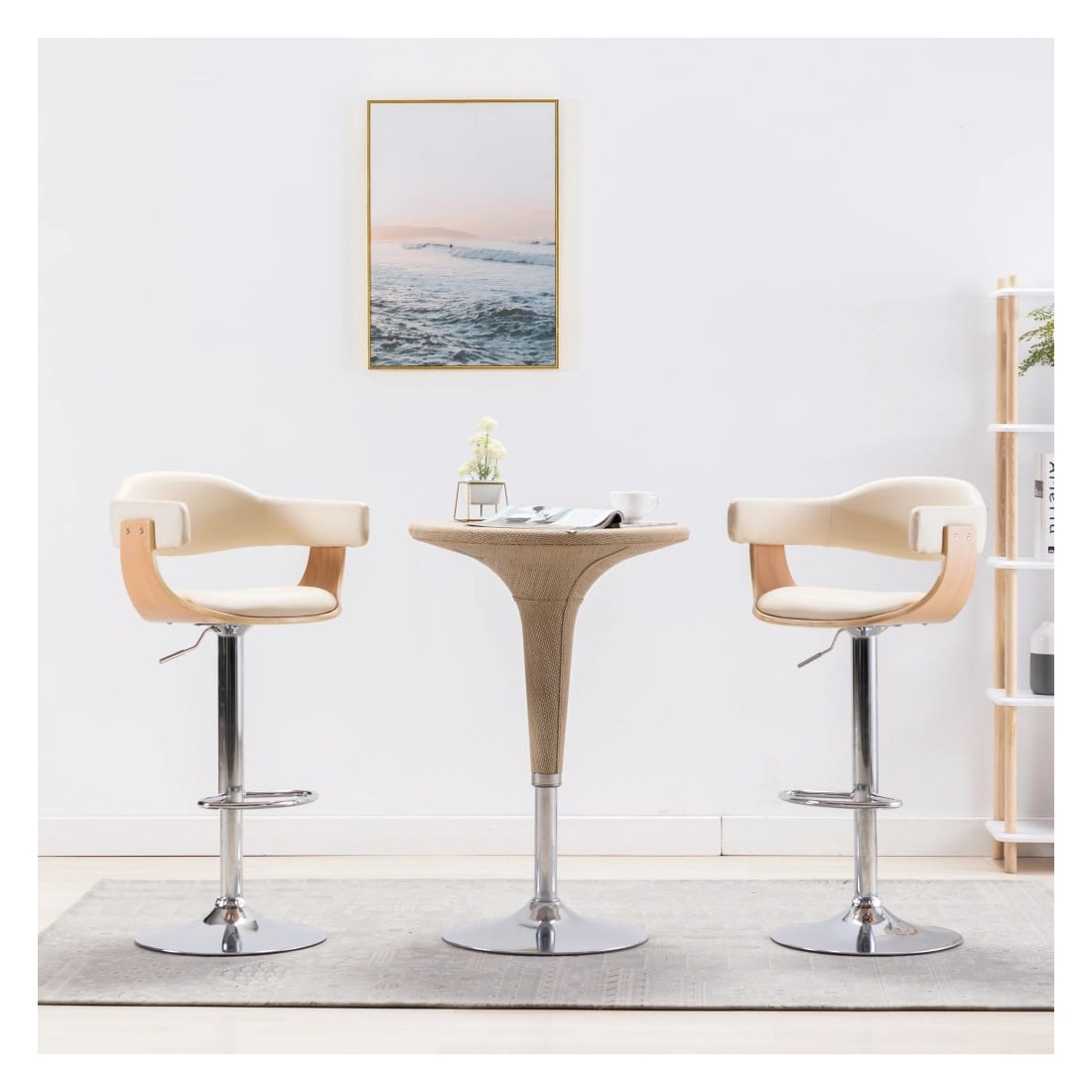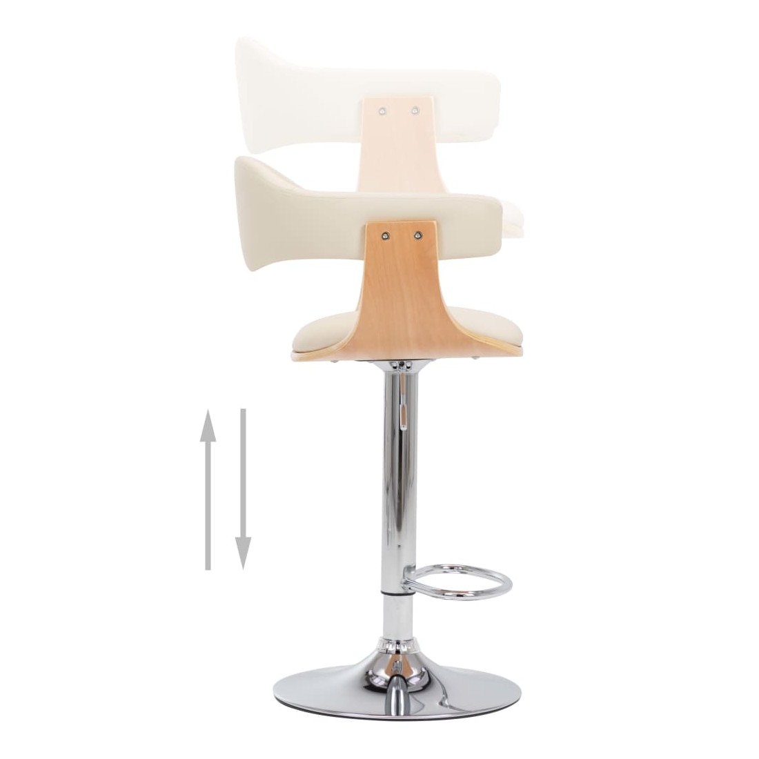 Tabourets de bar lot de 2 crème bois courbé et similicuir