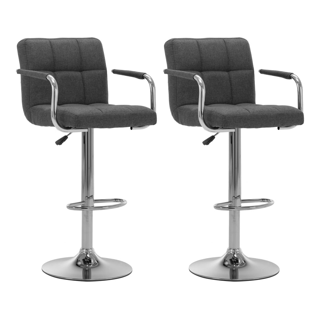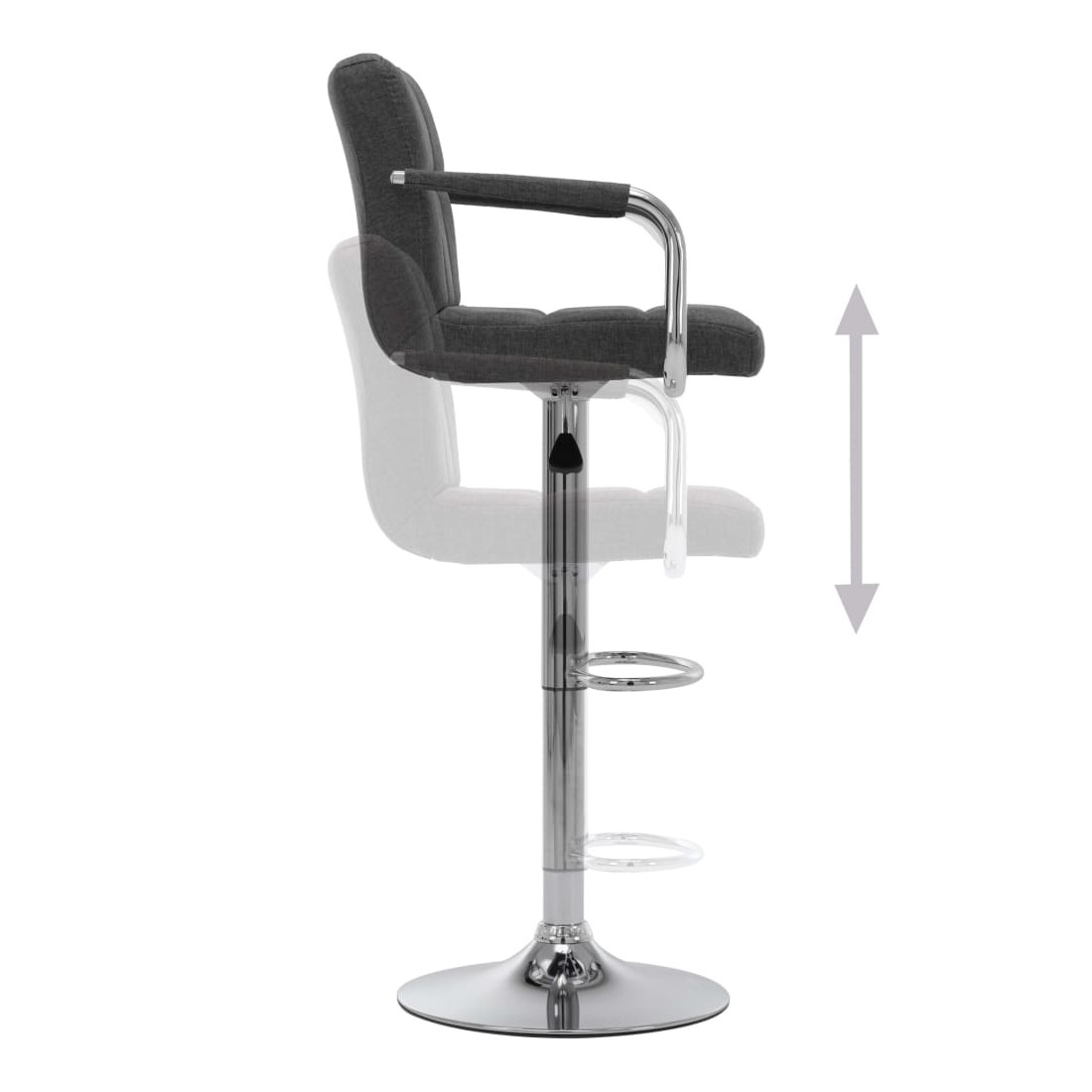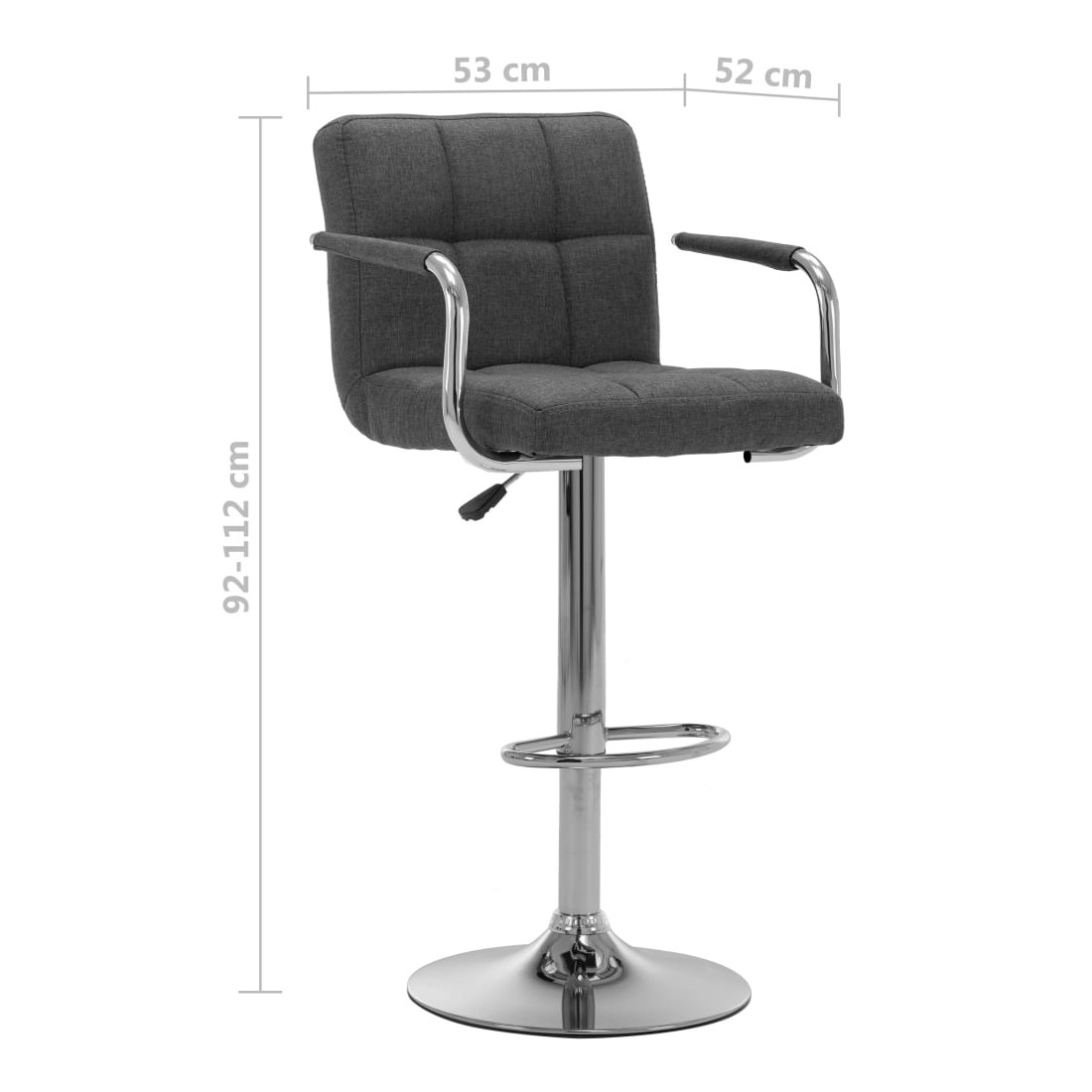 Notre ensemble de chaises de bar en tissu est idéal pour savourer un verre de vin au bar, manger un morceau au comptoir ou pour l'utiliser comme siège supplémentaire lorsque vous avez des invités. Son design épuré et contemporain complétera toute décoration intérieure. L'ensemble de chaises de bar a un cadre en acier chromé, ce qui la rend considérablement stable et durable. Les sièges, dossiers et repose-pieds rembourrés de mousse douce font de la chaise de bar l'endroit idéal pour vous détendre. Grâce au vérin à gaz, la hauteur des chaises de bar est réglable. Elle peut également pivoter sur 360 degrés pour une plus grande flexibilité. Les chaises sont faciles à assembler. La livraison comprend 2 chaises de bar.