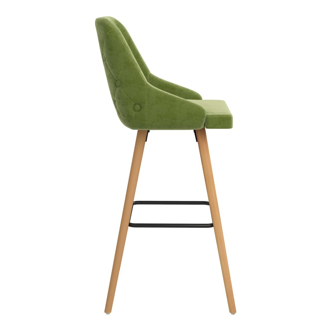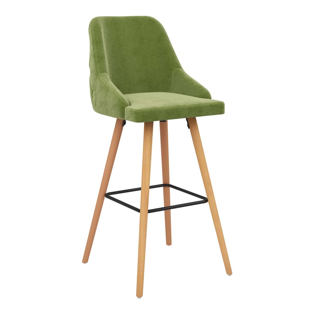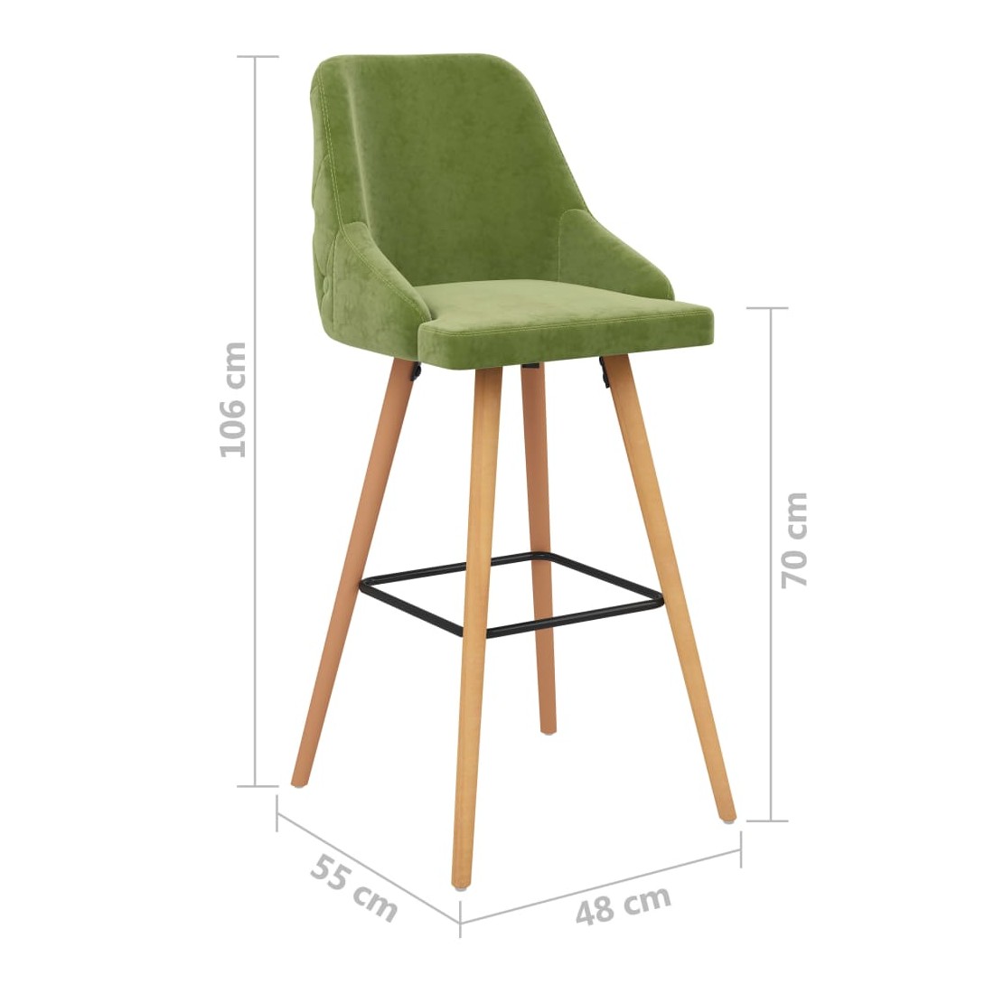 Notre ensemble de 2 chaises de bar, avec son style élégant et moderne, convient à une variété d'espaces, tels que la maison, le bureau, le bar, le café, etc. L'assise et le dossier, revêtus d'une tapisserie en velours doux au toucher, vous offriront une assise confortable. Avec ses pieds en bois de hêtre massif et son anneau noir enduit de poudre, cette chaise est stable et durable. Le repose-pied intégré ajoute également un soutien supplémentaire pendant votre temps assis.