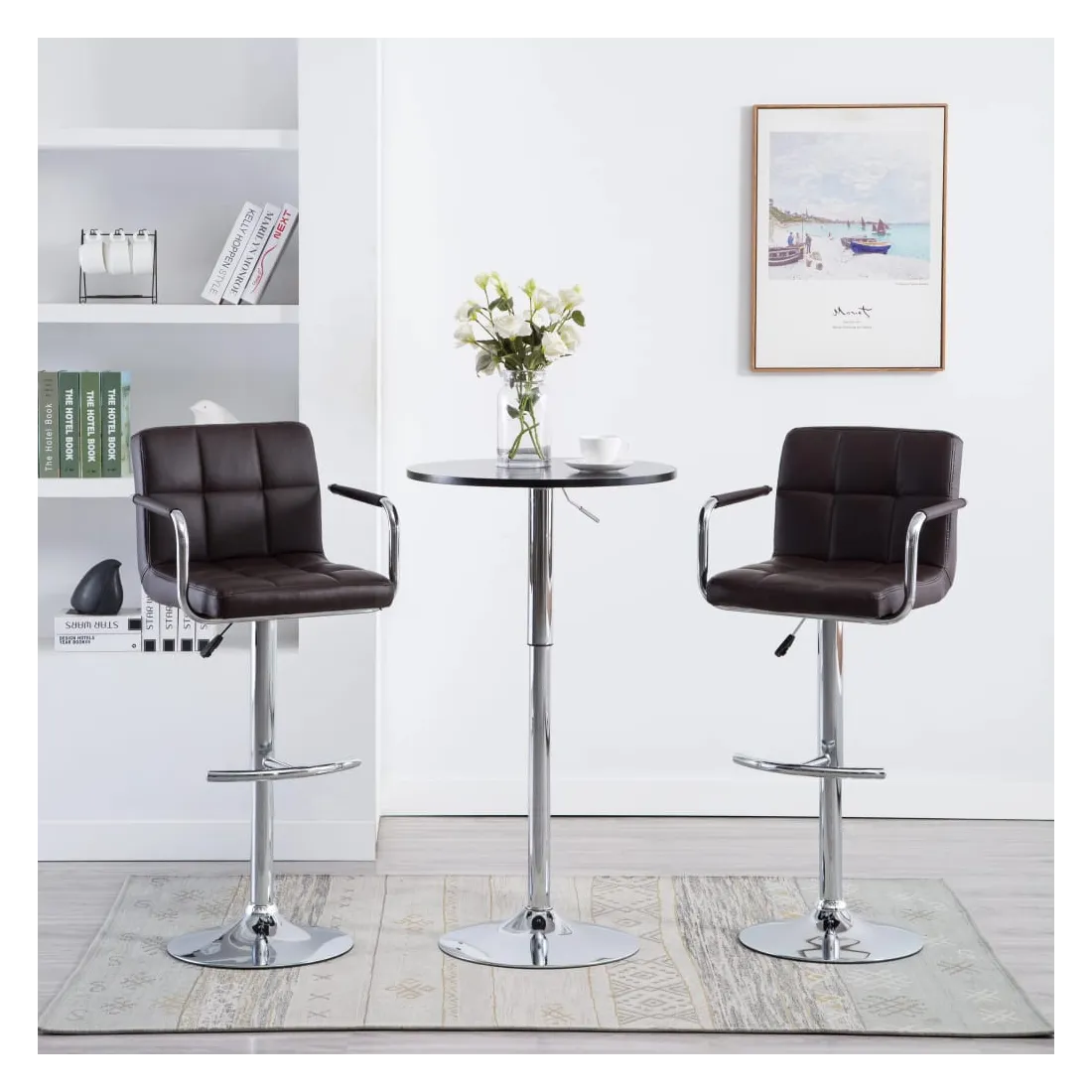 Cet ensemble de tabourets de bar élégant et moderne est conçu pour convenir à une variété d’espaces, tels que la maison, le bureau, le bar, le café et ainsi de suite. Le siège et le dossier, rembourrés en similicuir de qualité, offrent une expérience d’assise confortable. De plus, le cadre en acier chromé solide rend les tabourets très robustes et durables. Le mécanisme pratique de levage à gaz vous permet de régler la hauteur de siège selon votre convenance. De plus, le repose-pied et l’accoudoir intégrés offrent un soutien et un confort supplémentaires dans votre temps d'assise.