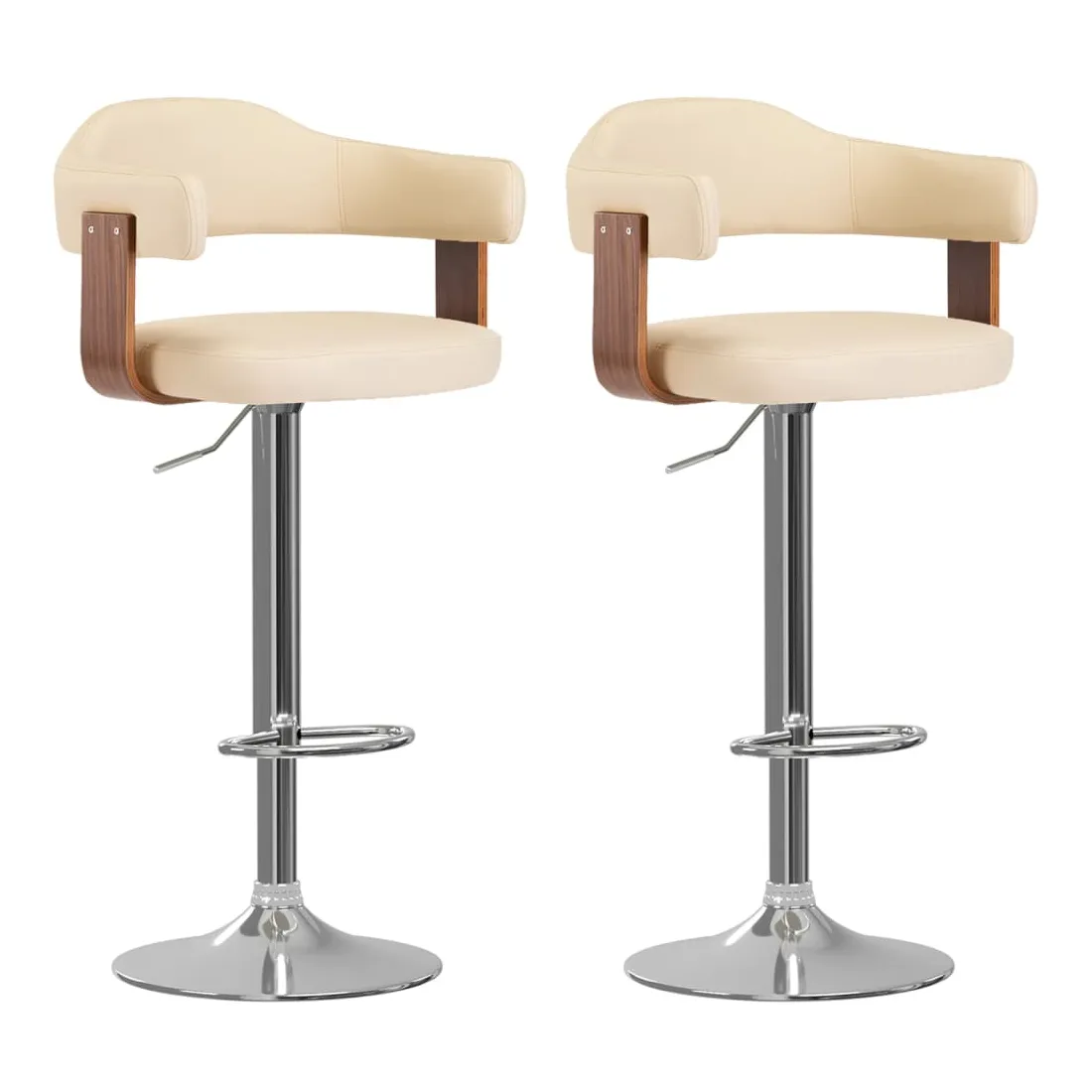 Avec un design soigné mais intemporel, cet ensemble de tabourets de bar vous apportera sûrement le plus grand confort d'assise. Ces chaises de bar sont recouvertes de similicuir et confortablement rembourrées. Le cadre en bois courbé et en fer offre une robustesse et une stabilité élevées, et ajoute également à la beauté et au style uniques. Le repose-pied intégré et la conception ergonomique offrent une expérience d'assise confortable. Grâce au mécanisme de levage à gaz, cet ensemble de deux tabourets de bar pivotants peut être réglé en hauteur et constitue un complément parfait à tout bar ou salle à manger fonctionnels. Ils peuvent également pivoter à 360 degrés pour une grande flexibilité.