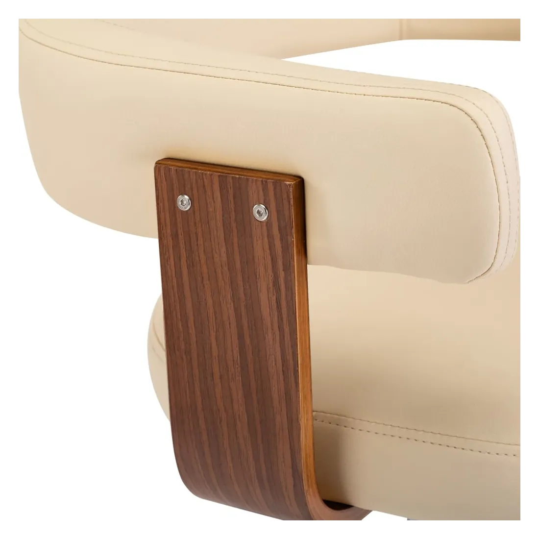 - Matériau du cadre : noyer courbé, fer chromé, similicuir (55 % polyuréthane, 45 % coton)