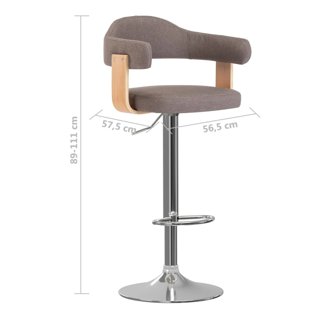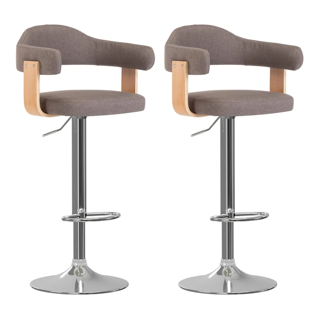 Tabourets de bar lot de 2 taupe bois courbé et tissu