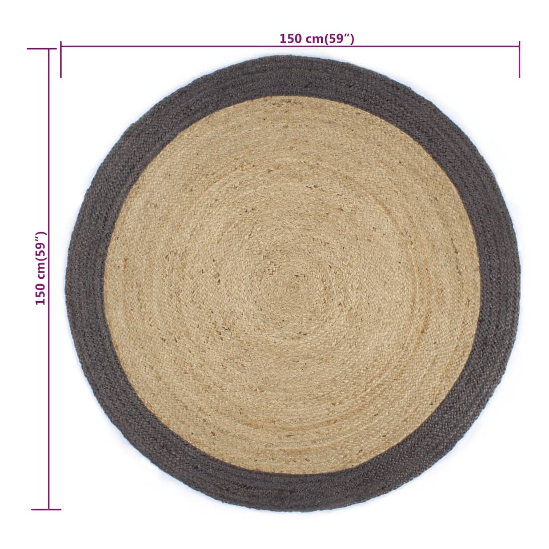 Tapis fait à la main Jute avec bord gris foncé 150 cm