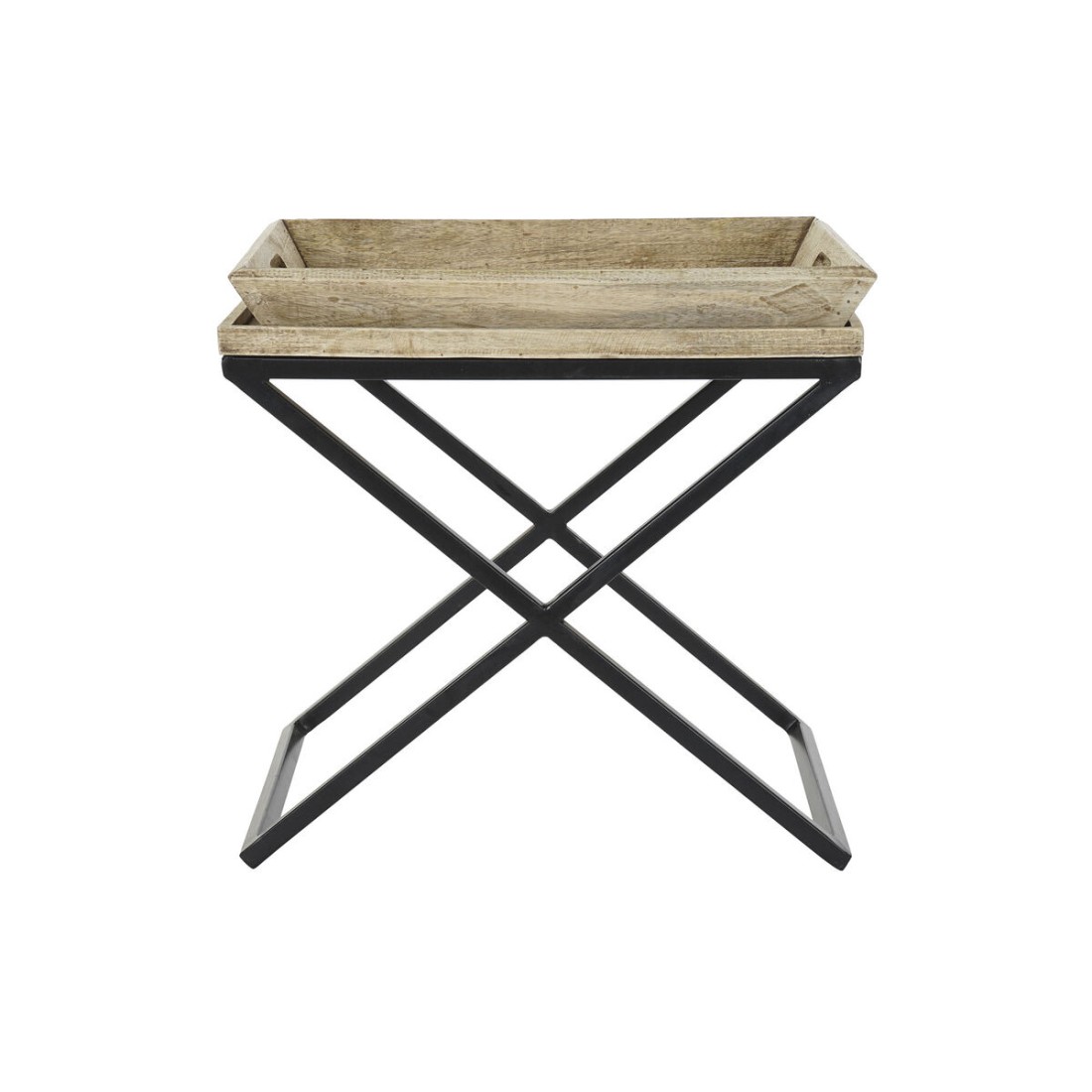 Tavolo aggiuntivo DKD Home Decor Nero Naturale Metallo Legno di mango 55 x 45 x 53 cm
