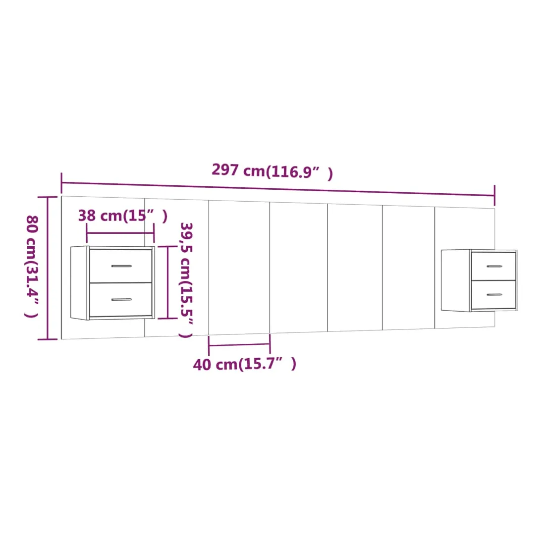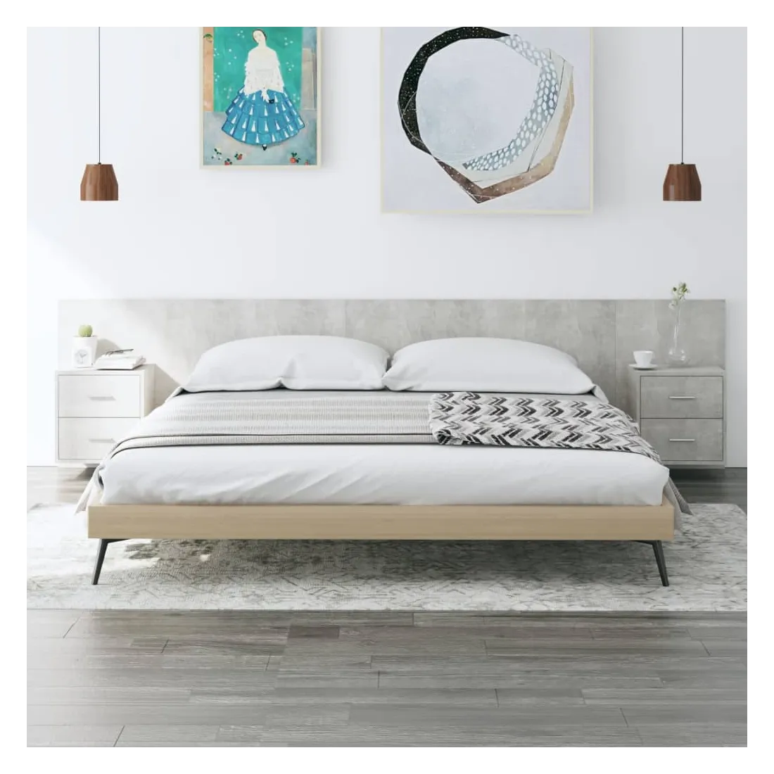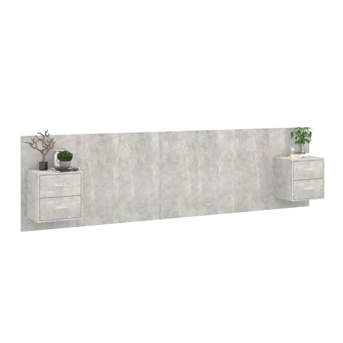Tête de lit avec armoires Gris béton Bois d'ingénierie