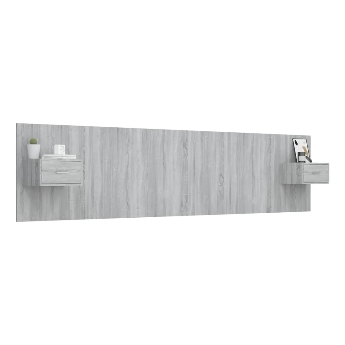 La tête de lit robuste avec armoires, au design classique, donne à votre cadre de lit un aspect complet et convient à toute chambre à coucher. Matériau robuste : le bois d'ingénierie est d'une qualité exceptionnelle avec une surface lisse et présente également résistance, stabilité et résistance à l'humidité.Design mural : les tables de chevet flottantes et la tête de lit peuvent être fixées au mur. De cette façon, vous pouvez maximiser votre espace au sol et garder la zone propre.Espace de rangement : l'unité de chevet dispose d'un espace de rangement spacieux qui vous permet de garder vos affaires organisées. ATTENTION :Les vis et les chevilles pour l'intérieur du mur ne sont pas incluses. Recherchez et utilisez des vis et des chevilles adaptées à vos murs. Si vous n'êtes pas sûr, demandez conseil à un professionnel. Lisez et suivez attentivement chaque étape des instructions.